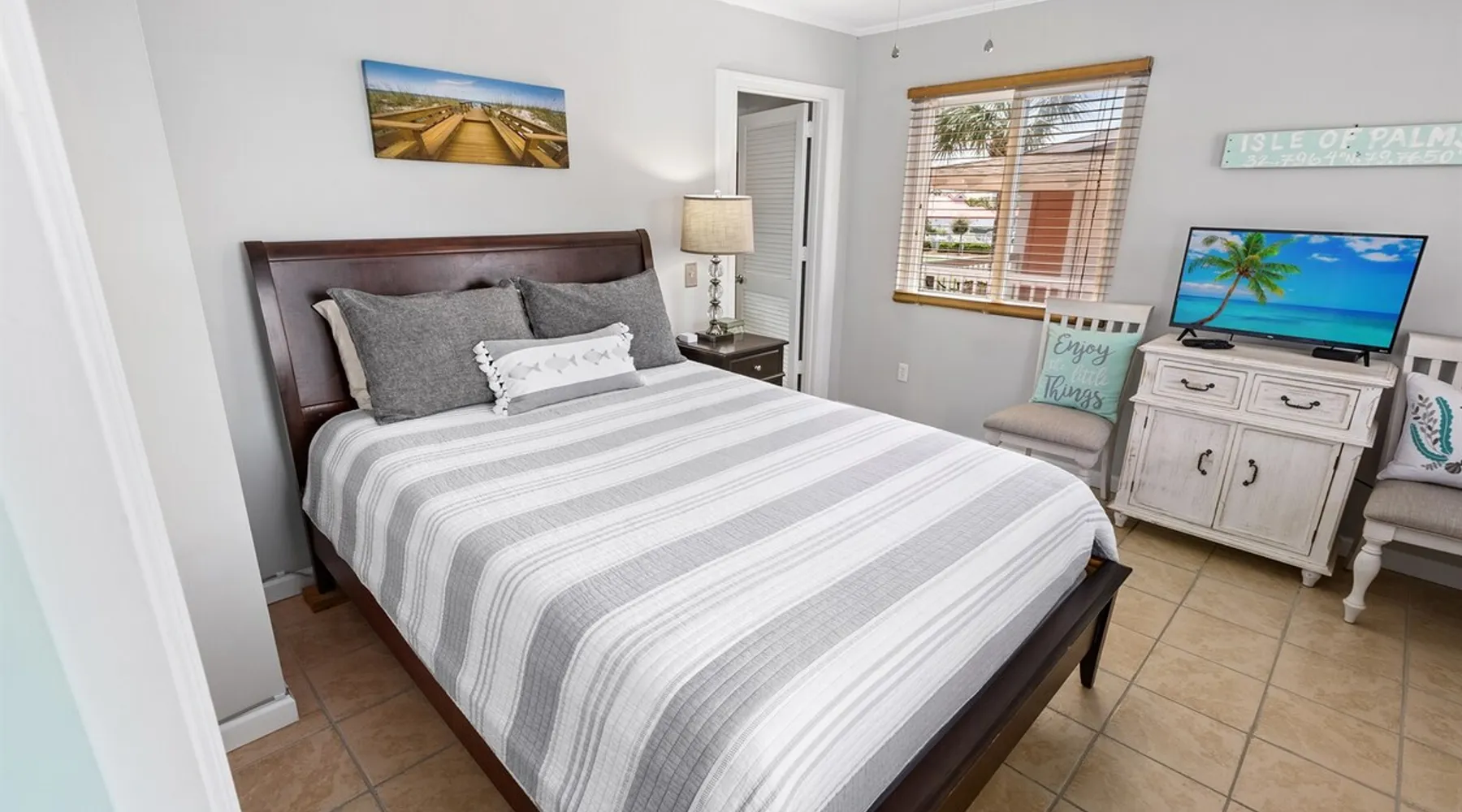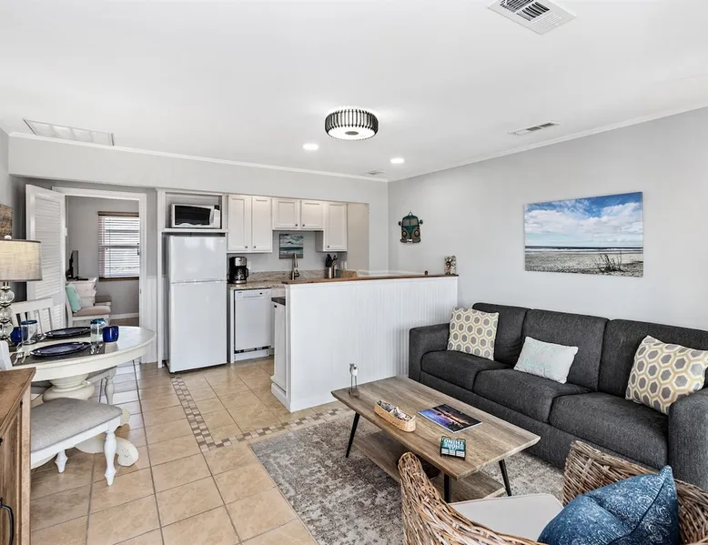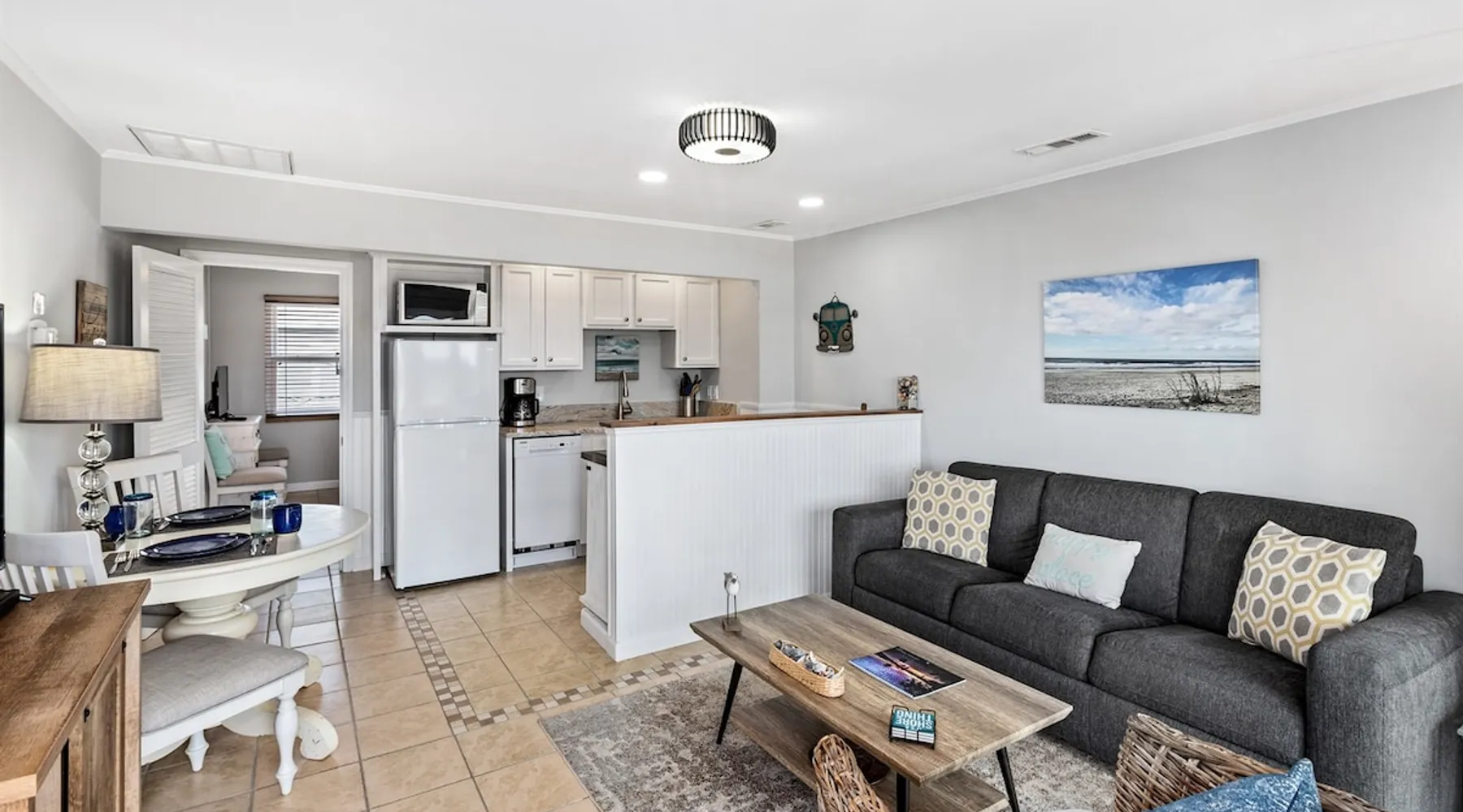 Enjoy "Breaking Away" to this cozy 1br/1ba, #206 at The Ocean Inn with pool, grill areas, on-site laundry and free parking. This 450sf 2nd floor condo is located on the front of the complex facing the beach. It has windows on 3 sides to let in plenty of natural light. Decor is tasteful, calming, & coastal. Sleeps 4 w/ Q bed and Q sofa bed in living room. Beautiful updated bathroom w/ dressing area, kitchen w/ all essentials including a dishwasher! 2 Smart TVs and wifi. The space You will enjoy "Breaking Away" to this cozy 1br/1ba at The Ocean Inn, a hidden gem with private pool, outdoor grill areas, on-site laundry and free parking. This renovated condo sleeps 4 and features local photography and artwork. The living room has a comfy couch and classic woven chair with plush pillows. Enjoy watching palm trees swaying in the breeze, seeing the "ocean peak" view in the distance, listening to the rush of the waves, and taking in silent morning sunrises....all from your front door! The *new* queen sofa-bed features a memory foam mattress allowing for a comfortable night's sleep. Enjoy the large screen tv with cable and for some family fun, check out the books and games stocked in the entertainment center. Owner has provided a small beach cart for bringing your chairs to the beach, as well as two beach mats. The kitchen has been redesigned for maximum use of space and has a full-sized refrigerator, oven with stove top, microwave, coffeemaker, toaster, and all the pots, pans, dishes, utensils needed for a great home cooked meal so you can enjoy family-style eating at the dining table for 4. Enter the private master bedroom and bask in the glow of natural light from three windows. There is a queen bed with comfy memory foam topper, nightstand, beach inspired dresser, cable TV, renovated small bathroom with a luxuriously deep tub and tile shower combo. Park the car and walk to anywhere you might want to go: the beach, great restaurants, local coffeehouses, unique shops, the local grocery store, and even The Island Spa. Feeling adventurous? Walk just next door to the moped rental shop so you can explore the quaint streets on the island, or zip over to Sullivan's Island for lunch and a visit to Fort Moultrie. Downtown Charleston, Sullivan's Island and Mount Pleasant are all within a short picturesque drive. We are located close to the Isle of Palms Connector so getting off the island to explore is quick and easy. Guest access Guests will receive email from Dreams N Druthers 7 days before arrival with specific instructions for entry. Parking passes are required and are also sent by email. Check in is 4pm, check out is 10am. Because there are always maintenance needs in our properties, check in times are not always flexible regardless of availability on the previous nights of arrival. If by chance the property is ready early, you will receive a text either the day before or the day of arrival. We do try to allow early access when we can. Other things to note ** COMMUNICATION: as an integrated partner on this booking site, please be aware that all future communications will come from Dreams N Druthers. Please be on the lookout. ** E-SIGNATURE CONTRACT: In addition to any contract you may have signed through an integrated partner (such as AIRBNB/VRBO). We require our own E-Signed contract to complete your booking. This allows us to include additional details we are unable to elsewhere. PLEASE NOTE THESE ANSWERS TO FREQUENTLY-ASKED QUESTIONS: **MINIMUM BOOKING AGE is 25. The person holding the reservation must be staying at the property. No 3rd party booking is allowed. **PRE-APPROVAL OF PETS REQUIRED Pets (DOGS ONLY) are allowed ONLY IN SELECT PROPERTIES. Breed/weight restrictions are applicable. PET FEES are $25/pet per night. DISCOUNT ON PET FEES AVAILABLE FOR SEASONAL RENTALS. PET POLICY Guests are responsible for adhering to pet policies provided in the contract as well as all Isle of Palms pet ordinances **MINIMUM NIGHTS Some of our properties have "minimum nights required" to make a reservation on weekends, holidays, and during the summer season. To check availability for a shorter stay, please send a message / inquiry. If it's possible, we'd be happy to accommodate you. ** CONFIRMATION & PAYMENT: Your reservation is confirmed when the initial payment is paid. Payment options are dependent on the cancellation policy and how far away you are booking your stay. For reservations made in advance of 30 days, the remaining balance is due 30 days before arrival. Balances are deducted automatically from the card on file. In the event of payment failure, a grace period of 24 hours is given to remedy the payment. ** ITEMS PROVIDED: Soaps, linens, towels and starter paper products will be in your condo upon arrival. Routine linen and towel exchanges are not provided during your stay. Guests are responsible for replacing their own paper and soap products if starter amounts are used during their stay. It is not necessary to replace these for future guests. **SMOKING All of our properties are NO SMOKING properties. Smoking is allowed outdoors only. Please discard appropriately. Deposit will be forfeited and additional cleaning charges incurred if evidence of smoking indoors is found upon departure. THIS INCLUDES smoking by an open door or window so that smoke enters the condo. Please smoke away from these areas. **NOISE ORDINANCE Guests are responsible for following the Isle of Palms 10PM noise ordinance.