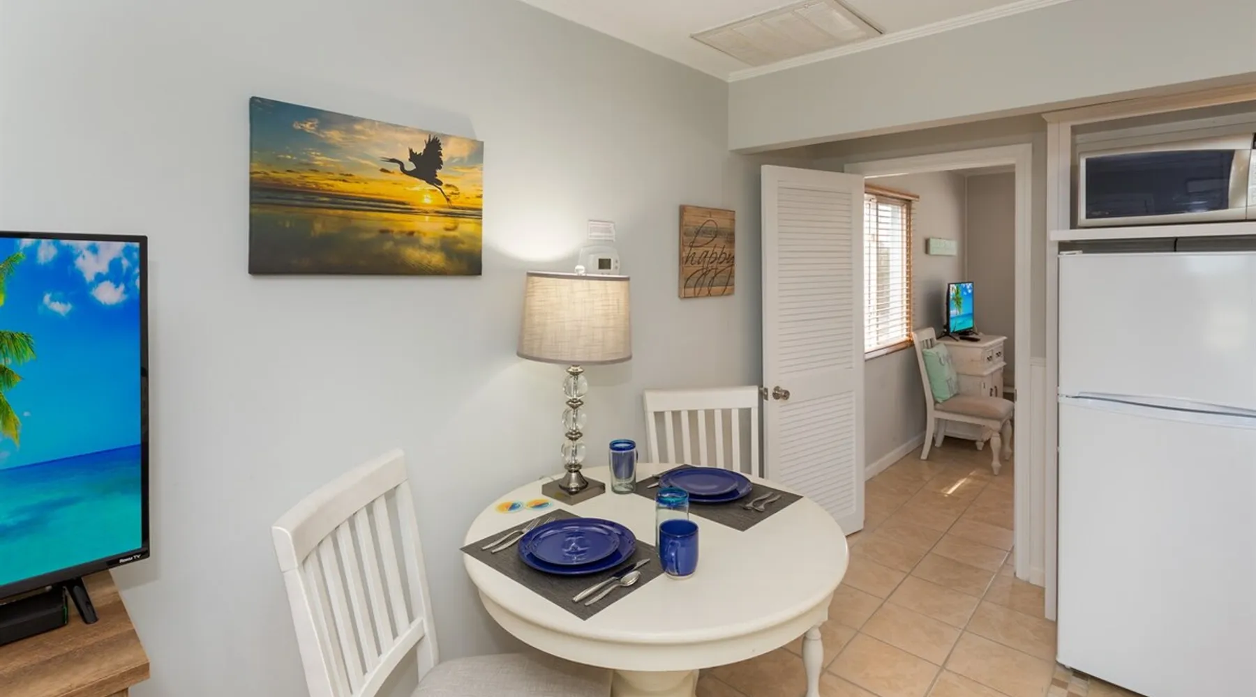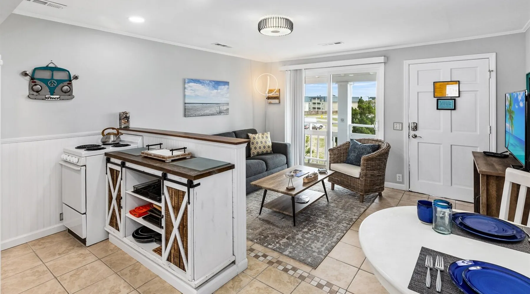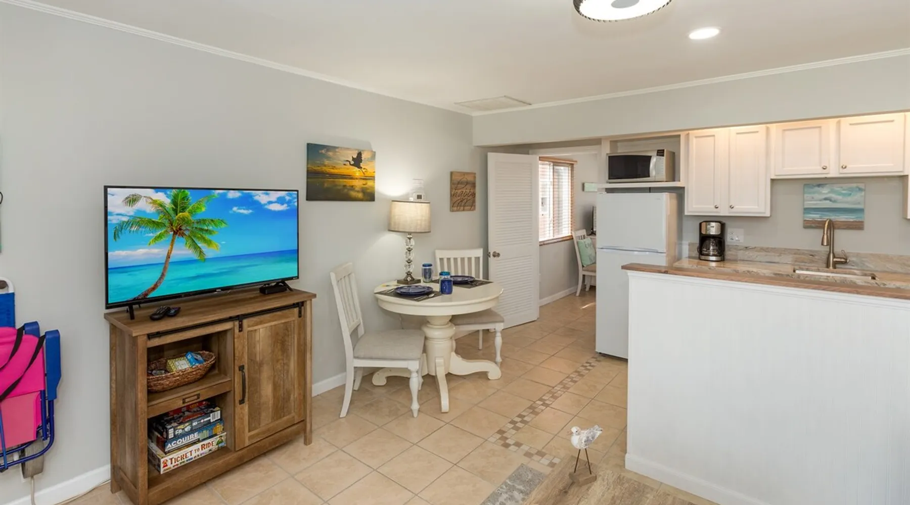Enjoy "Breaking Away" to this cozy 1br/1ba, #206 at The Ocean Inn with pool, grill areas, on-site laundry and free parking. This 450sf 2nd floor condo is located on the front of the complex facing the beach. It has windows on 3 sides to let in plenty of natural light. Decor is tasteful, calming, & coastal. Sleeps 4 w/ Q bed and Q sofa bed in living room. Beautiful updated bathroom w/ dressing area, kitchen w/ all essentials including a dishwasher! 2 Smart TVs and wifi. The space You will enjoy "Breaking Away" to this cozy 1br/1ba at The Ocean Inn, a hidden gem with private pool, outdoor grill areas, on-site laundry and free parking. This renovated condo sleeps 4 and features local photography and artwork. The living room has a comfy couch and classic woven chair with plush pillows. Enjoy watching palm trees swaying in the breeze, seeing the "ocean peak" view in the distance, listening to the rush of the waves, and taking in silent morning sunrises....all from your front door! The *new* queen sofa-bed features a memory foam mattress allowing for a comfortable night's sleep. Enjoy the large screen tv with cable and for some family fun, check out the books and games stocked in the entertainment center. Owner has provided a small beach cart for bringing your chairs to the beach, as well as two beach mats. The kitchen has been redesigned for maximum use of space and has a full-sized refrigerator, oven with stove top, microwave, coffeemaker, toaster, and all the pots, pans, dishes, utensils needed for a great home cooked meal so you can enjoy family-style eating at the dining table for 4. Enter the private master bedroom and bask in the glow of natural light from three windows. There is a queen bed with comfy memory foam topper, nightstand, beach inspired dresser, cable TV, renovated small bathroom with a luxuriously deep tub and tile shower combo. Park the car and walk to anywhere you might want to go: the beach, great restaurants, local coffeehouses, unique shops, the local grocery store, and even The Island Spa. Feeling adventurous? Walk just next door to the moped rental shop so you can explore the quaint streets on the island, or zip over to Sullivan's Island for lunch and a visit to Fort Moultrie. Downtown Charleston, Sullivan's Island and Mount Pleasant are all within a short picturesque drive. We are located close to the Isle of Palms Connector so getting off the island to explore is quick and easy. Guest access Guests will receive email from Dreams N Druthers 7 days before arrival with specific instructions for entry. Parking passes are required and are also sent by email. Check in is 4pm, check out is 10am. Because there are always maintenance needs in our properties, check in times are not always flexible regardless of availability on the previous nights of arrival. If by chance the property is ready early, you will receive a text either the day before or the day of arrival. We do try to allow early access when we can. Other things to note ** COMMUNICATION: as an integrated partner on this booking site, please be aware that all future communications will come from Dreams N Druthers. Please be on the lookout. ** E-SIGNATURE CONTRACT: In addition to any contract you may have signed through an integrated partner (such as AIRBNB/VRBO). We require our own E-Signed contract to complete your booking. This allows us to include additional details we are unable to elsewhere. PLEASE NOTE THESE ANSWERS TO FREQUENTLY-ASKED QUESTIONS: **MINIMUM BOOKING AGE is 25. The person holding the reservation must be staying at the property. No 3rd party booking is allowed. **PRE-APPROVAL OF PETS REQUIRED Pets (DOGS ONLY) are allowed ONLY IN SELECT PROPERTIES. Breed/weight restrictions are applicable. PET FEES are $25/pet per night. DISCOUNT ON PET FEES AVAILABLE FOR SEASONAL RENTALS. PET POLICY Guests are responsible for adhering to pet policies provided in the contract as well as all Isle of Palms pet ordinances **MINIMUM NIGHTS Some of our properties have "minimum nights required" to make a reservation on weekends, holidays, and during the summer season. To check availability for a shorter stay, please send a message / inquiry. If it's possible, we'd be happy to accommodate you. ** CONFIRMATION & PAYMENT: Your reservation is confirmed when the initial payment is paid. Payment options are dependent on the cancellation policy and how far away you are booking your stay. For reservations made in advance of 30 days, the remaining balance is due 30 days before arrival. Balances are deducted automatically from the card on file. In the event of payment failure, a grace period of 24 hours is given to remedy the payment. ** ITEMS PROVIDED: Soaps, linens, towels and starter paper products will be in your condo upon arrival. Routine linen and towel exchanges are not provided during your stay. Guests are responsible for replacing their own paper and soap products if starter amounts are used during their stay. It is not necessary to replace these for future guests. **SMOKING All of our properties are NO SMOKING properties. Smoking is allowed outdoors only. Please discard appropriately. Deposit will be forfeited and additional cleaning charges incurred if evidence of smoking indoors is found upon departure. THIS INCLUDES smoking by an open door or window so that smoke enters the condo. Please smoke away from these areas. **NOISE ORDINANCE Guests are responsible for following the Isle of Palms 10PM noise ordinance.