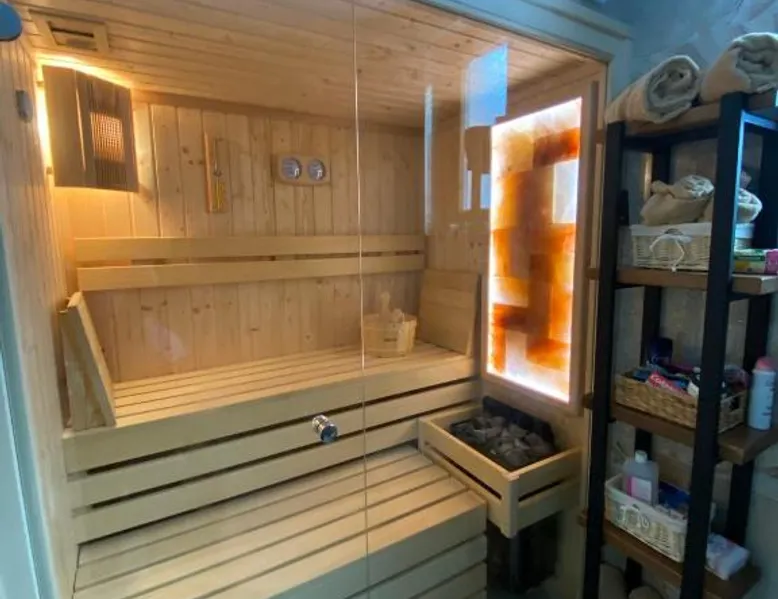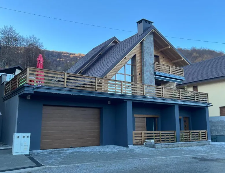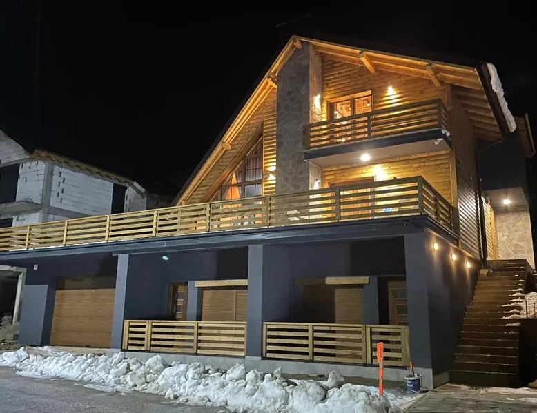 Elegant Accommodations: Villa Lake House in Mavrovo offers a spacious villa with three bedrooms and two bathrooms. The property features a living room, dining area, and a fully equipped kitchen. Relaxing Facilities: Guests can enjoy a sauna, garden, terrace, and bar. Free WiFi is available throughout the villa, ensuring connectivity. Comfortable Amenities: The villa includes family rooms, a washing machine, and a work desk. Additional amenities include a balcony, TV, and hairdryer. Local Attractions: Saint Jovan Bigorski Monastery is 17 mi away, and the Monastery of Saint George the Victorious is 27 mi from the property. This villa provides a sauna. This villa is consisted of of 1 living room, 3 separate bedrooms and 2 bathrooms with a bath or a shower and a hairdryer. The villa's kitchen is available for cooking and storing food. Featuring a terrace with lake views, this villa also offers a washing machine and a flat-screen TV with cable channels. The unit offers 6 beds.