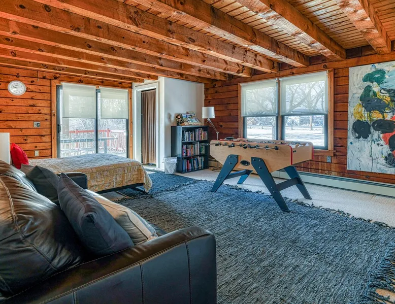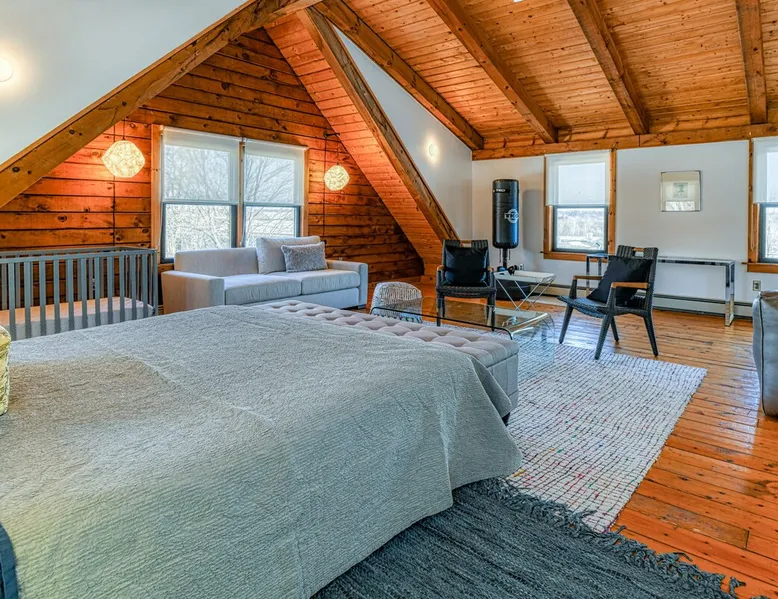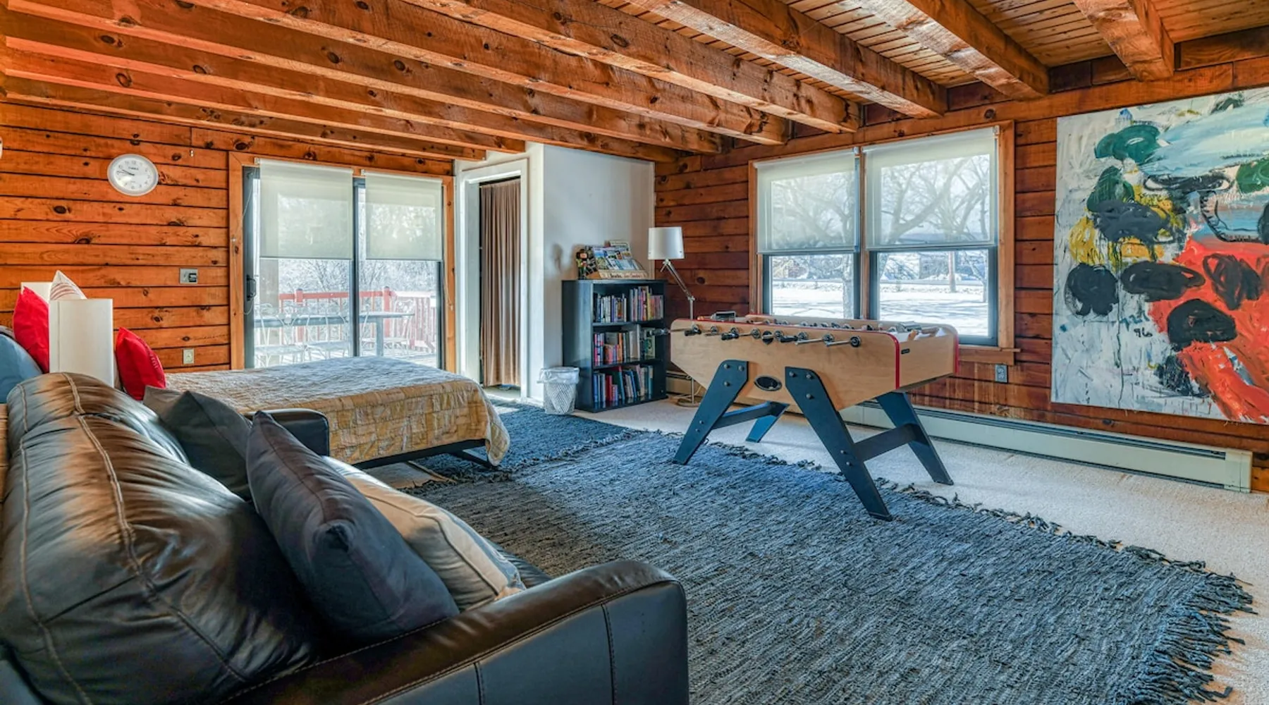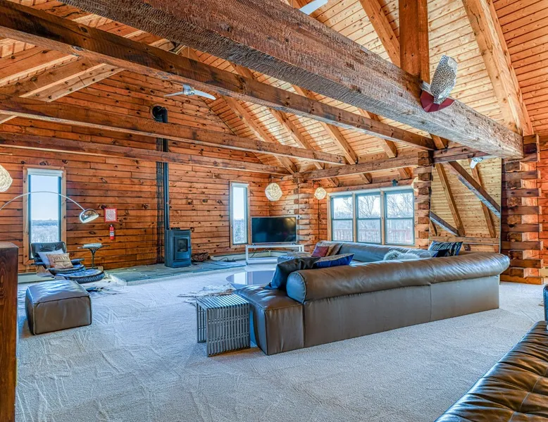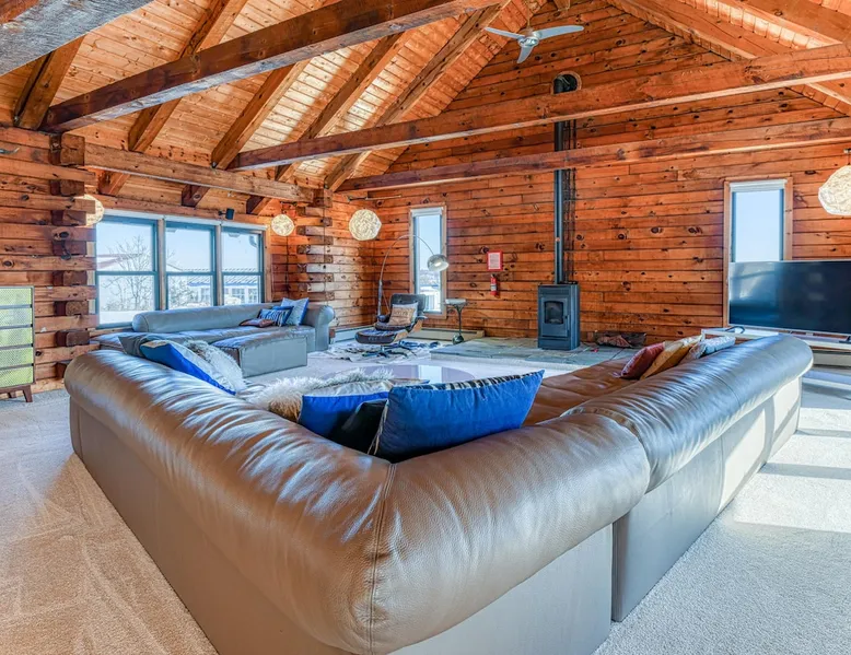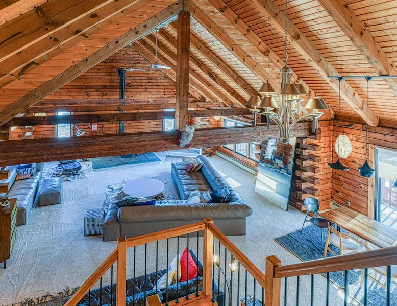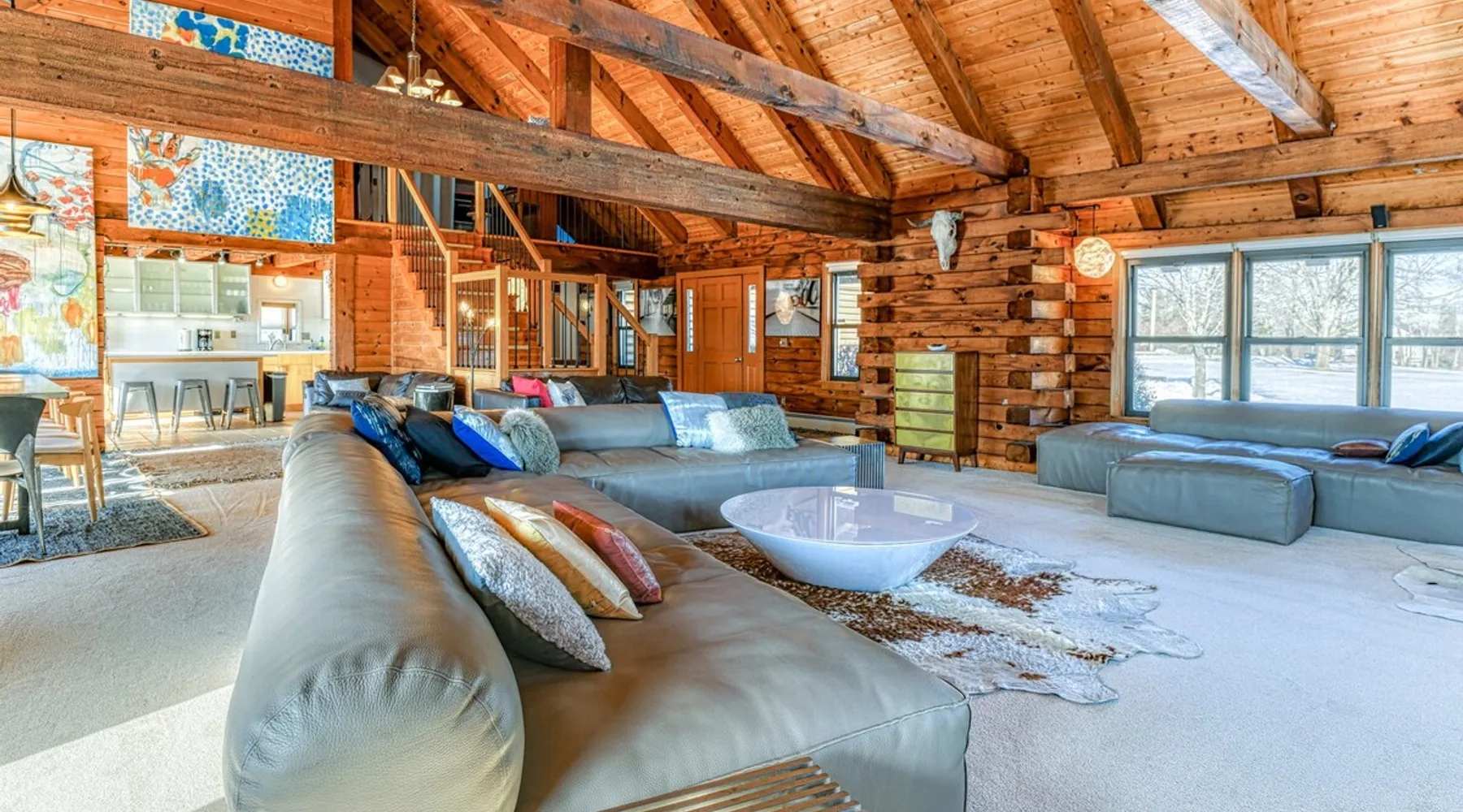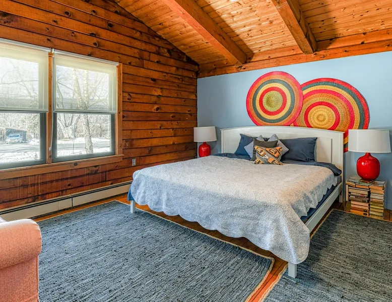 You will be pleasantly surprised in this genuine & massive log home w/ modern, artsy & bright setting. One of kind custom-made furniture. 85 mile north GW Bridge; 11 mile south of New Paltz Main St. View of Minnewaska, in the middle of cow farms (grass-grazed cows, horse farm-famous "Blue Chip Farm" covering over a thousand acre). Great for small groups (cyclists, friends & family gatherings) across from famous 250 year old "Audrey's Farm House" More reviews are available at V R B O The space You will be pleasantly surprised in this genuine & massive log home w/ modern, artsy, cozy & bright setting. One of kind custom-made furniture. 85 mile north GW Bridge; 11 mile south of New Paltz Main St. View of Minnewaska, in the middle of cow farms (grass-grazed cows, horse farm-famous 100 yr old "Blue Chip Farm" covering over a thousand acre). Great for small groups (bikers, cyclists, writers, musicians & family gatherings) Across from famous 250 year old "Audrey's Farm House" 5 bedrooms total: 1Floor has 1 Queens bed, 1 Full pullout sofa bed, 1 single foldout bed, 1 bathroom 2 Floor has 1 Queens bed, 1 Kings bed, 1 Kings bed, 1 Kings bed, 1 single foldout bed, 2 bathrooms Guest access Entire house is accessible. Only the basement is NOT accessible. Other things to note Maximum of guests are 14 people. Not honoring this will be automatically forfeit the entire liability deposit.