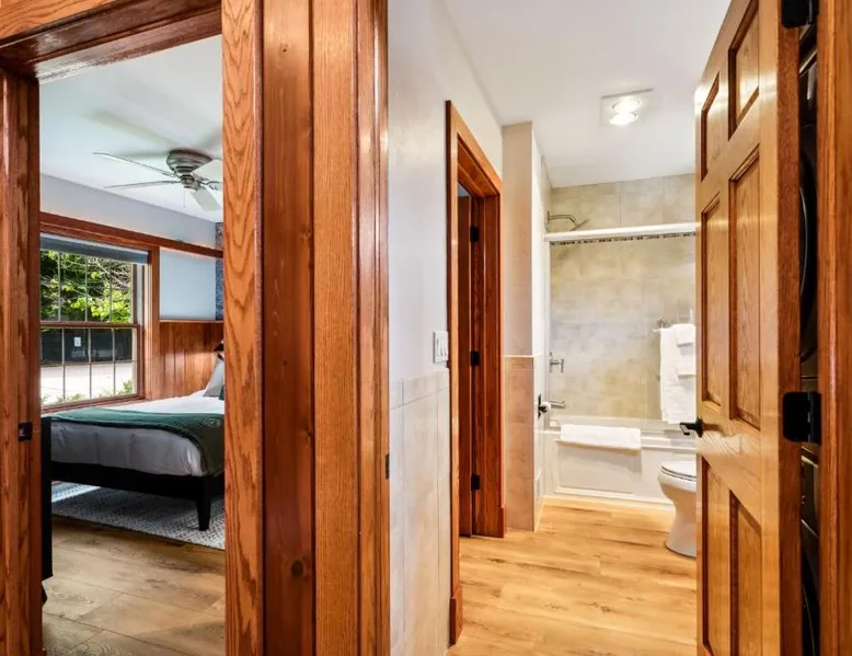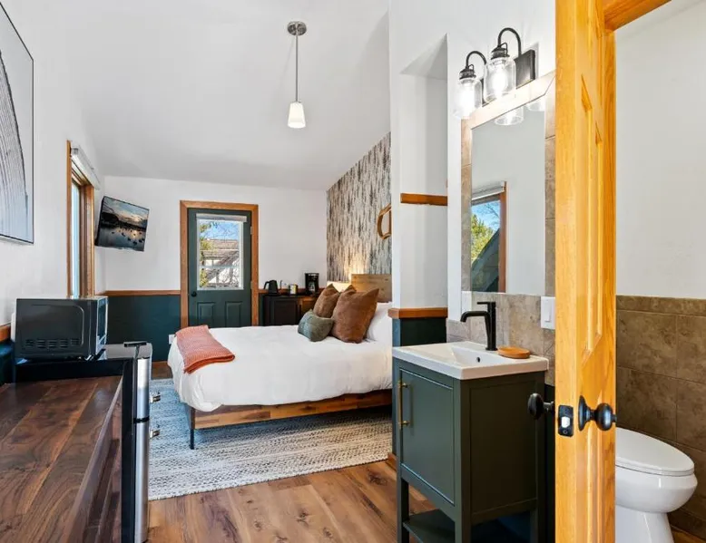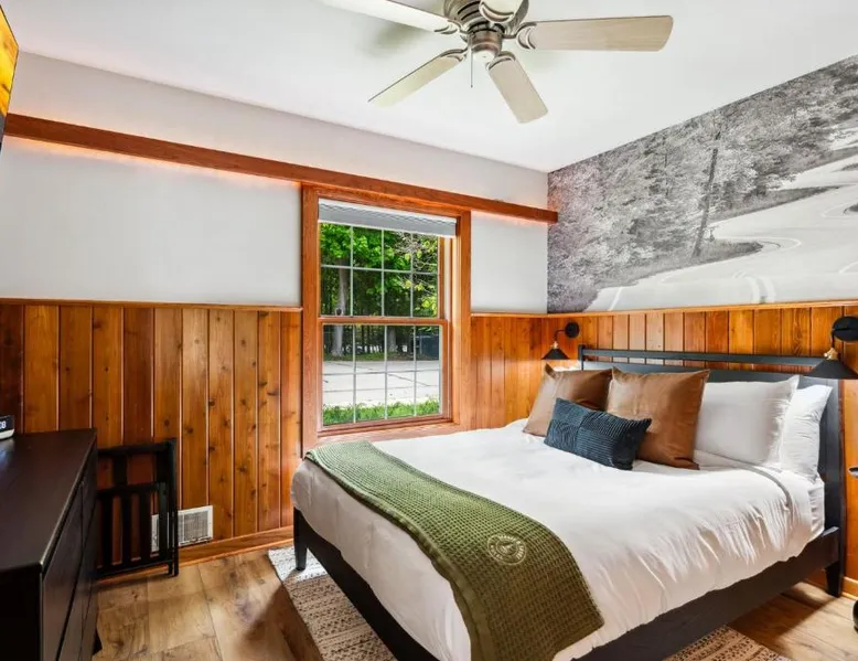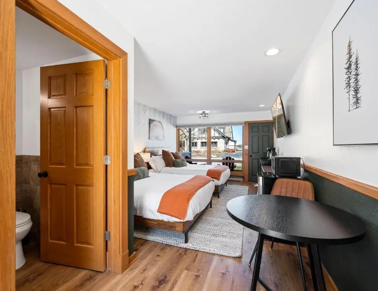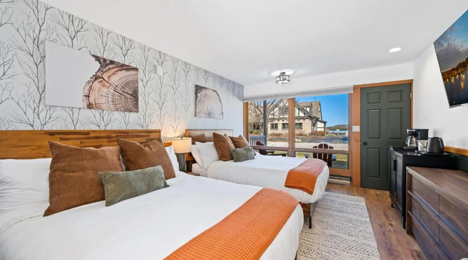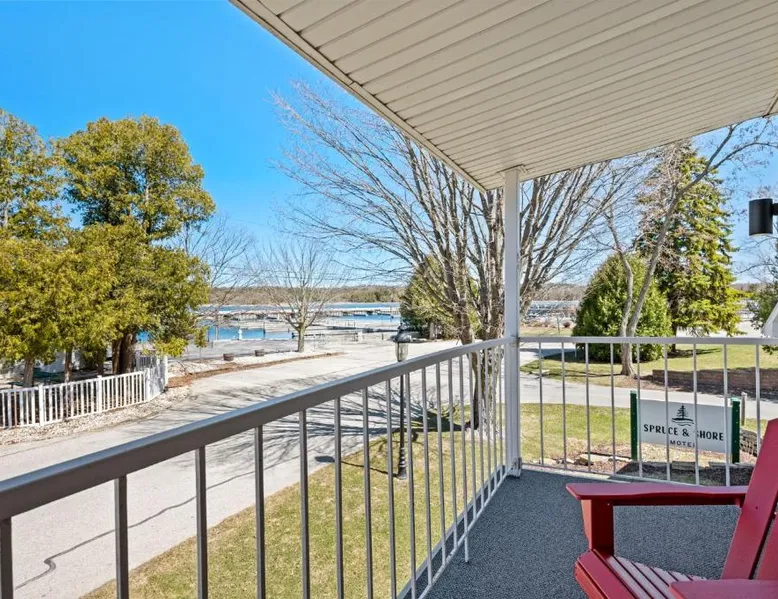 Comfortable Accommodations: Spruce & Shore Motel in Fish Creek offers 4-star comfort with air-conditioning, private bathrooms, and free WiFi. Each room includes a tea and coffee maker, hairdryer, and free toiletries. Leisure Facilities: Guests can relax by the terrace, seasonal outdoor swimming pool, and outdoor seating area. Additional amenities include a balcony, kitchenette, and washing machine. Convenient Location: Located 74 mi from Green Bay–Austin Straubel International Airport, the motel is a 7-minute walk from Fish Creek Beach. Nearby attractions include Cana Island Lighthouse (14 mi) and Cave Point County Park (17 mi). The double room offers air conditioning, a private entrance, a terrace with a quiet street view as well as a private bathroom boasting a bath. The unit has 2 beds.