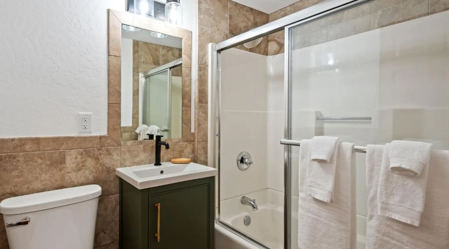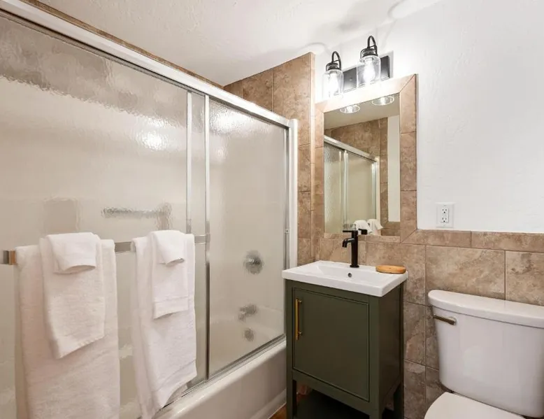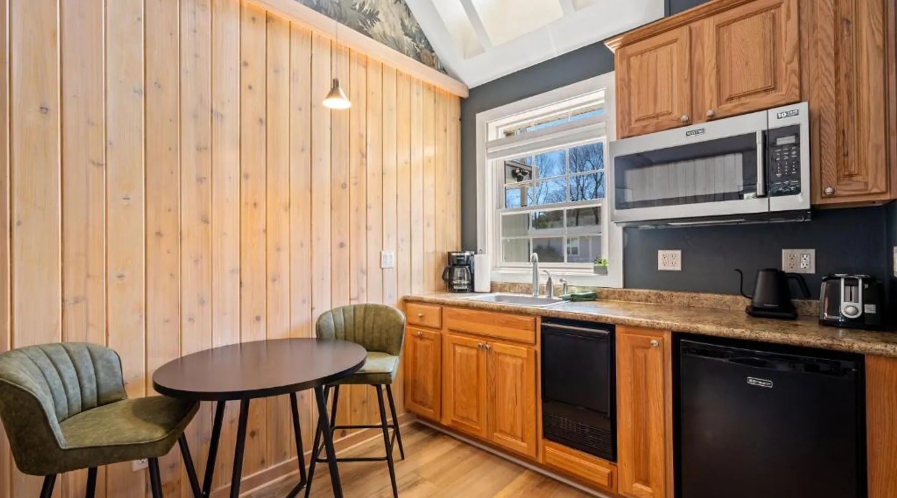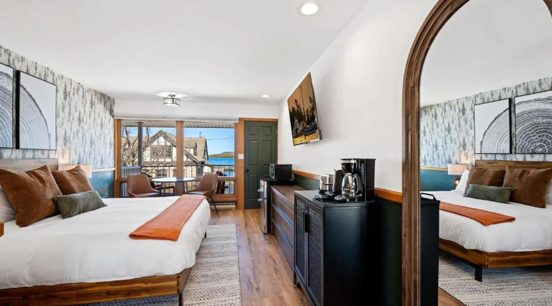 Comfortable Accommodations: Spruce & Shore Motel in Fish Creek offers 4-star comfort with air-conditioning, private bathrooms, and free WiFi. Each room includes a tea and coffee maker, hairdryer, and free toiletries. Leisure Facilities: Guests can relax by the terrace, seasonal outdoor swimming pool, and outdoor seating area. Additional amenities include a balcony, kitchenette, and washing machine. Convenient Location: Located 74 mi from Green Bay–Austin Straubel International Airport, the motel is a 7-minute walk from Fish Creek Beach. Nearby attractions include Cana Island Lighthouse (14 mi) and Cave Point County Park (17 mi). The double room offers air conditioning, a private entrance, a terrace with a quiet street view as well as a private bathroom boasting a bath. The unit has 2 beds.