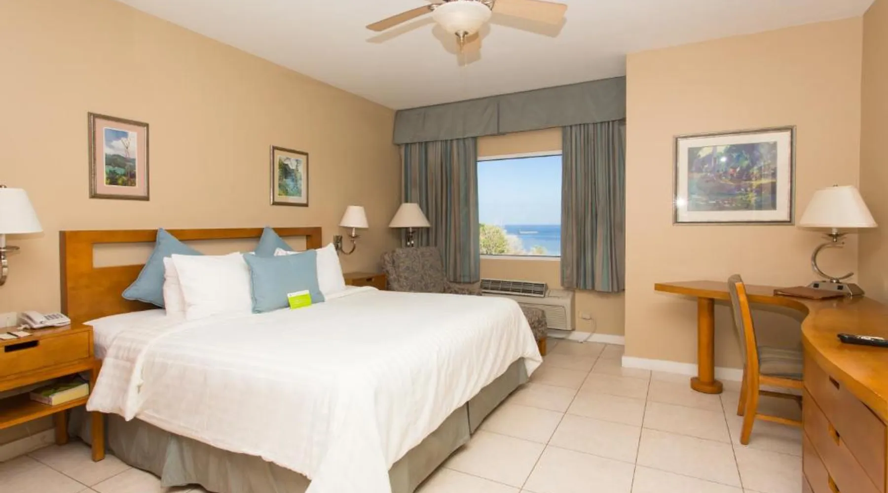 Overlooking towards the Gulf of Paria, Cara Hotels has on-site spacious guest accommodations, an outdoor pool, the BayView Bar - our sunken lobby bar, Zest Bistro - our signature restaurant and a fitness center. The elegant rooms offer in-room amenities including complimentary Wi-Fi access, Coffee/ Teas services, flat-screen cable TV, mini-refrigerator, a microwave, air conditioning, views of the sea or the property’s gardens, and safety deposit boxes. The bathrooms provide toiletries and a hairdryer. Cara Hotels has an on-site restaurant, Zest Bistro, which serves gourmet dishes that blends the Caribbean flavors with an international flair. The property also offers currency exchange services on site, and a business center. Piarco International Airport is a 45-minute drive from Cara Hotels Trinidad. Maracas Beach is a 75-minute drive away. This air-conditioned double room is consisted of of a flat-screen TV with cable channels, a private bathroom as well as a balcony with sea views. The unit has 1 bed.