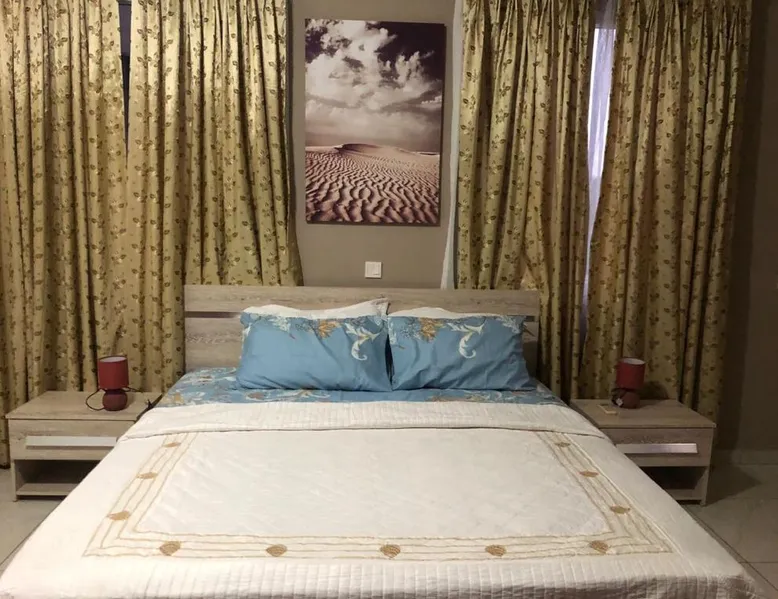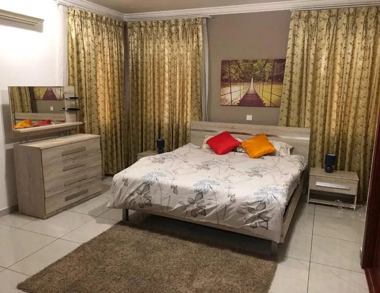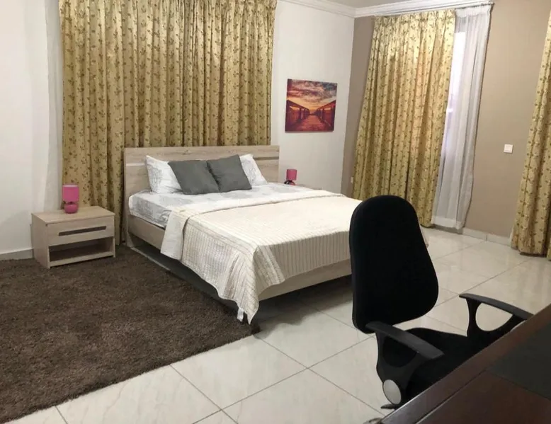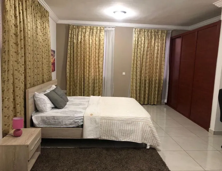 Spacious Accommodations: Exquisite 2 Bedroom Apartment for Family with Pool in Accra offers a spacious layout with two bedrooms and two bathrooms. The apartment features a terrace, providing a relaxing outdoor space. Modern Amenities: Guests enjoy air-conditioning, a fully equipped kitchen, washing machine, and a private pool. Additional amenities include a TV and free on-site private parking. Convenient Location: Located 1.9 mi from Kotoka International Airport, the apartment is close to attractions such as Kwame Nkrumah Memorial Park (5.6 mi) and Independence Arch (5.6 mi). Reception staff speak English. The private pool is the standout feature of this apartment. The apartment's kitchen is available for cooking and storing food. The spacious apartment features air conditioning, a washing machine and a terrace. The unit has 2 beds.