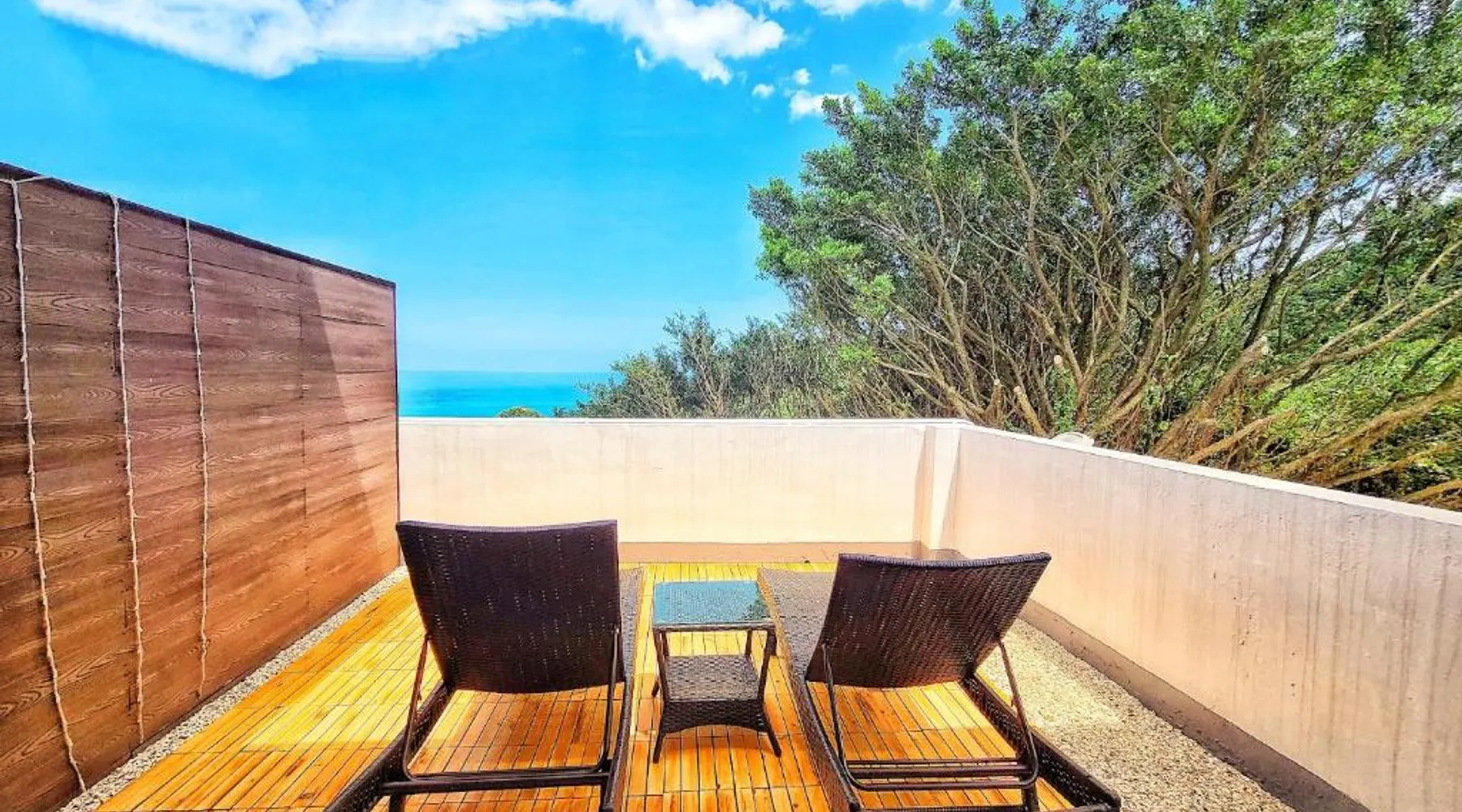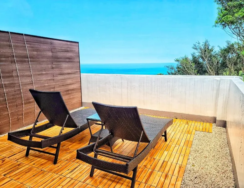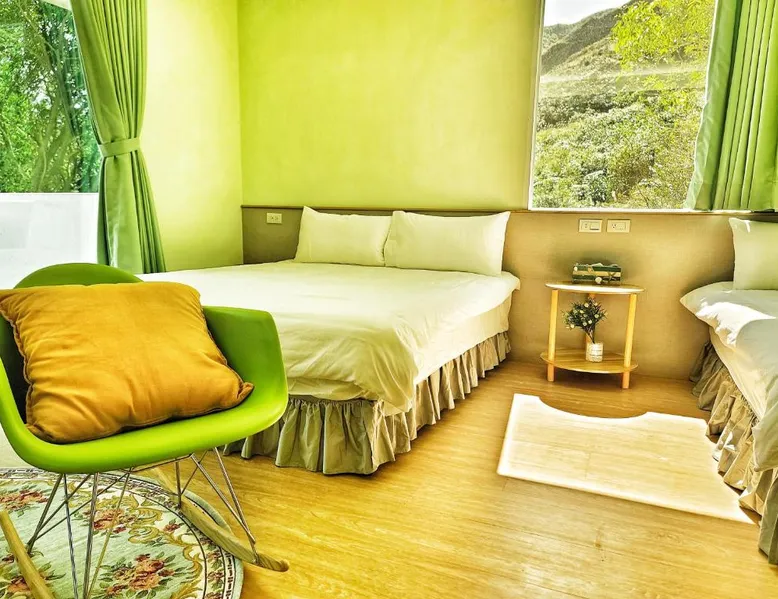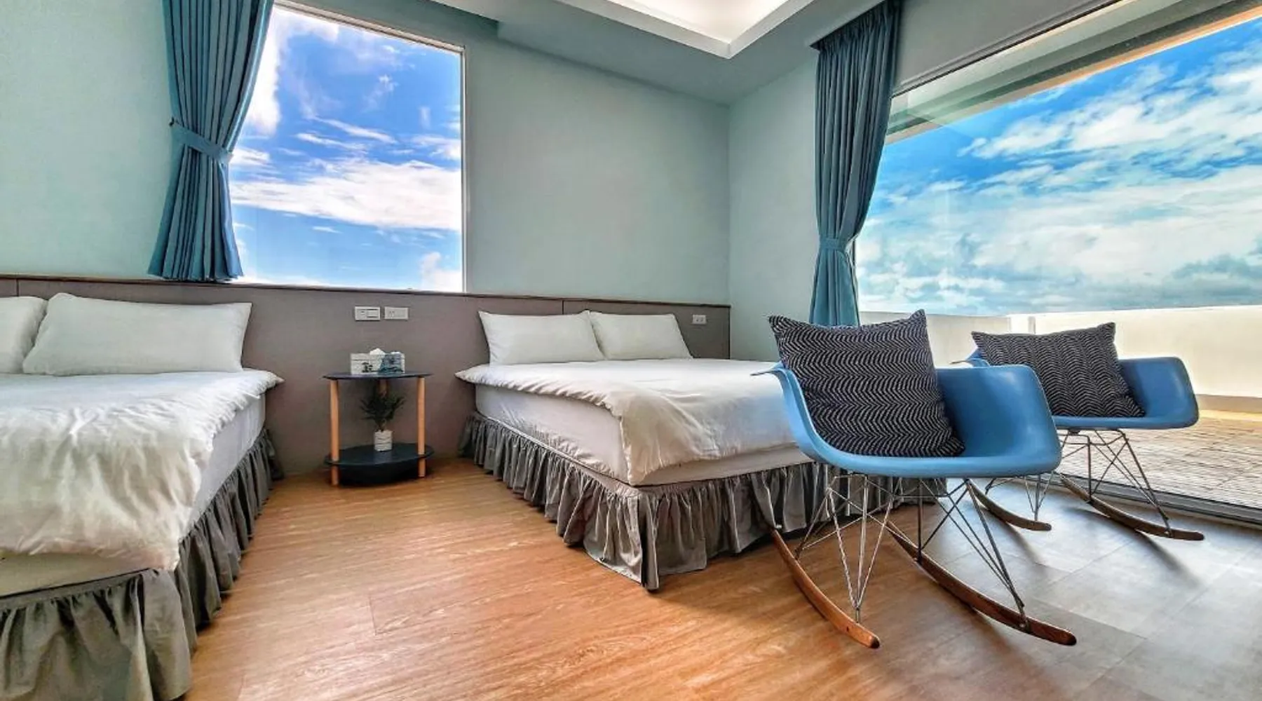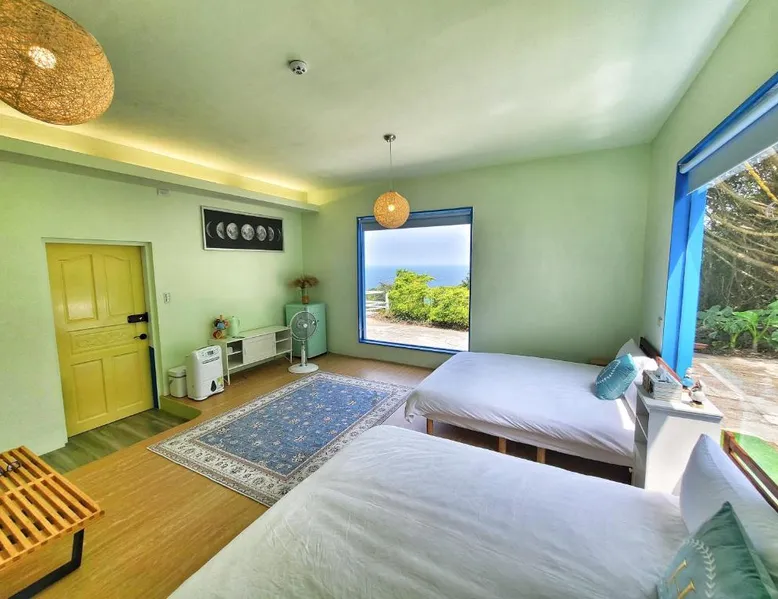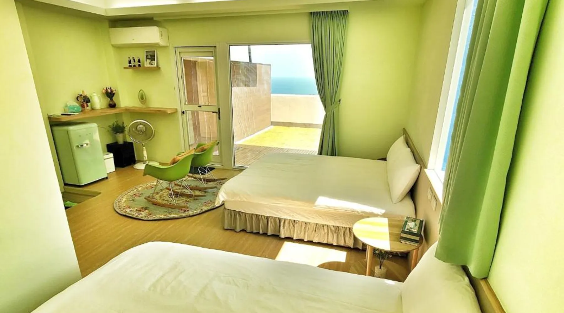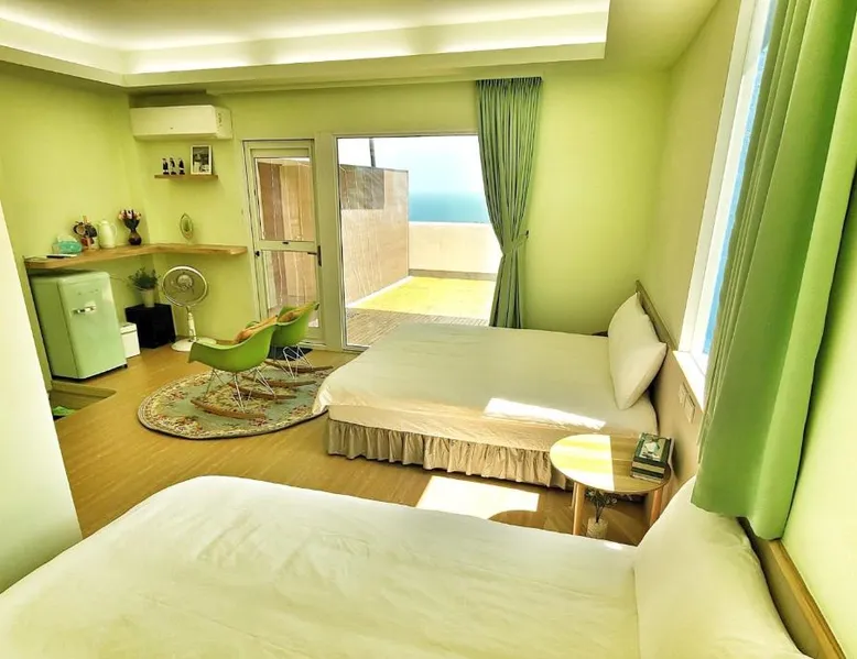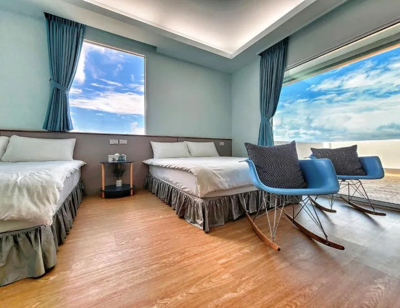 Comfortable Accommodations: A Promised Land BnB in New Taipei City offers recently renovated homestay rooms with private bathrooms, air-conditioning, and garden or mountain views. Each room includes a dining area, work desk, and free WiFi. Exceptional Facilities: Guests can relax on the sun terrace or in the garden, enjoy the modern restaurant serving Chinese and Asian cuisines, and utilize the indoor play area and games room. Additional amenities include free on-site parking, electric vehicle charging, and a tour desk. Delicious Breakfast: A variety of breakfast options are available, including American, à la carte, and vegetarian. Breakfast includes warm dishes, juice, cheese, and fruits, ensuring a satisfying start to the day. Prime Location: Located 23 mi from Taipei Songshan Airport, the homestay is near attractions such as Raohe Street Night Market (22 mi) and Taipei 101 (23 mi). Hiking trails are also nearby, providing opportunities for outdoor activities. This air-conditioned quadruple room features a desk, a patio, sea views and a private bathroom. The unit offers 2 beds.