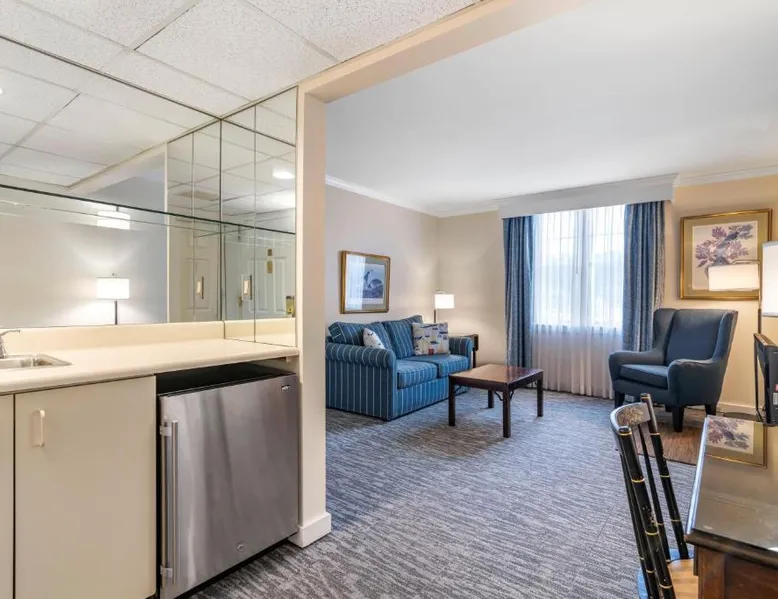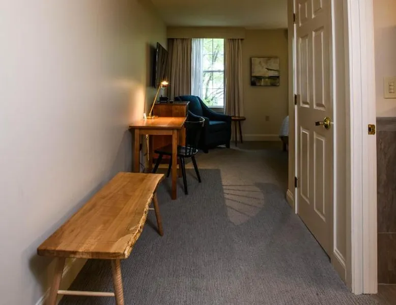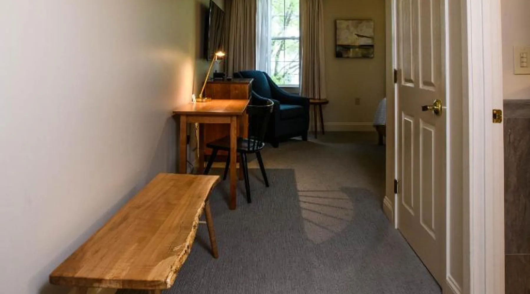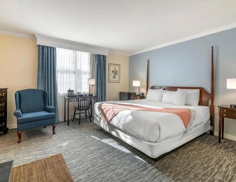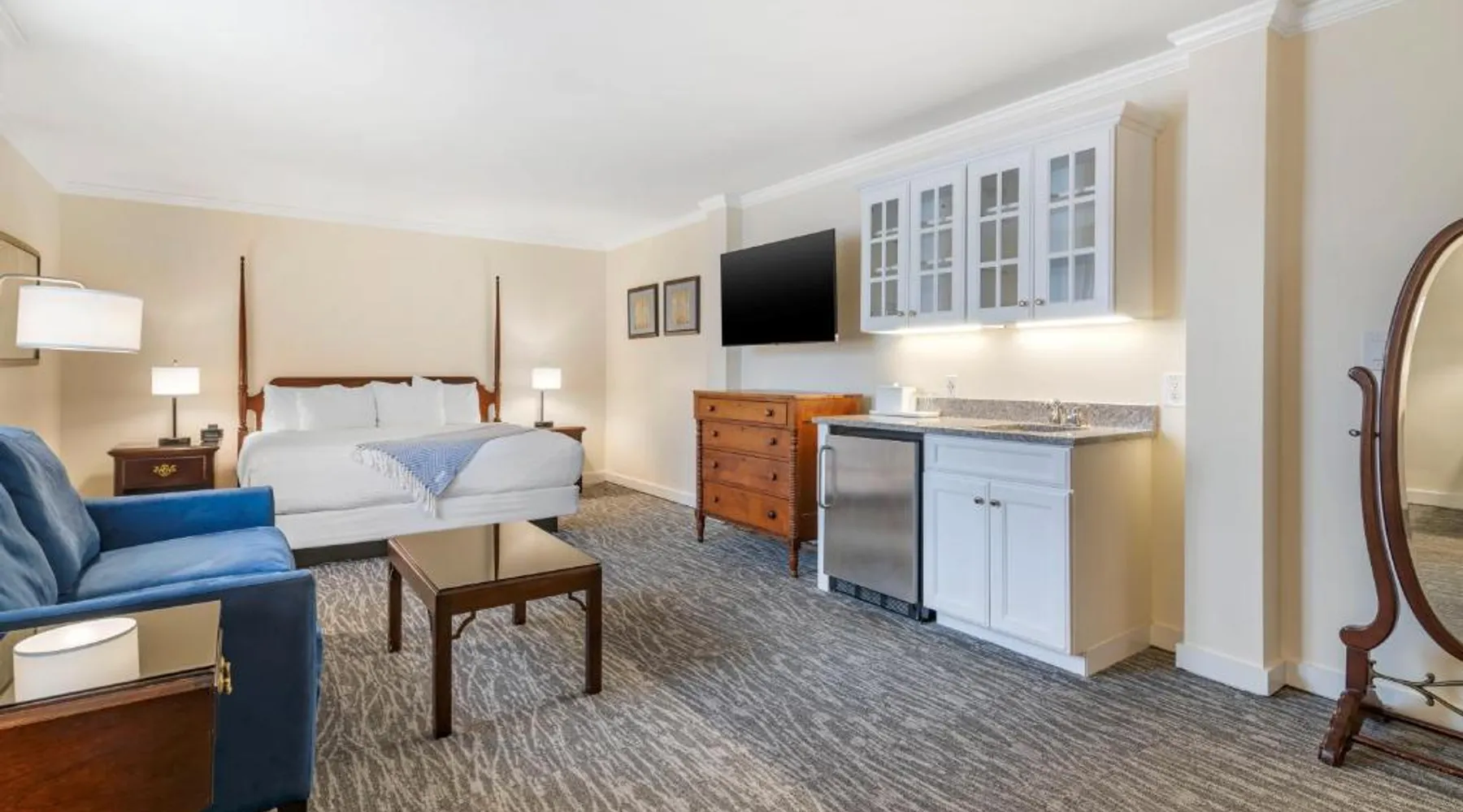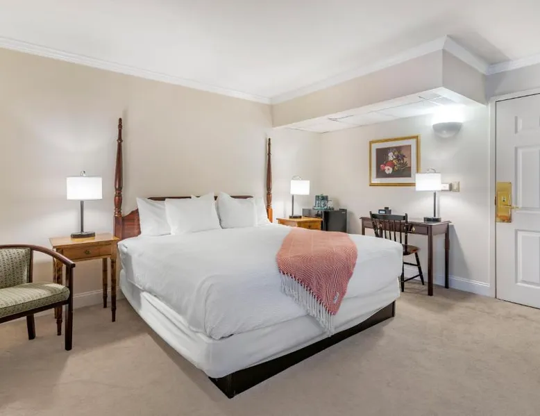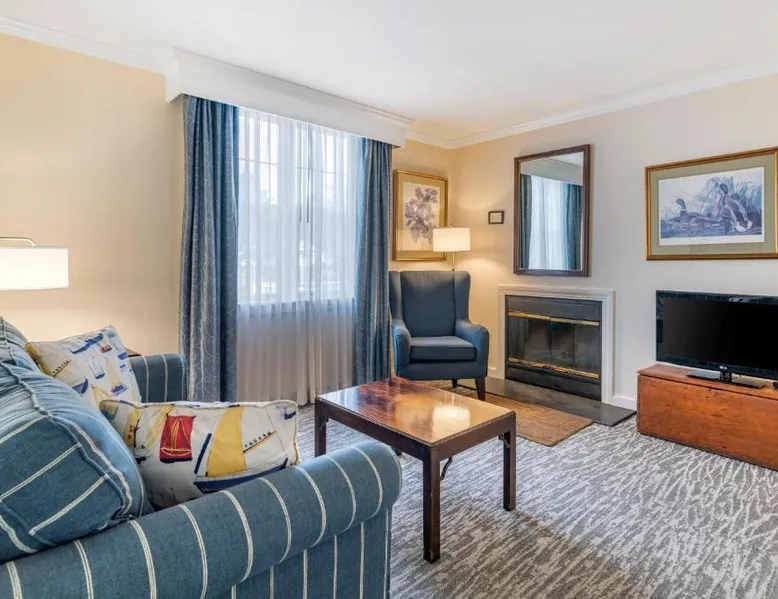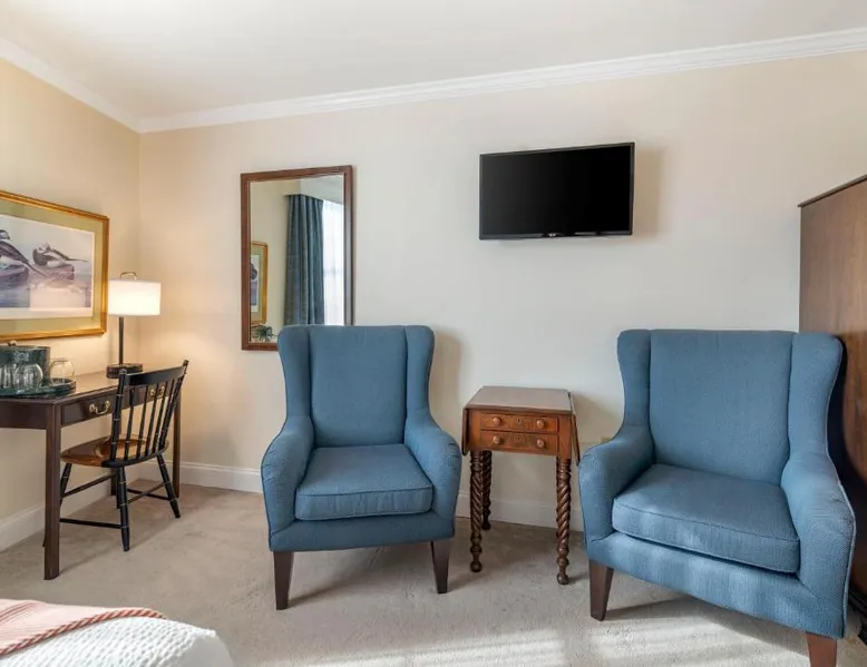 Comfortable Accommodations: The Harraseeket Inn & Event House Freeport Downtown in Freeport offers family rooms with air-conditioning, private bathrooms, and garden views. Each room includes a work desk, TV, and free WiFi. Exceptional Facilities: Guests can enjoy a saltwater swimming pool, indoor pool, fitness center, and terrace. Additional amenities include a restaurant, bar, outdoor fireplace, and picnic area. Dining Experience: The on-site restaurant serves American cuisine with vegetarian and gluten-free options. Breakfast includes fresh pastries, fruits, and juice. Prime Location: Located 22 mi from Portland International Jetport, the inn is near attractions such as Bowdoin College (9.9 mi) and Portland Museum of Art (17 mi). Free on-site parking is available. This studio has a seating area, sofa and bathrobe and is Pet Friendly.