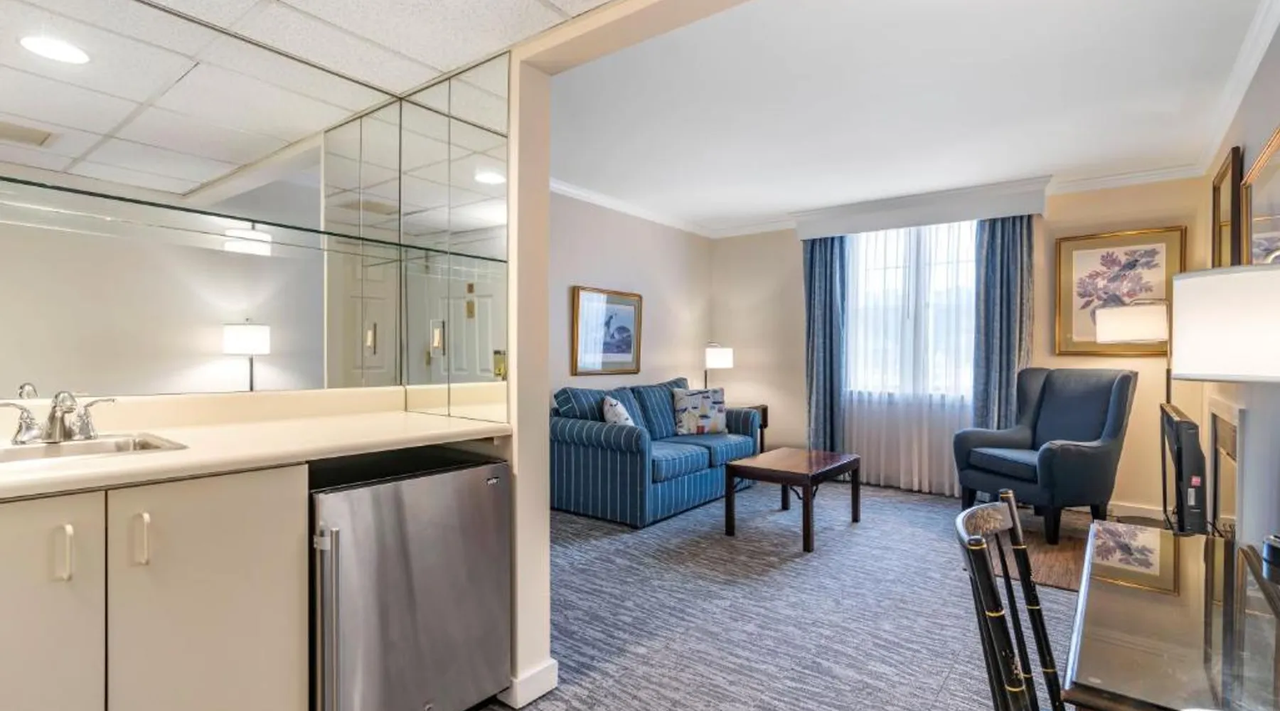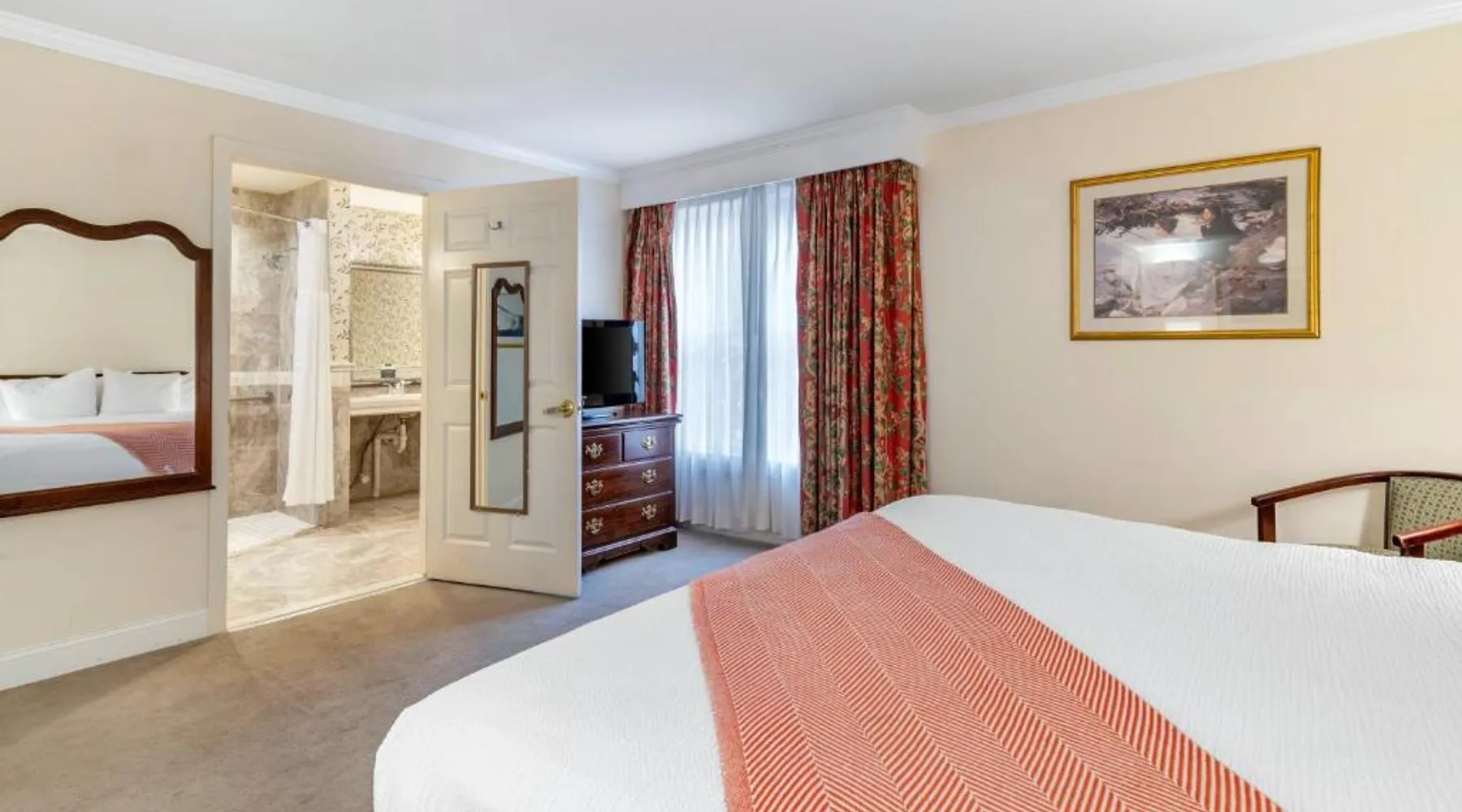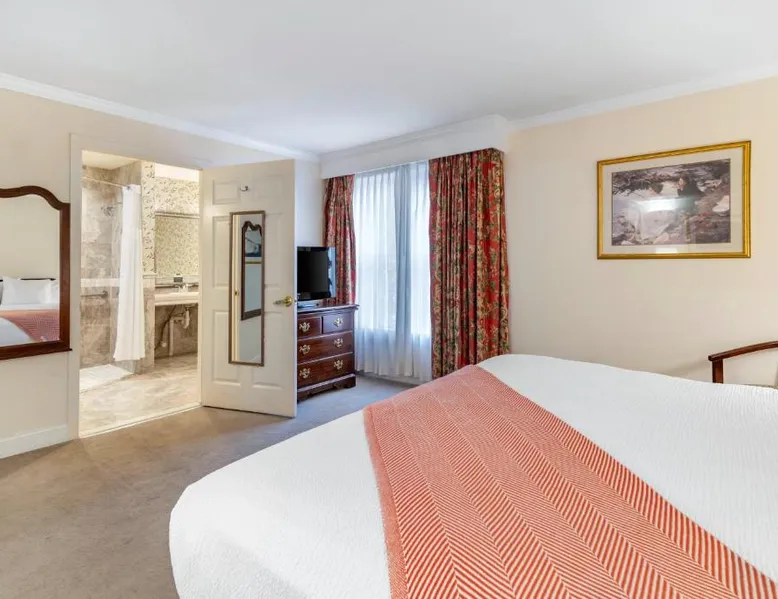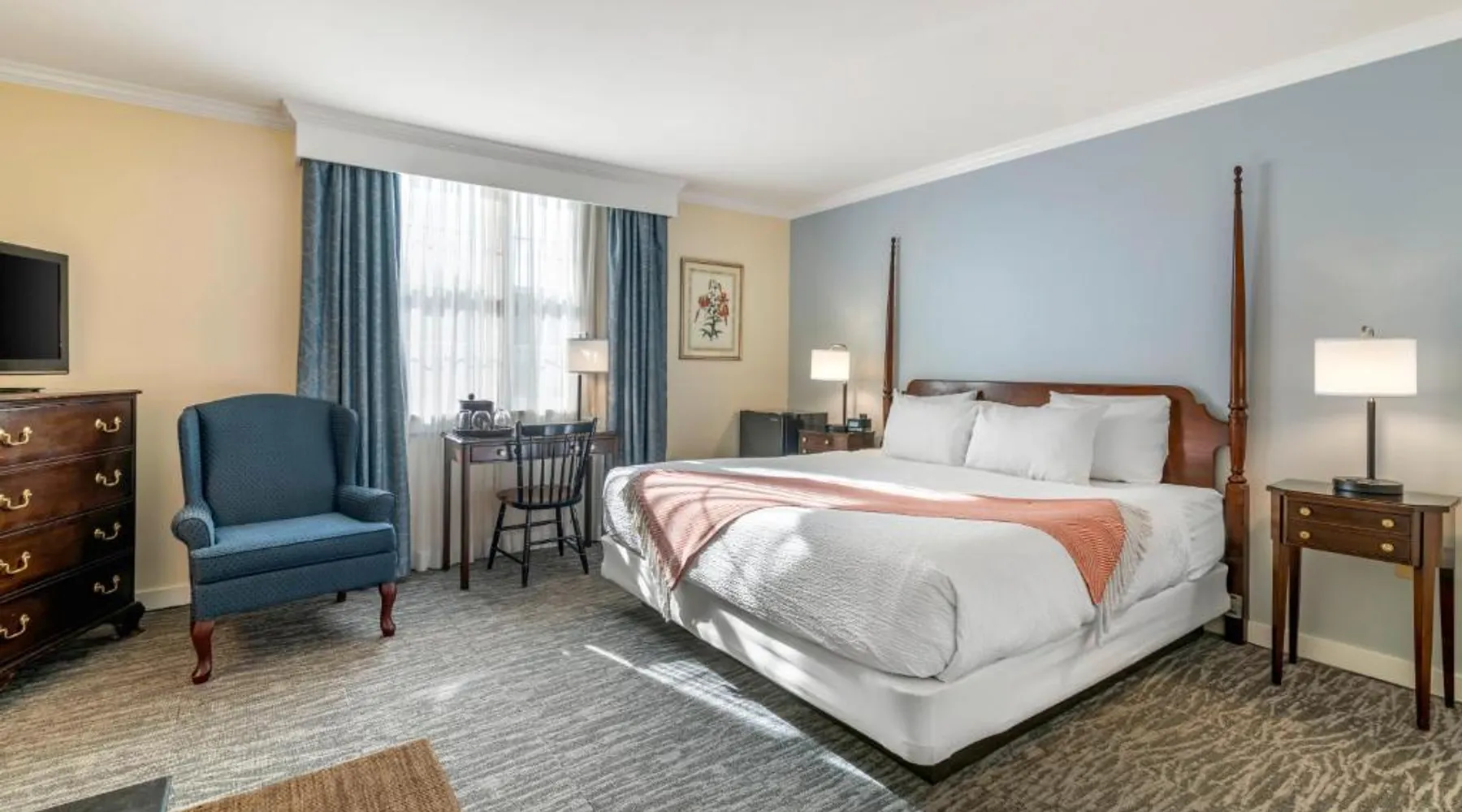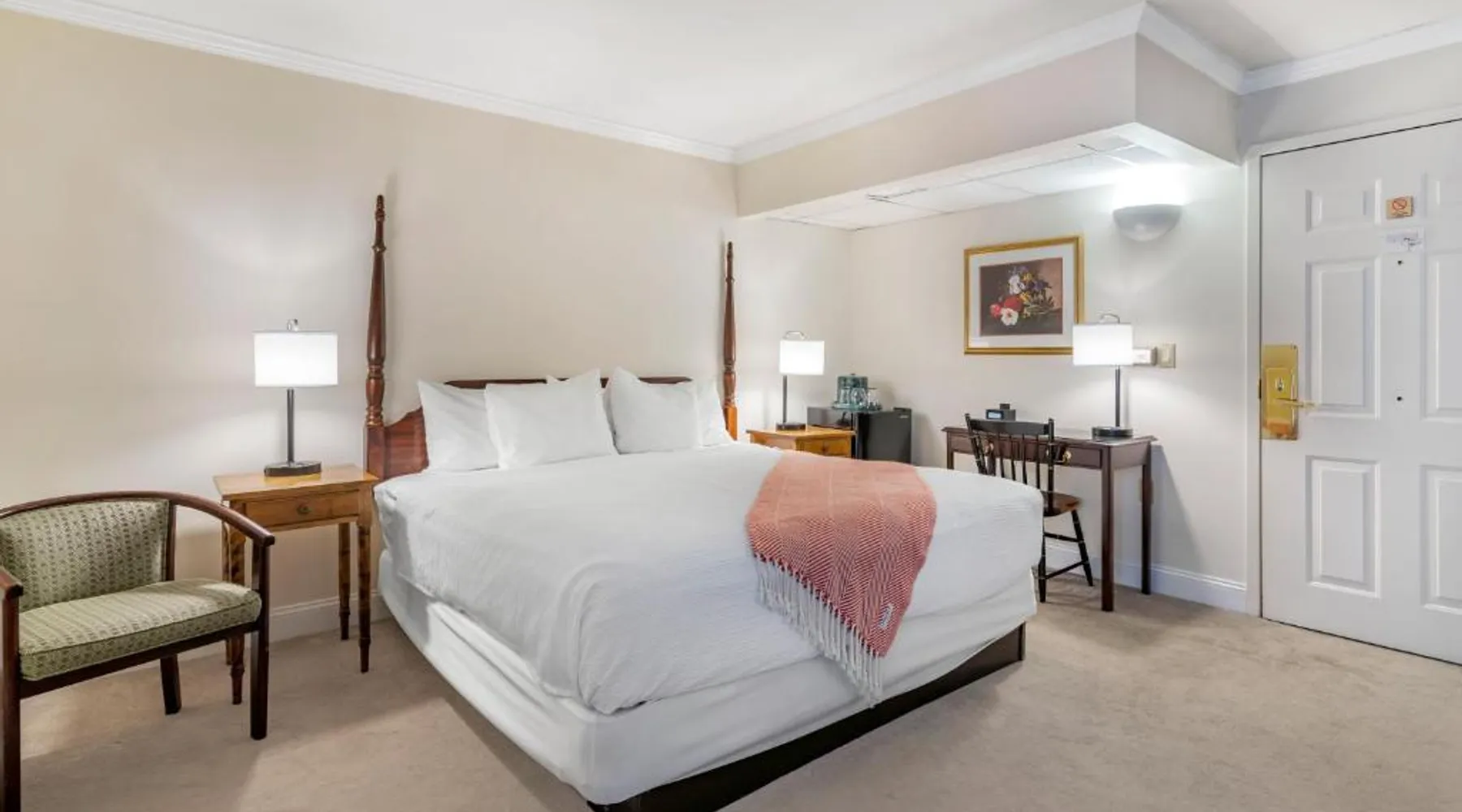 Comfortable Accommodations: The Harraseeket Inn & Event House Freeport Downtown in Freeport offers family rooms with air-conditioning, private bathrooms, and garden views. Each room includes a work desk, TV, and free WiFi. Exceptional Facilities: Guests can enjoy a saltwater swimming pool, indoor pool, fitness center, and terrace. Additional amenities include a restaurant, bar, outdoor fireplace, and picnic area. Dining Experience: The on-site restaurant serves American cuisine with vegetarian and gluten-free options. Breakfast includes fresh pastries, fruits, and juice. Prime Location: Located 22 mi from Portland International Jetport, the inn is near attractions such as Bowdoin College (9.9 mi) and Portland Museum of Art (17 mi). Free on-site parking is available. This studio has a seating area, sofa and bathrobe and is Pet Friendly.