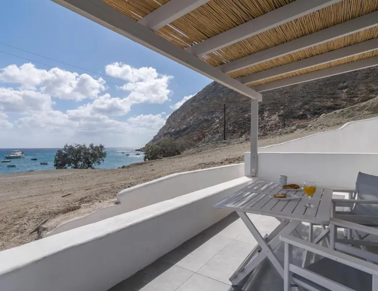 Beachfront Location: Aqua Bay Agia Kyriaki in Agia Kyriaki Milos offers direct beachfront access and stunning sea views. Guests enjoy free WiFi throughout the property. Comfortable Accommodations: Rooms feature air-conditioning, private bathrooms, terraces, and patios. Additional amenities include tea and coffee makers, hairdryers, seating areas, showers, and electric kettles. Convenient Facilities: The bed and breakfast provides free on-site private parking, a terrace, and a patio. Each room includes a TV and a bath. Nearby Attractions: Ayia Kyriaki Beach is just a few steps away. Milos Island National Airport is 2.5 mi from the property. Points of interest include the Sulfur Mine (5 mi) and the Catacombs of Milos (8.7 mi). Guest Satisfaction: Highly rated for its beachfront access, convenient location, and room cleanliness. Featuring a private entrance, this air-conditioned suite consists of 1 bedroom and 1 bathroom with a bath and a shower. Boasting a terrace with sea views, this suite also provides a tea and coffee maker and a flat-screen TV. The unit offers 1 bed.