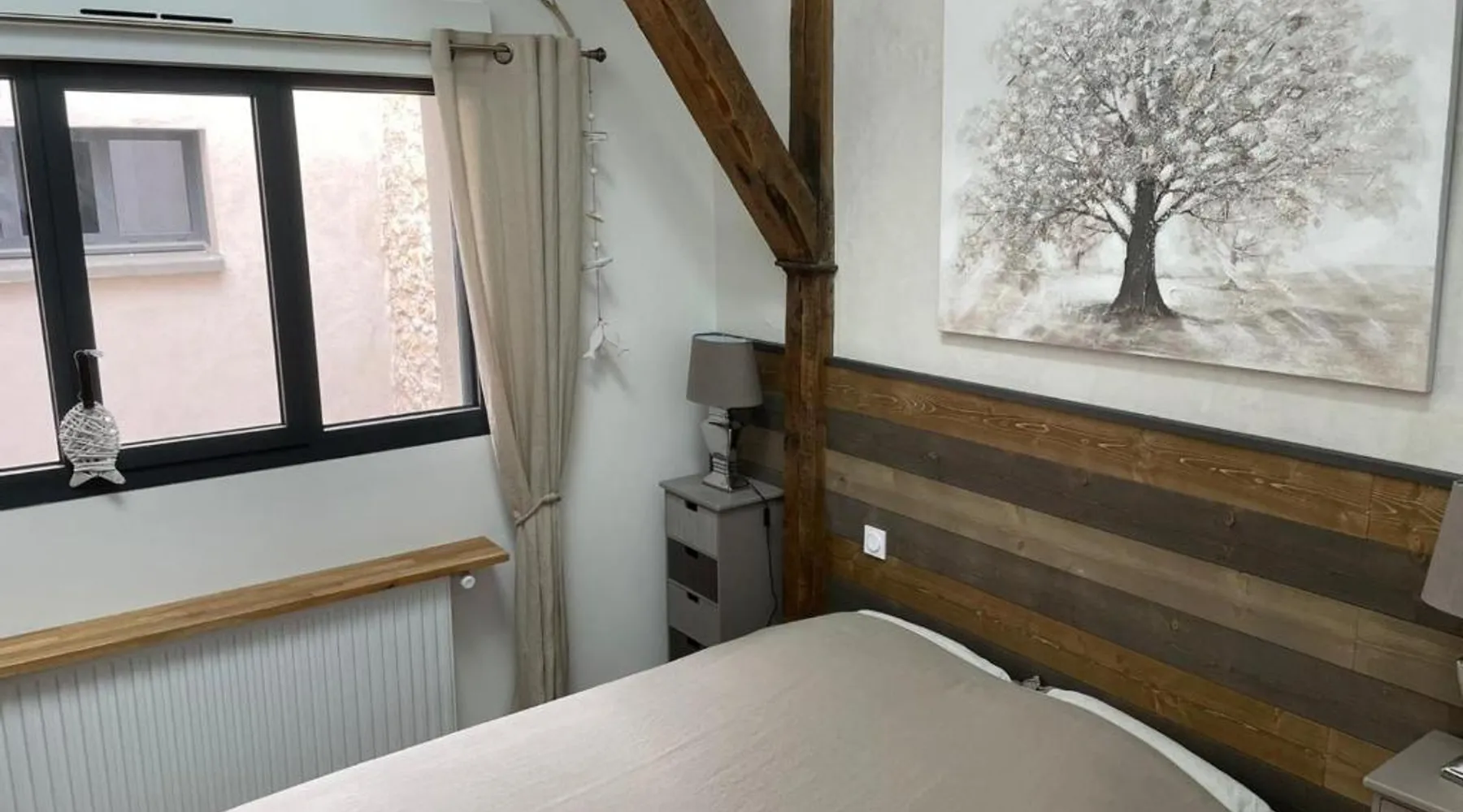 Comfortable Accommodations: Maison d'hotes L'atelier du Charmois in Vandoeuvre-les-Nancy offers comfortable rooms with private entrances, parquet floors, and modern amenities including free WiFi, work desks, and private bathrooms. Essential Facilities: Guests can relax on the terrace or enjoy garden views from their rooms. The property provides express check-in and check-out services, ensuring a smooth arrival and departure experience. Delicious Breakfast: A continental breakfast is served daily, highly praised by guests for its quality and variety. Additional amenities include streaming services, a hairdryer, and a TV. Prime Location: Located 27 mi from Metz-Nancy-Lorraine Airport, the property is close to Nancy Train Station (2.5 mi), Zénith de Nancy (5.6 mi), Jean-Marie Pelt Botanical Garden (1.9 mi), Place Stanislas (2.5 mi), and Nancy Opera (2.5 mi). Highly rated for its breakfast, host, and room cleanliness. The quadruple room offers a private entrance, a wardrobe, parquet floors, heating and a TV with streaming services. The unit offers 3 beds.