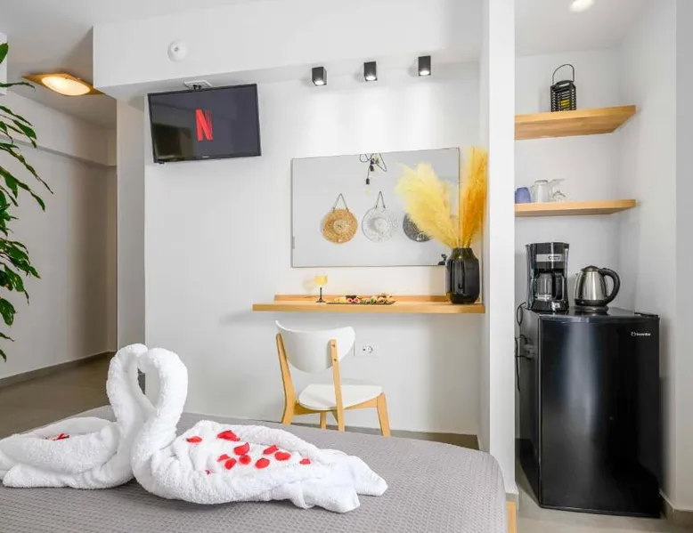 Margaret of Naxos offers accommodations in Agios Prokopios. Every room at this guest house is air conditioned and has a flat-screen TV with satellite channels. You will find a kettle in the room. Extras include slippers and a hair dryer. Margaret of Naxos features free WiFi throughout the property. Bike hire and car hire are available at this guest house and the area is popular for horse riding. A selection of activities are offered in the area, such as snorkeling, windsurfing and diving. The nearest airport is Naxos Island National Airport, 1.2 mi from Margaret of Naxos. Featuring free toiletries and bathrobes, this double room includes a private bathroom with a walk-in shower, a hairdryer and slippers. This double room has air conditioning, a private entrance, flat-screen TV with streaming services, as well as wine/champagne for guests. The unit has 1 bed.