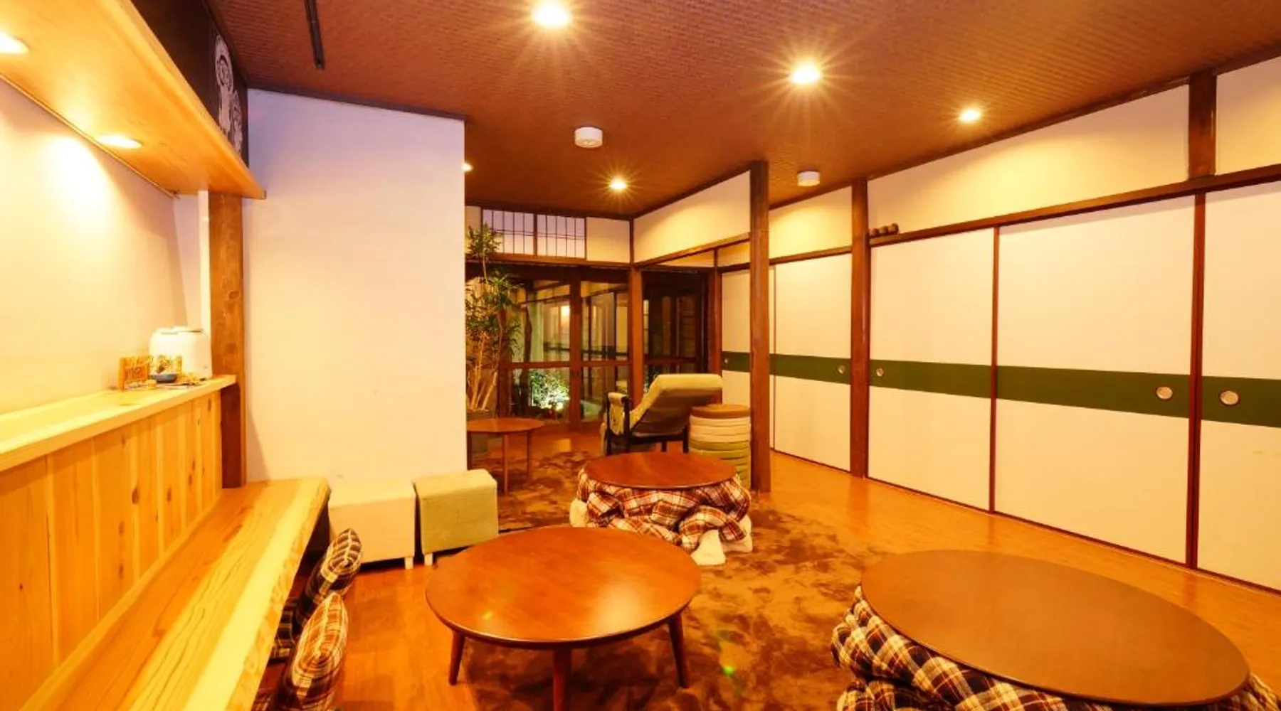 Located a 10-minute walk from Gion Shijo Station on the Keihan Line, Hotel Lantern Gion offers cozy accommodations with wooden decor for adult guests. JR Kyoto Station can be reached with a 16-minute drive. Free WiFi access is available throughout the property. Each room comes with air conditioning and heating facilities. Some rooms are fitted with tatami (woven-straw) flooring and futon bedding while others come with beds. Most rooms share bathroom facilities and do not come with towels. At Hotel Lantern Gion you will find a garden, a terrace and a shared kitchen. Other facilities offered at the property include a shared lounge. Guests can use the bike rental to visit the surroundings. Located in a famous geisha district, guests at the Guest house Lantern can enjoy the authentic local area and also reach the Yasaka Shrine with a 7-minute walk. Guests can make a 20-minute walk to the Kiyomizu Temple. There is no restaurant on site. The air-conditioned suite features 3 bedrooms and 1 bathroom with a bath and a shower. Meals can be prepared in the well-fitted kitchenette, which is fitted with a refrigerator, kitchenware, a microwave and a toaster. The suite offers tatami, a seating area, a wardrobe as well as a balcony with garden views. The unit offers 3 beds and 1 futon.