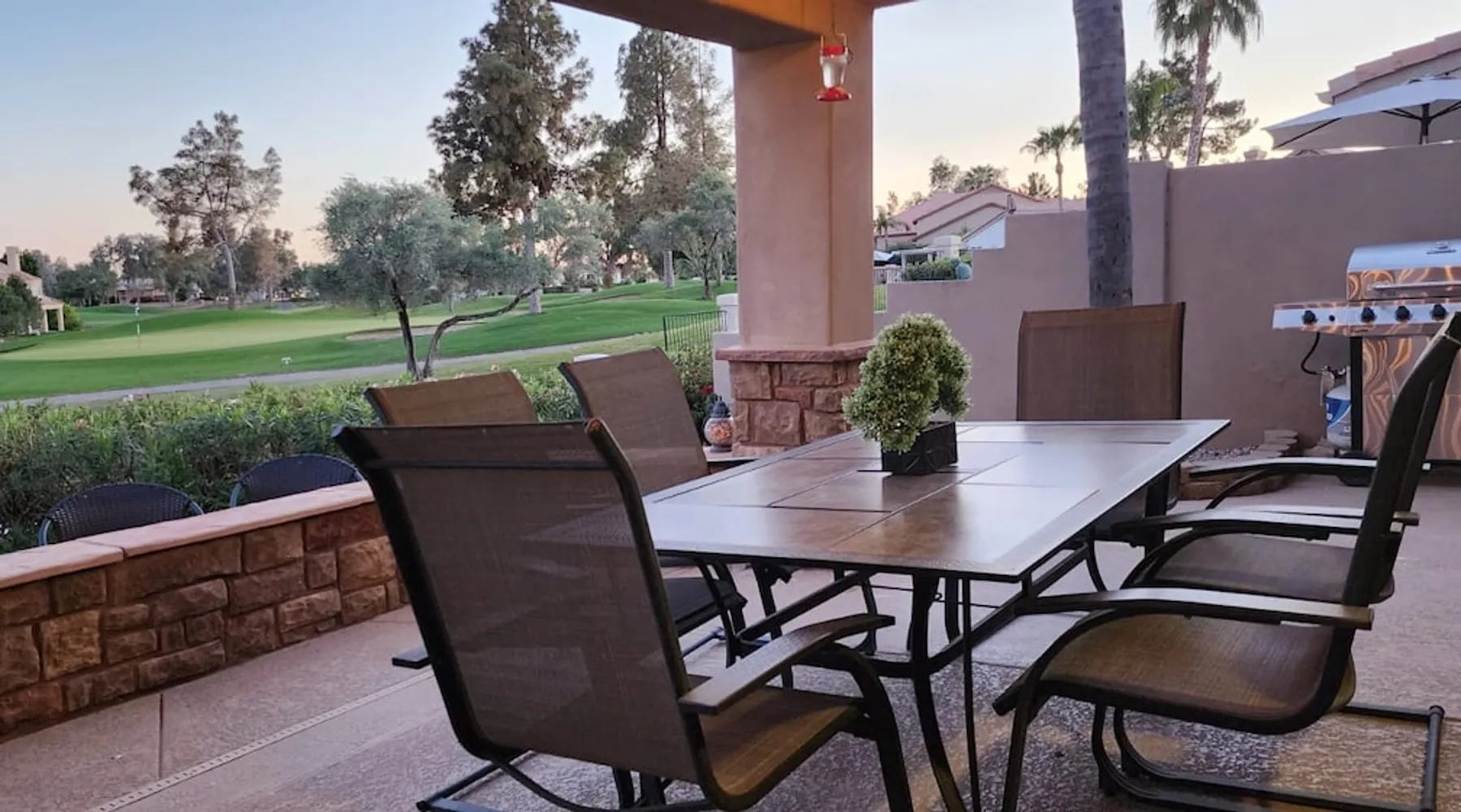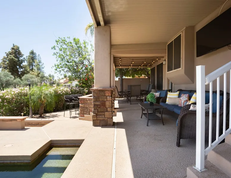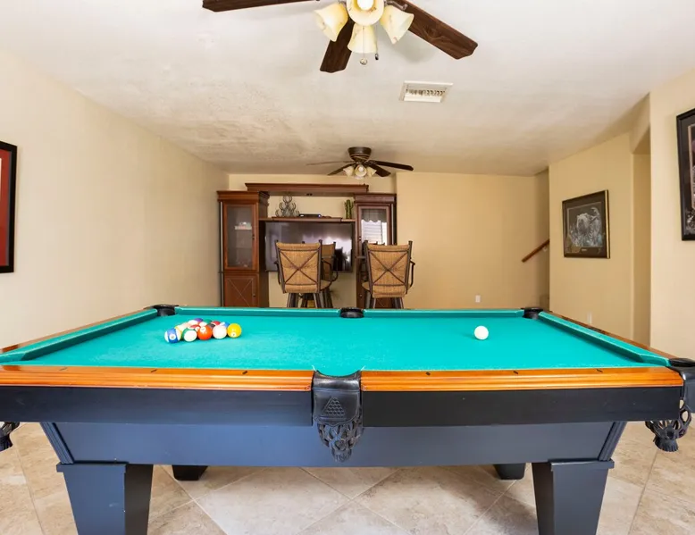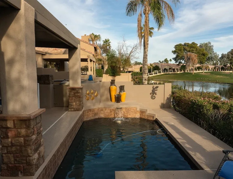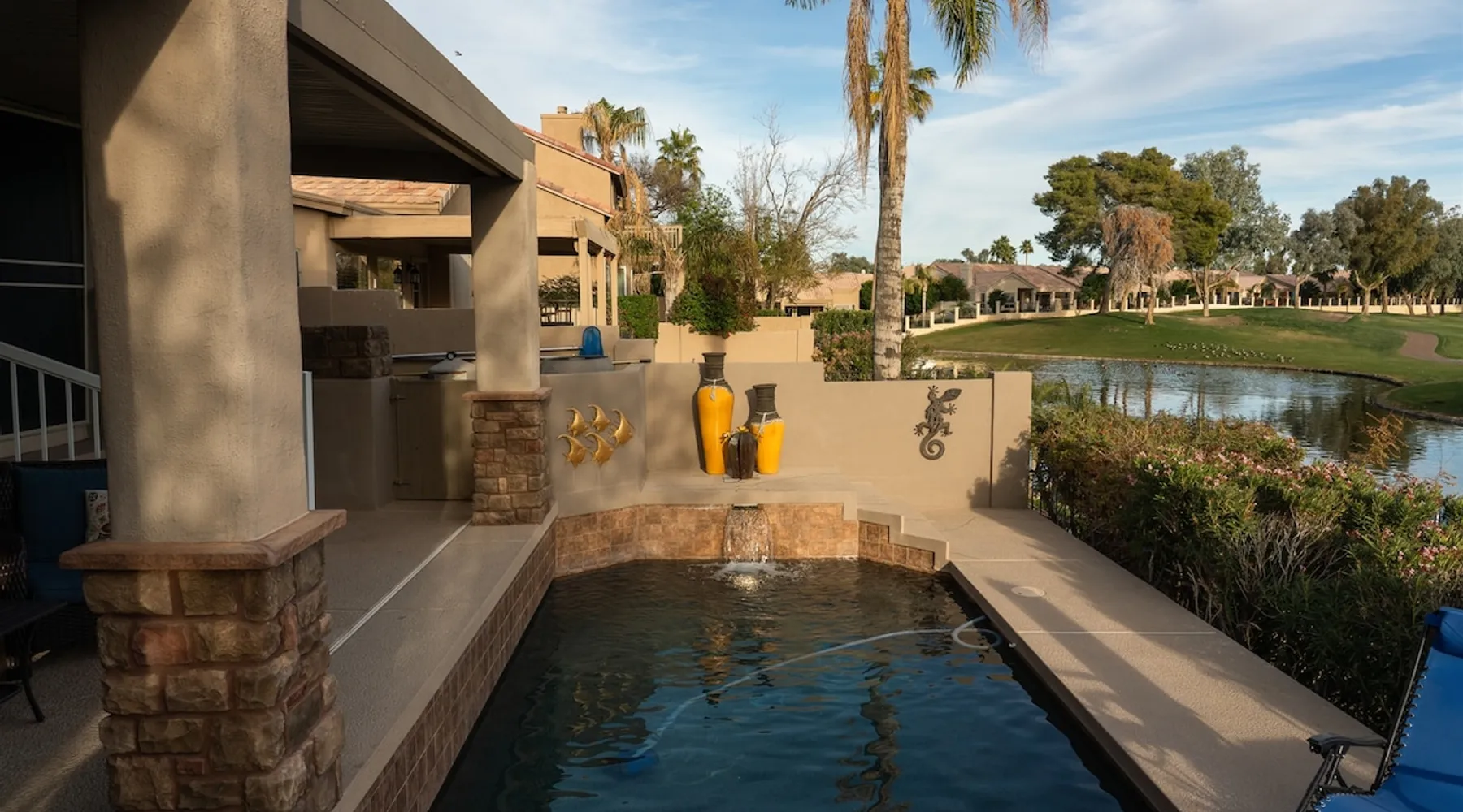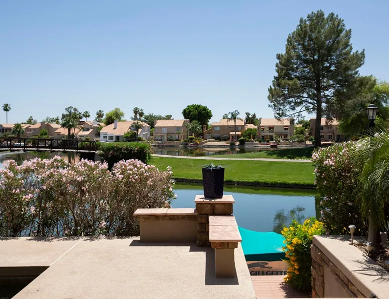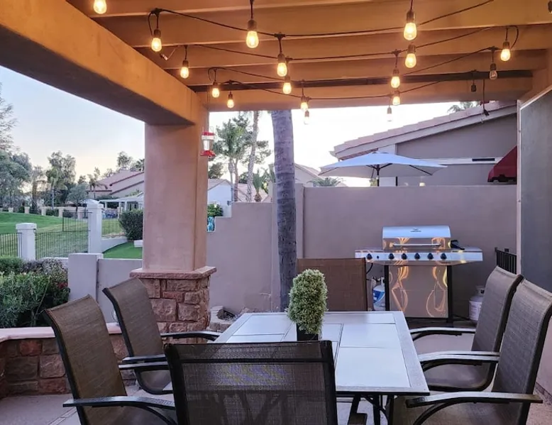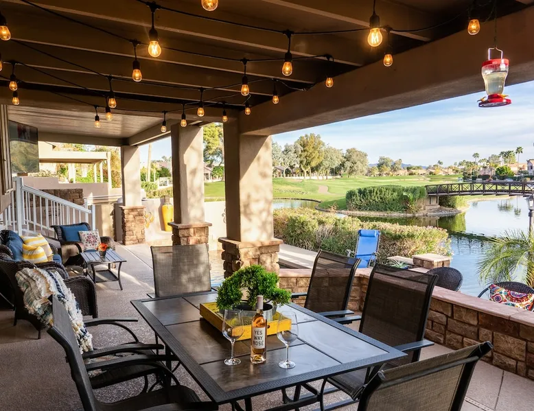 This 4 B/R home is located in a quiet, established neighborhood. The home has been recently furnished and upgraded and includes a pool table. It has an amazing backyard with golf course and lake views, boat dock and overlooking swimming pool (HEATING OPTIONAL) and BBQ grill. The space Thank you for checking us out! Please read the entire description as we try to answer the most common questions we get from guests. This listing is for the entire home including the backyard with pool (HEATING OPTIONAL) and patio area. The home is 2700 square feet with vaulted ceilings and new furnishings. All the essentials are provided such as sheets, blankets, towels, bath and shower toiletries and laundry supplies for your entire group. There is off-street parking available for up to 4 cars (2 garaged). There are no trailer, camper or RV parking accommodations available. **STAIRS ARE REQUIRED TO ACCESS BEDROOMS** SLEEPING AREAS: Master suite with king-size bed and attached full bathroom (main floor plus 2 steps up) Dedicated office space in Master bedroom One private bedroom with queen size bed (main floor plus 2 steps up) Two private bedrooms with queen size beds (lower floor) Front living room with a queen size sofa bed (main floor) Guest bathroom in hallway upstairs and in basement COMMON AREAS: Large kitchen with all your cooking needs, separate dining area, living room, family room, billiards room and a fully stocked laundry room, hair dryer, iron & ironing board, and vacuum cleaner are also available. (Children supplies such as high chair and pack n play are available for rent, please ask if needed. $5 per day per item, plus a $35 delivery charge. All fees subject to Arizona sales tax.) PARKING: Driveway can accommodate 4 vehicles, 2 garaged. No overnight street parking allowed. ** No Trailer or RV Parking Accommodations Available** ENTERTAINMENT: HDTV and Wireless High Speed Internet provided (information is documented in the home). 50” HDTV in living room 50” HDTV in family room 65” HDTV in billiards room 42” HDTV in Master Suite 42” HDTV in Upstairs guest room 42” HDTV in downstairs guest room 50" HDTV on back patio POOL: Heating Optional - the swimming pool is not normally heated and may take up to 24-36 hours to get up to desired temperature (varies with weather) and because of the heat pump system the pool heater will not operate below outside temperatures of 50 deg. Please let us know at booking time if you are interested in the heated pool option. Guests requesting this option are responsible for a service fee ($50/night - 1 week minimum plus tax and fees) added on to your reservation cost. BACKYARD: Gas BBQ Patio seating Pool PETS: ***Please let us know if you have pets, as dogs only are welcome to stay here with a max limit of 3 dogs. There is a per pet fee of $10 per day (plus tax). We do require that you have a place to keep your pet (i.e. dog crate, pet carrier, etc.) while you may be away from the house. We also need to know a few things about your pet (color, breed, weight, and age). Please let us know these details at booking time so that we are able to inform the community of your pet. Please note that guests are still responsible for picking up after their pet. Additional cleaning fees may be charged for pet messes left behind. *We do our best to ensure guests have a 5-star experience. Guests will be provided with a start up supply of household items such as laundry soap, dish soap, paper towels, toilet paper etc so that upon check in you do not need to run to the store. If you are staying longer than a few days, you will need to purchase these items. Thank you! When booking, please let us know how many guests will be in your party as well as how many vehicles you will have on-site, as well as the nature of your visit. With that info we can make sure the home is ready for your group and that you have all the necessary supplies, linens, etc. I am happy to answer any questions you may have. LOUD PARTIES AND LARGE GATHERINGS ARE NOT PERMITTED. Please only book this home if you will respect the neighborhood and its residents. Please limit noise when you are outside and observe quiet hours from 10PM to 8AM. LONG TERM STAYS: We offer discounts for longer term stays. Contact us for details! Note: Looking for a new home? Jon and Amanda are licensed real estate agents and specialize working with out of state buyers. We also offer our guests a credit of up to $1000 toward closing costs on the purchase of a home in the Phoenix metro area. Please let us know if you need assistance finding a property to meet your needs. If your trip is more adventure focused, the home is located near the Red Rock Mountain. Saguaro Lake is not far away as well. This home is also located an easy drive to Major League Baseball spring training stadiums, the Barrett Jackson auto show, the Arabian Horse Show, the Fiesta Bowl and all the other great area events If you are going to be travelling around the Southwest after your time in Phoenix, you can feel free to leave bigger bags here and use this as your base. San Diego, LA, Las Vegas, and the beaches of Mexico are all about 5 hours away. The Grand Canyon, Sedona, White Mountains, and AZ`s wine country are 2-4 hours. Take your carry-on and leave the big stuff while you explore. We have been to almost every corner of the state, so if you want to know the hidden treasures, we would be happy to tell you our favorite places to visit. Please note, because Phoenix is so spread out, we advise having a vehicle if you stay with us. Public transportation is not far away from our home, but it takes a while to get to most parts of the city from our home. With a car, we are convenient to most parts of the Valley, including downtown Phoenix (sports, restaurants, and arts), Tempe (shopping, restaurants, nightlife), Glendale (sports and shopping) and Scottsdale (shopping, arts, sports, nightlife). OTHER NOTES: *NO WALKING ON THE GOLF COURSE. It`s against the community