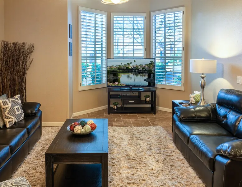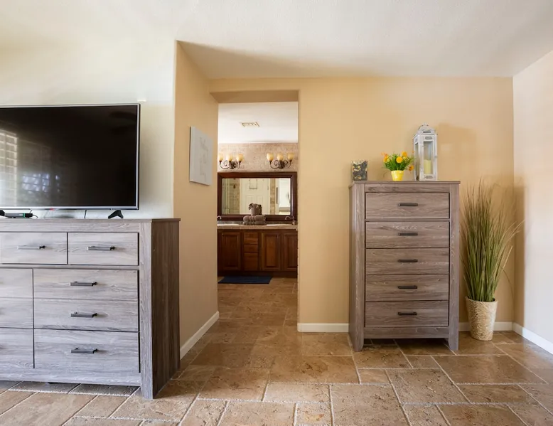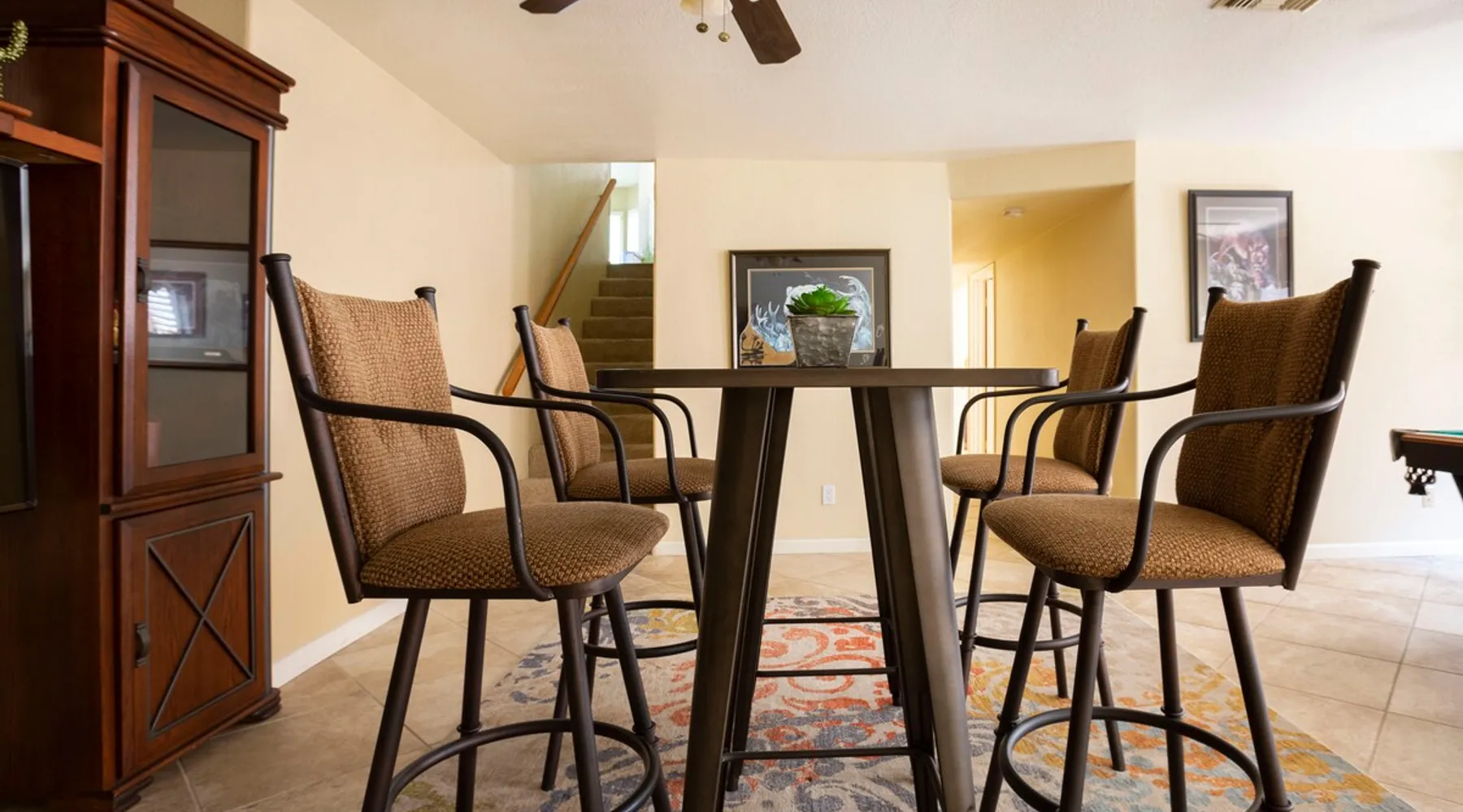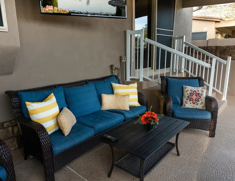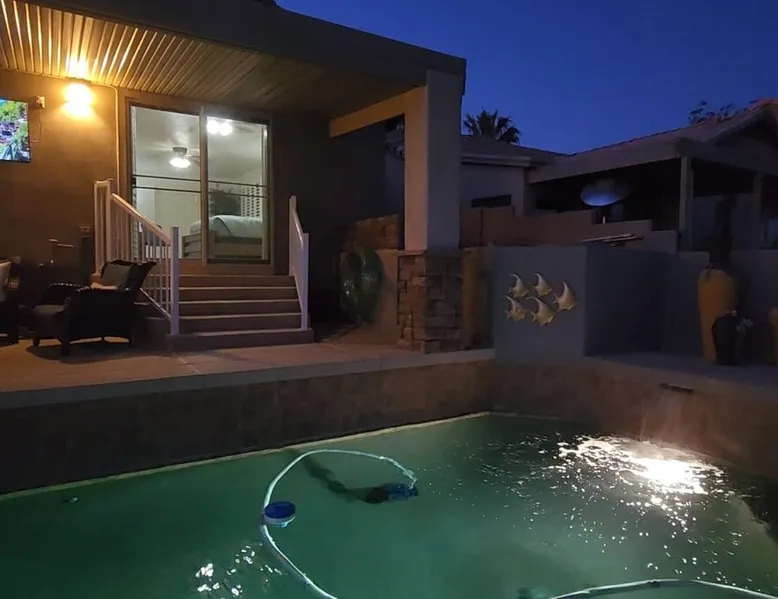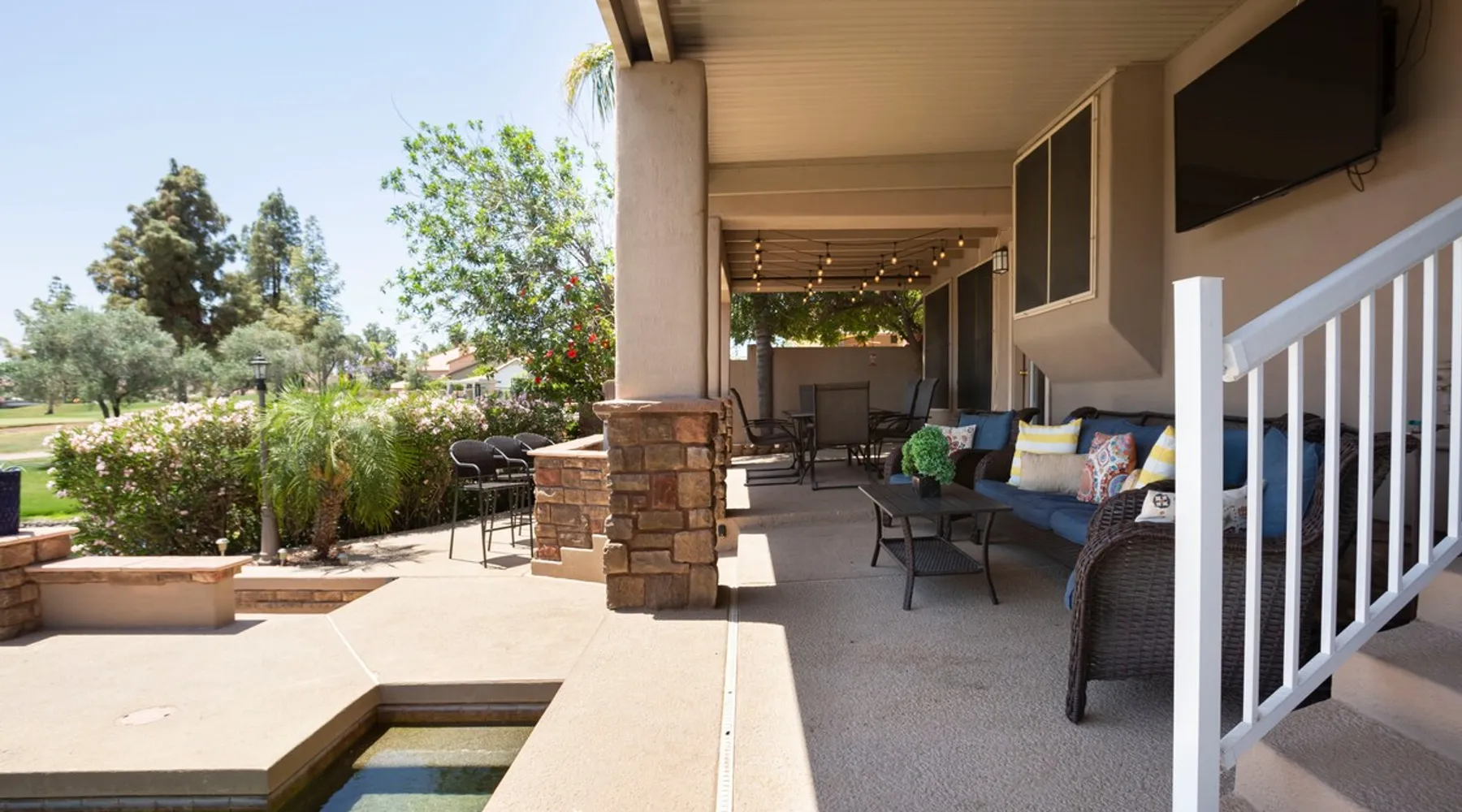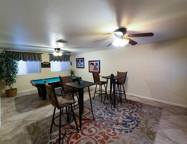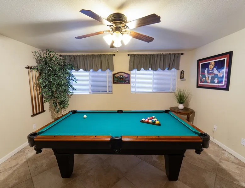 This 4 B/R home is located in a quiet, established neighborhood. The home has been recently furnished and upgraded and includes a pool table. It has an amazing backyard with golf course and lake views, boat dock and overlooking swimming pool (HEATING OPTIONAL) and BBQ grill. The space Thank you for checking us out! Please read the entire description as we try to answer the most common questions we get from guests. This listing is for the entire home including the backyard with pool (HEATING OPTIONAL) and patio area. The home is 2700 square feet with vaulted ceilings and new furnishings. All the essentials are provided such as sheets, blankets, towels, bath and shower toiletries and laundry supplies for your entire group. There is off-street parking available for up to 4 cars (2 garaged). There are no trailer, camper or RV parking accommodations available. **STAIRS ARE REQUIRED TO ACCESS BEDROOMS** SLEEPING AREAS: Master suite with king-size bed and attached full bathroom (main floor plus 2 steps up) Dedicated office space in Master bedroom One private bedroom with queen size bed (main floor plus 2 steps up) Two private bedrooms with queen size beds (lower floor) Front living room with a queen size sofa bed (main floor) Guest bathroom in hallway upstairs and in basement COMMON AREAS: Large kitchen with all your cooking needs, separate dining area, living room, family room, billiards room and a fully stocked laundry room, hair dryer, iron & ironing board, and vacuum cleaner are also available. (Children supplies such as high chair and pack n play are available for rent, please ask if needed. $5 per day per item, plus a $35 delivery charge. All fees subject to Arizona sales tax.) PARKING: Driveway can accommodate 4 vehicles, 2 garaged. No overnight street parking allowed. ** No Trailer or RV Parking Accommodations Available** ENTERTAINMENT: HDTV and Wireless High Speed Internet provided (information is documented in the home). 50” HDTV in living room 50” HDTV in family room 65” HDTV in billiards room 42” HDTV in Master Suite 42” HDTV in Upstairs guest room 42” HDTV in downstairs guest room 50" HDTV on back patio POOL: Heating Optional - the swimming pool is not normally heated and may take up to 24-36 hours to get up to desired temperature (varies with weather) and because of the heat pump system the pool heater will not operate below outside temperatures of 50 deg. Please let us know at booking time if you are interested in the heated pool option. Guests requesting this option are responsible for a service fee ($50/night - 1 week minimum plus tax and fees) added on to your reservation cost. BACKYARD: Gas BBQ Patio seating Pool PETS: ***Please let us know if you have pets, as dogs only are welcome to stay here with a max limit of 3 dogs. There is a per pet fee of $10 per day (plus tax). We do require that you have a place to keep your pet (i.e. dog crate, pet carrier, etc.) while you may be away from the house. We also need to know a few things about your pet (color, breed, weight, and age). Please let us know these details at booking time so that we are able to inform the community of your pet. Please note that guests are still responsible for picking up after their pet. Additional cleaning fees may be charged for pet messes left behind. *We do our best to ensure guests have a 5-star experience. Guests will be provided with a start up supply of household items such as laundry soap, dish soap, paper towels, toilet paper etc so that upon check in you do not need to run to the store. If you are staying longer than a few days, you will need to purchase these items. Thank you! When booking, please let us know how many guests will be in your party as well as how many vehicles you will have on-site, as well as the nature of your visit. With that info we can make sure the home is ready for your group and that you have all the necessary supplies, linens, etc. I am happy to answer any questions you may have. LOUD PARTIES AND LARGE GATHERINGS ARE NOT PERMITTED. Please only book this home if you will respect the neighborhood and its residents. Please limit noise when you are outside and observe quiet hours from 10PM to 8AM. LONG TERM STAYS: We offer discounts for longer term stays. Contact us for details! Note: Looking for a new home? Jon and Amanda are licensed real estate agents and specialize working with out of state buyers. We also offer our guests a credit of up to $1000 toward closing costs on the purchase of a home in the Phoenix metro area. Please let us know if you need assistance finding a property to meet your needs. If your trip is more adventure focused, the home is located near the Red Rock Mountain. Saguaro Lake is not far away as well. This home is also located an easy drive to Major League Baseball spring training stadiums, the Barrett Jackson auto show, the Arabian Horse Show, the Fiesta Bowl and all the other great area events If you are going to be travelling around the Southwest after your time in Phoenix, you can feel free to leave bigger bags here and use this as your base. San Diego, LA, Las Vegas, and the beaches of Mexico are all about 5 hours away. The Grand Canyon, Sedona, White Mountains, and AZ`s wine country are 2-4 hours. Take your carry-on and leave the big stuff while you explore. We have been to almost every corner of the state, so if you want to know the hidden treasures, we would be happy to tell you our favorite places to visit. Please note, because Phoenix is so spread out, we advise having a vehicle if you stay with us. Public transportation is not far away from our home, but it takes a while to get to most parts of the city from our home. With a car, we are convenient to most parts of the Valley, including downtown Phoenix (sports, restaurants, and arts), Tempe (shopping, restaurants, nightlife), Glendale (sports and shopping) and Scottsdale (shopping, arts, sports, nightlife). OTHER NOTES: *NO WALKING ON THE GOLF COURSE. It`s against the community