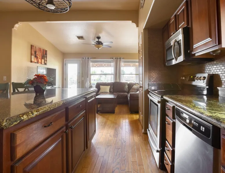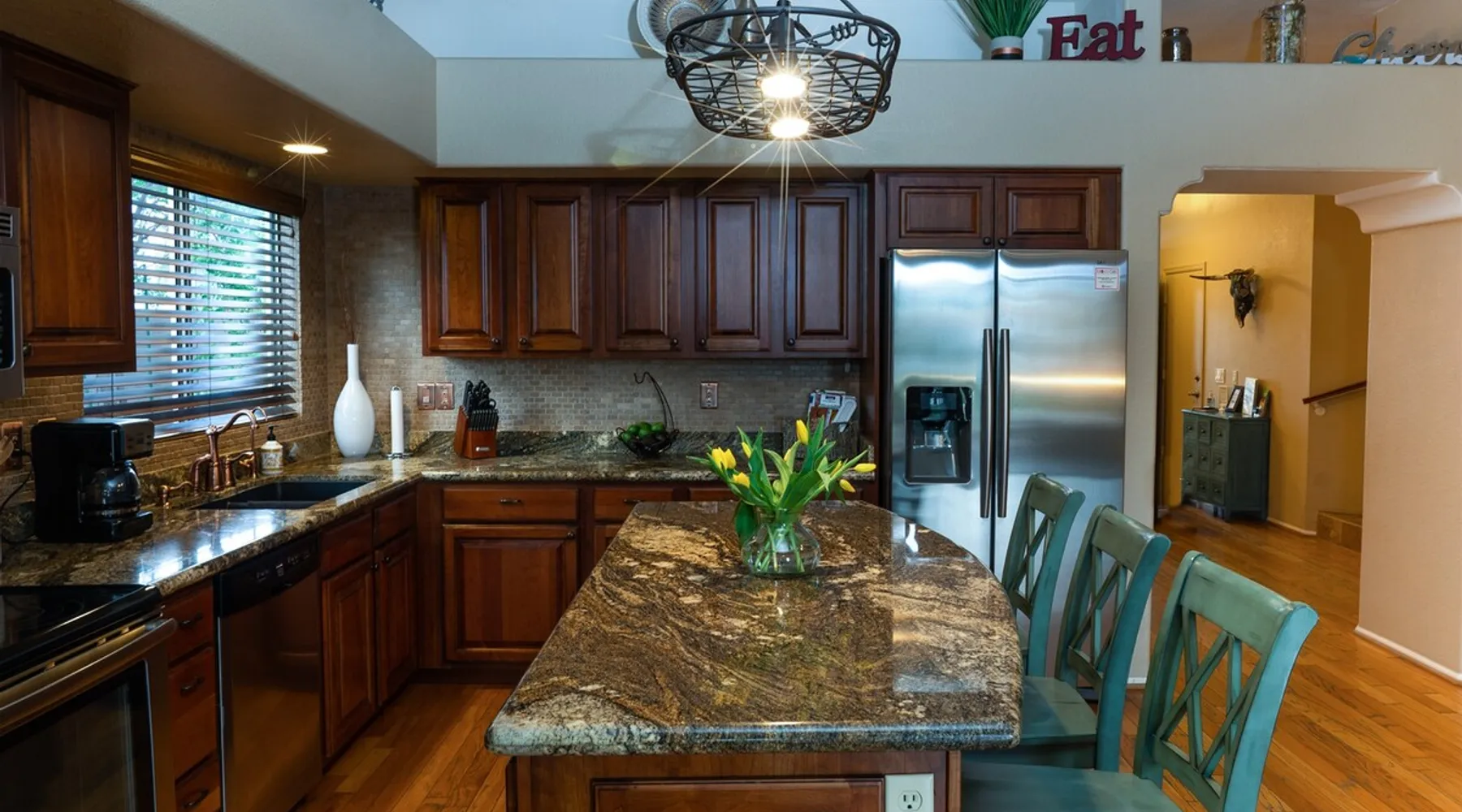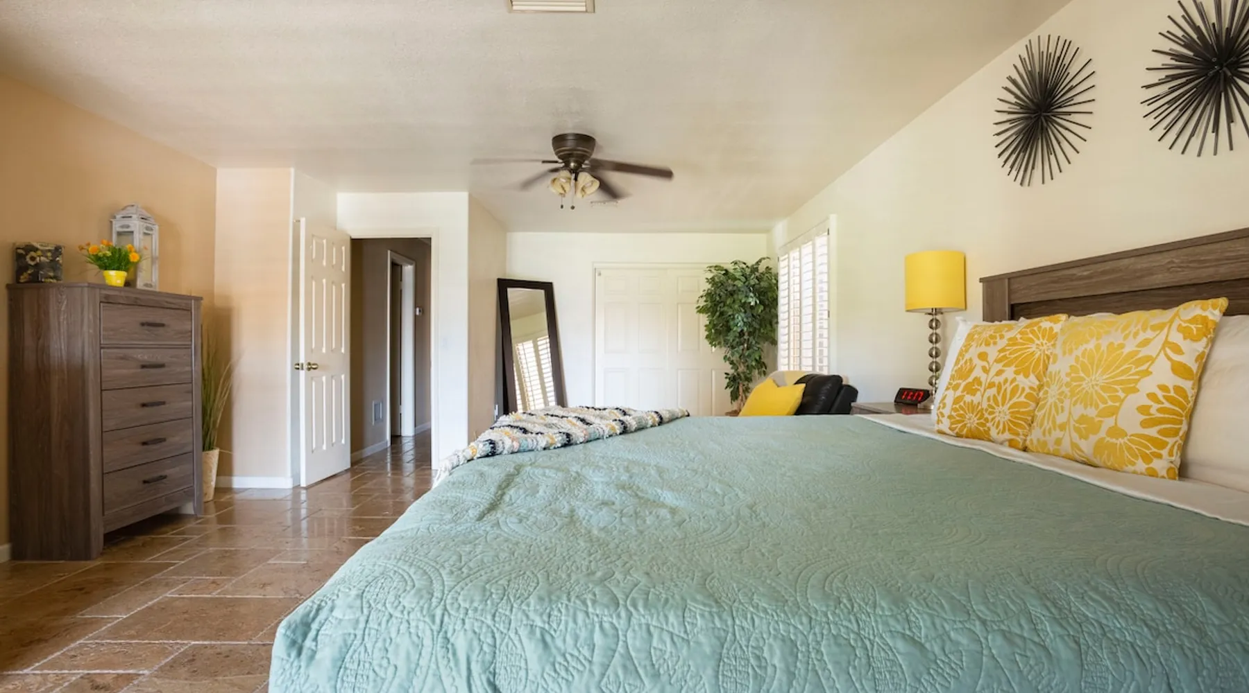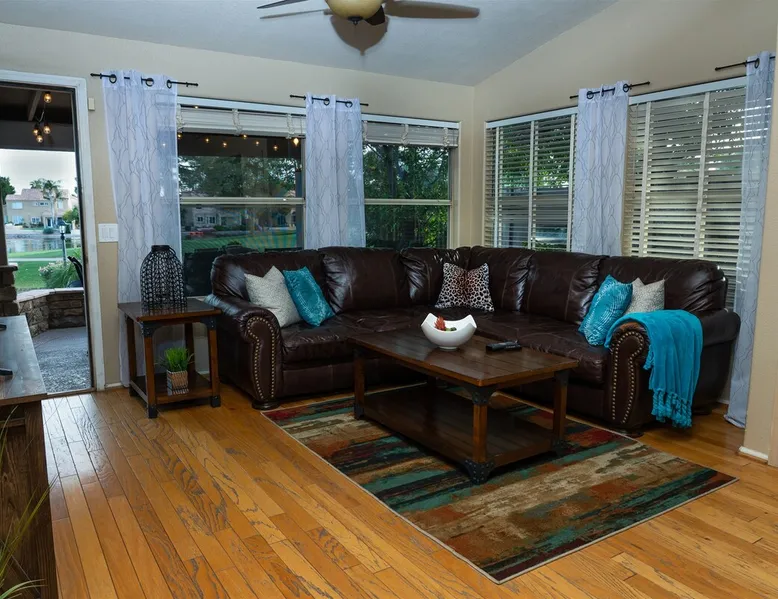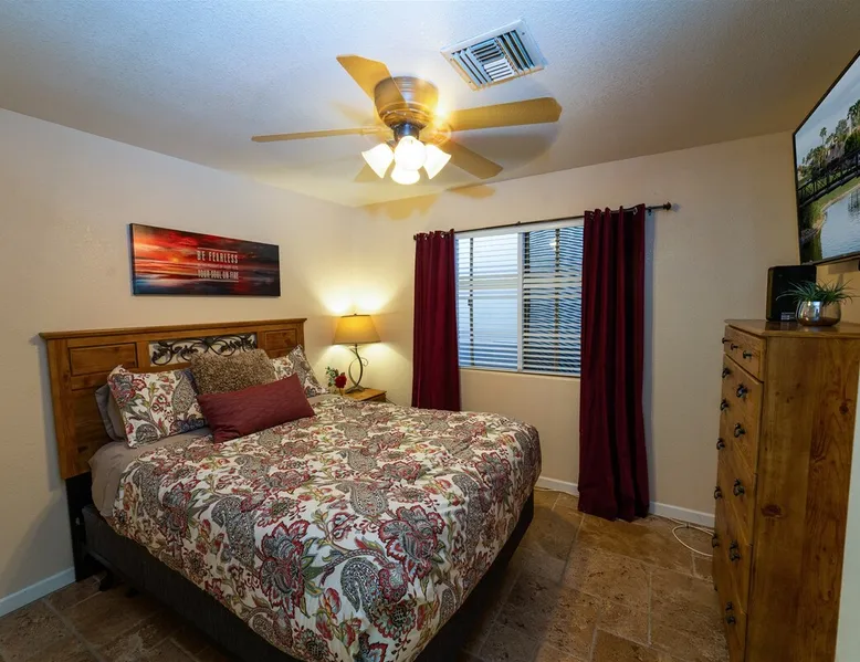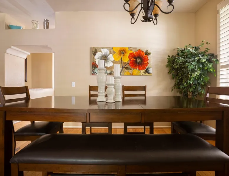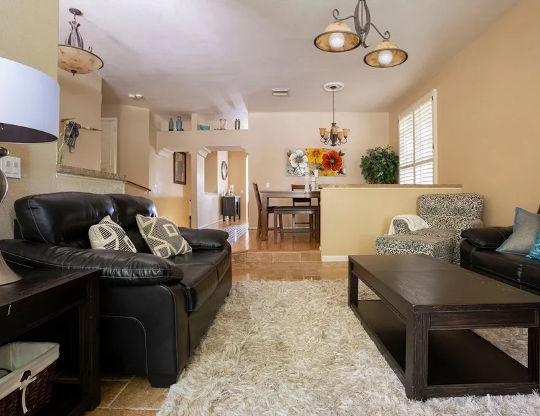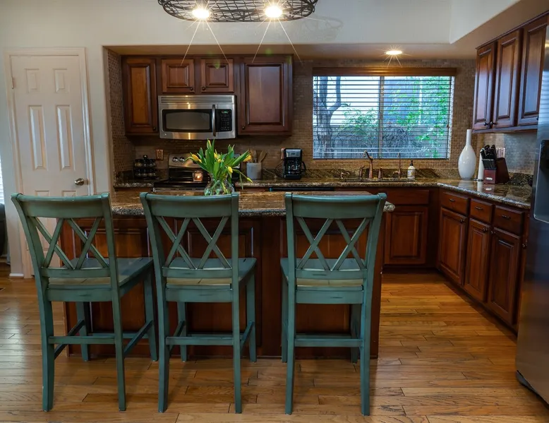 This 4 B/R home is located in a quiet, established neighborhood. The home has been recently furnished and upgraded and includes a pool table. It has an amazing backyard with golf course and lake views, boat dock and overlooking swimming pool (HEATING OPTIONAL) and BBQ grill. The space Thank you for checking us out! Please read the entire description as we try to answer the most common questions we get from guests. This listing is for the entire home including the backyard with pool (HEATING OPTIONAL) and patio area. The home is 2700 square feet with vaulted ceilings and new furnishings. All the essentials are provided such as sheets, blankets, towels, bath and shower toiletries and laundry supplies for your entire group. There is off-street parking available for up to 4 cars (2 garaged). There are no trailer, camper or RV parking accommodations available. **STAIRS ARE REQUIRED TO ACCESS BEDROOMS** SLEEPING AREAS: Master suite with king-size bed and attached full bathroom (main floor plus 2 steps up) Dedicated office space in Master bedroom One private bedroom with queen size bed (main floor plus 2 steps up) Two private bedrooms with queen size beds (lower floor) Front living room with a queen size sofa bed (main floor) Guest bathroom in hallway upstairs and in basement COMMON AREAS: Large kitchen with all your cooking needs, separate dining area, living room, family room, billiards room and a fully stocked laundry room, hair dryer, iron & ironing board, and vacuum cleaner are also available. (Children supplies such as high chair and pack n play are available for rent, please ask if needed. $5 per day per item, plus a $35 delivery charge. All fees subject to Arizona sales tax.) PARKING: Driveway can accommodate 4 vehicles, 2 garaged. No overnight street parking allowed. ** No Trailer or RV Parking Accommodations Available** ENTERTAINMENT: HDTV and Wireless High Speed Internet provided (information is documented in the home). 50” HDTV in living room 50” HDTV in family room 65” HDTV in billiards room 42” HDTV in Master Suite 42” HDTV in Upstairs guest room 42” HDTV in downstairs guest room 50" HDTV on back patio POOL: Heating Optional - the swimming pool is not normally heated and may take up to 24-36 hours to get up to desired temperature (varies with weather) and because of the heat pump system the pool heater will not operate below outside temperatures of 50 deg. Please let us know at booking time if you are interested in the heated pool option. Guests requesting this option are responsible for a service fee ($50/night - 1 week minimum plus tax and fees) added on to your reservation cost. BACKYARD: Gas BBQ Patio seating Pool PETS: ***Please let us know if you have pets, as dogs only are welcome to stay here with a max limit of 3 dogs. There is a per pet fee of $10 per day (plus tax). We do require that you have a place to keep your pet (i.e. dog crate, pet carrier, etc.) while you may be away from the house. We also need to know a few things about your pet (color, breed, weight, and age). Please let us know these details at booking time so that we are able to inform the community of your pet. Please note that guests are still responsible for picking up after their pet. Additional cleaning fees may be charged for pet messes left behind. *We do our best to ensure guests have a 5-star experience. Guests will be provided with a start up supply of household items such as laundry soap, dish soap, paper towels, toilet paper etc so that upon check in you do not need to run to the store. If you are staying longer than a few days, you will need to purchase these items. Thank you! When booking, please let us know how many guests will be in your party as well as how many vehicles you will have on-site, as well as the nature of your visit. With that info we can make sure the home is ready for your group and that you have all the necessary supplies, linens, etc. I am happy to answer any questions you may have. LOUD PARTIES AND LARGE GATHERINGS ARE NOT PERMITTED. Please only book this home if you will respect the neighborhood and its residents. Please limit noise when you are outside and observe quiet hours from 10PM to 8AM. LONG TERM STAYS: We offer discounts for longer term stays. Contact us for details! Note: Looking for a new home? Jon and Amanda are licensed real estate agents and specialize working with out of state buyers. We also offer our guests a credit of up to $1000 toward closing costs on the purchase of a home in the Phoenix metro area. Please let us know if you need assistance finding a property to meet your needs. If your trip is more adventure focused, the home is located near the Red Rock Mountain. Saguaro Lake is not far away as well. This home is also located an easy drive to Major League Baseball spring training stadiums, the Barrett Jackson auto show, the Arabian Horse Show, the Fiesta Bowl and all the other great area events If you are going to be travelling around the Southwest after your time in Phoenix, you can feel free to leave bigger bags here and use this as your base. San Diego, LA, Las Vegas, and the beaches of Mexico are all about 5 hours away. The Grand Canyon, Sedona, White Mountains, and AZ`s wine country are 2-4 hours. Take your carry-on and leave the big stuff while you explore. We have been to almost every corner of the state, so if you want to know the hidden treasures, we would be happy to tell you our favorite places to visit. Please note, because Phoenix is so spread out, we advise having a vehicle if you stay with us. Public transportation is not far away from our home, but it takes a while to get to most parts of the city from our home. With a car, we are convenient to most parts of the Valley, including downtown Phoenix (sports, restaurants, and arts), Tempe (shopping, restaurants, nightlife), Glendale (sports and shopping) and Scottsdale (shopping, arts, sports, nightlife). OTHER NOTES: *NO WALKING ON THE GOLF COURSE. It`s against the community