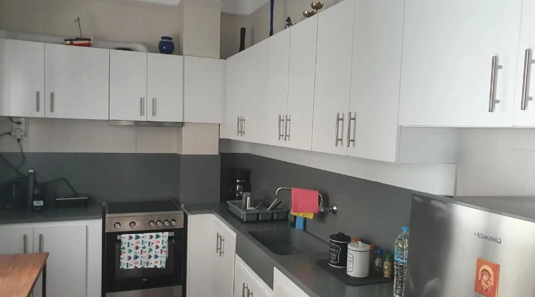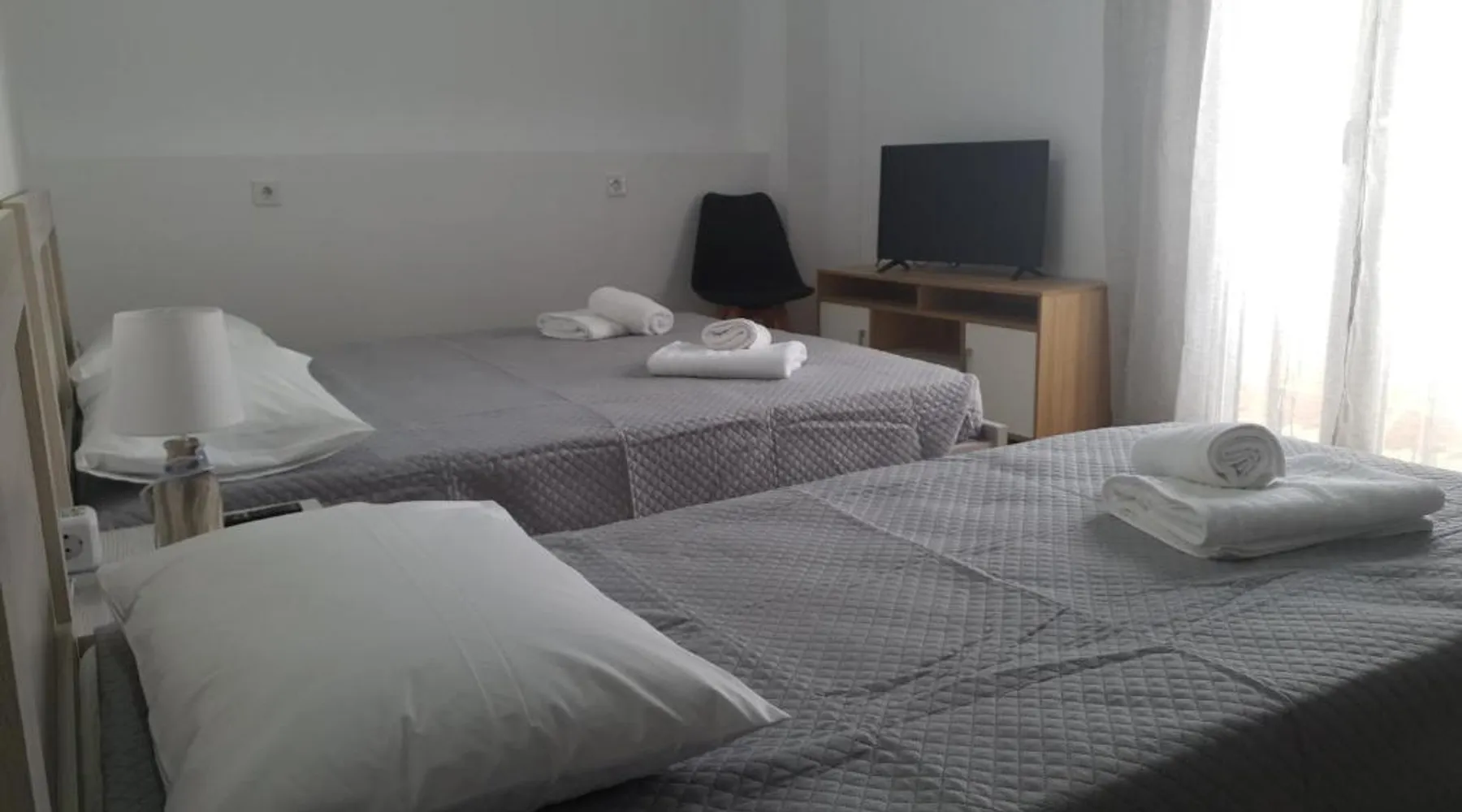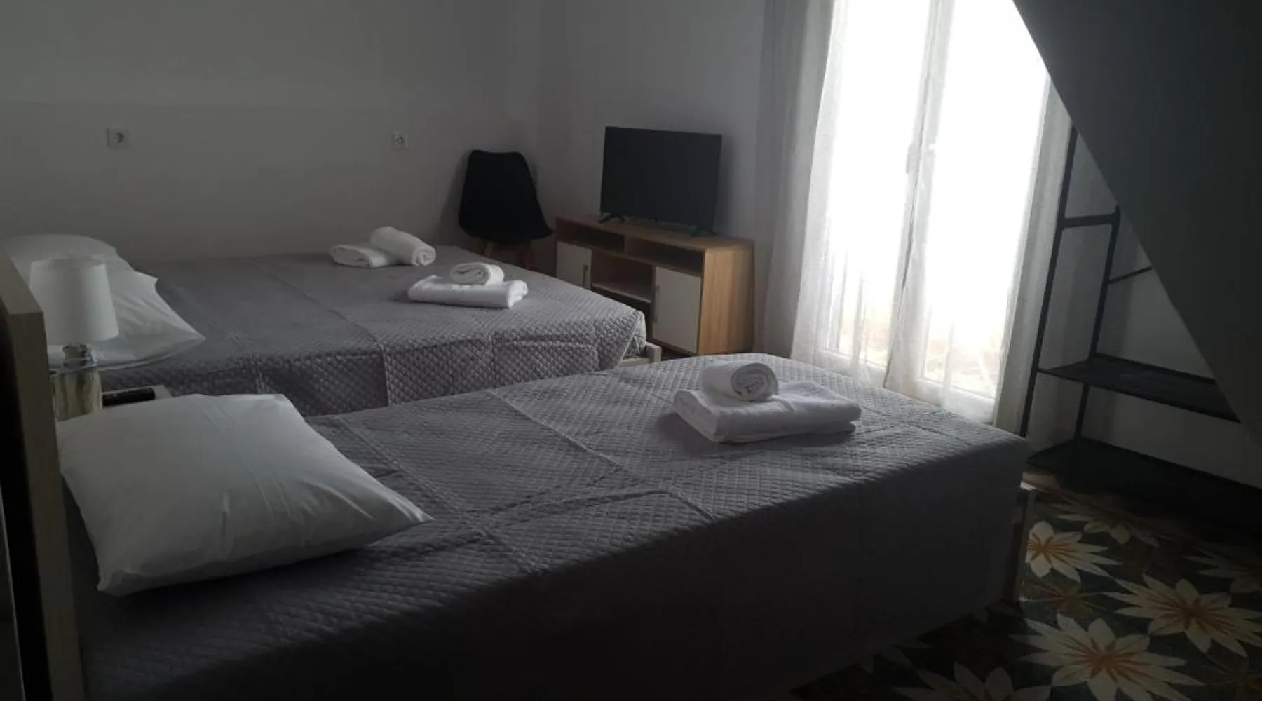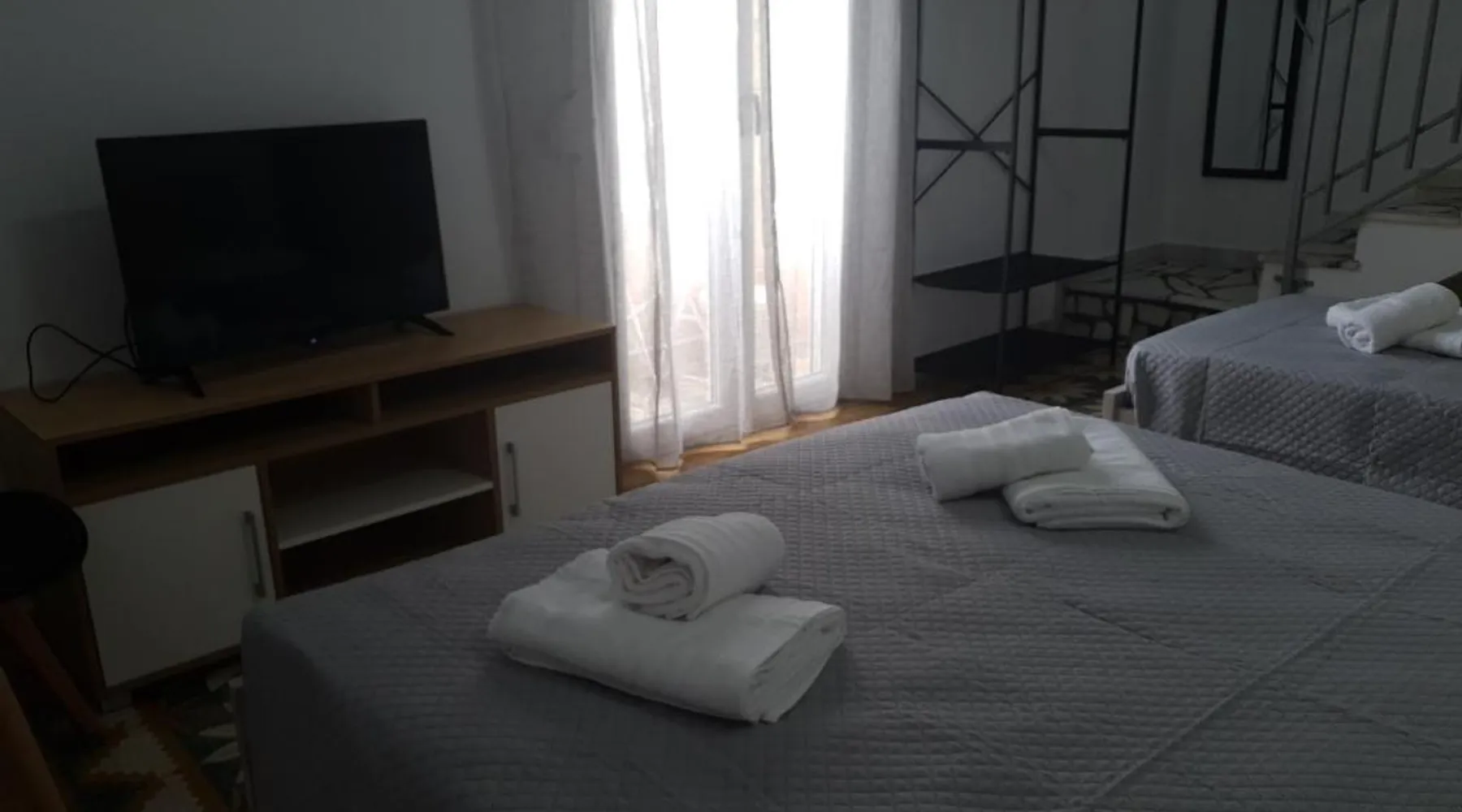Comfortable Accommodations: Callisto room 4 in Ermoupoli offers a one-bedroom apartment with a sun terrace. The property features a balcony, terrace, and patio, providing sea, mountain, and city views. Modern Amenities: The apartment includes air-conditioning, streaming services, and a fully equipped kitchen with a coffee machine and oven. Additional amenities include a dining area, washing machine, and free parking. Convenient Location: Located 1.9 mi from Syros Island National Airport, the apartment is near Asteria Beach (1.2 mi) and Miaouli Square (0.6 mi). Saint Nicholas Church is a 17-minute walk away, and the Industrial Museum of Ermoupoli is 1312 feet nearby. The fully equipped kitchen has a stovetop, a refrigerator, kitchenware and an oven. Boasting a terrace with sea views, this apartment also features air conditioning and a flat-screen TV with streaming services. The unit has 2 beds.