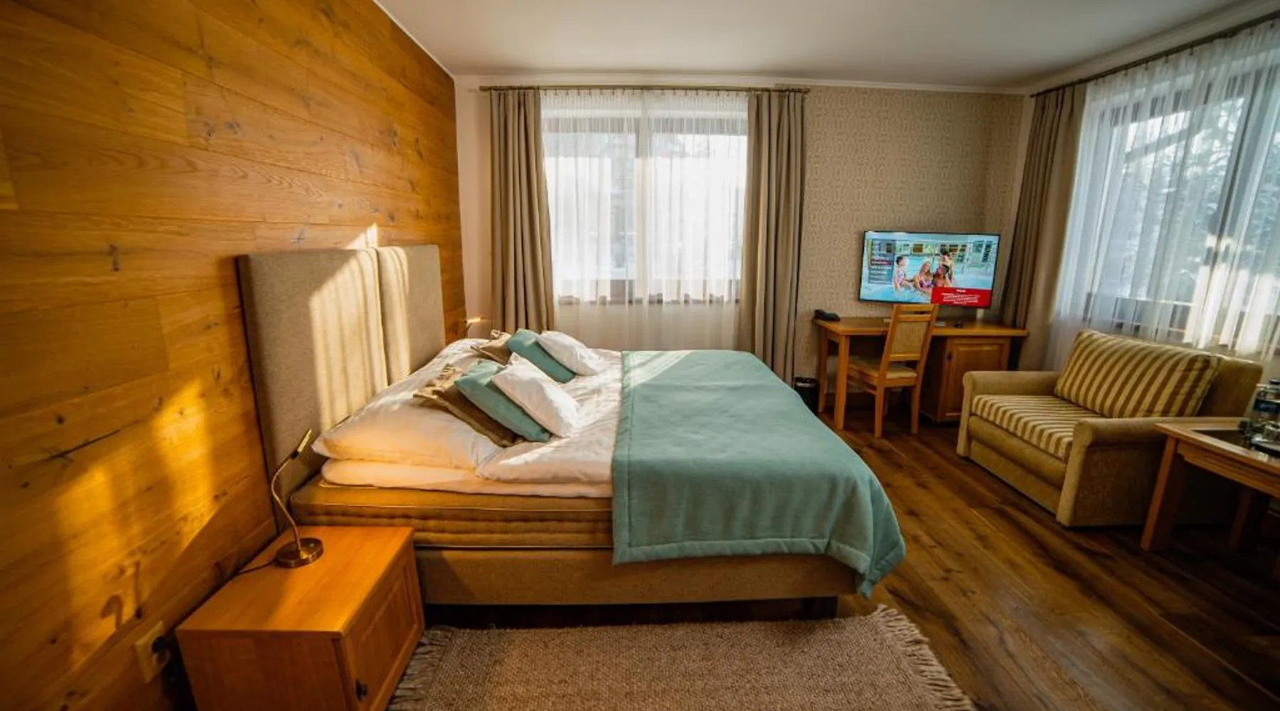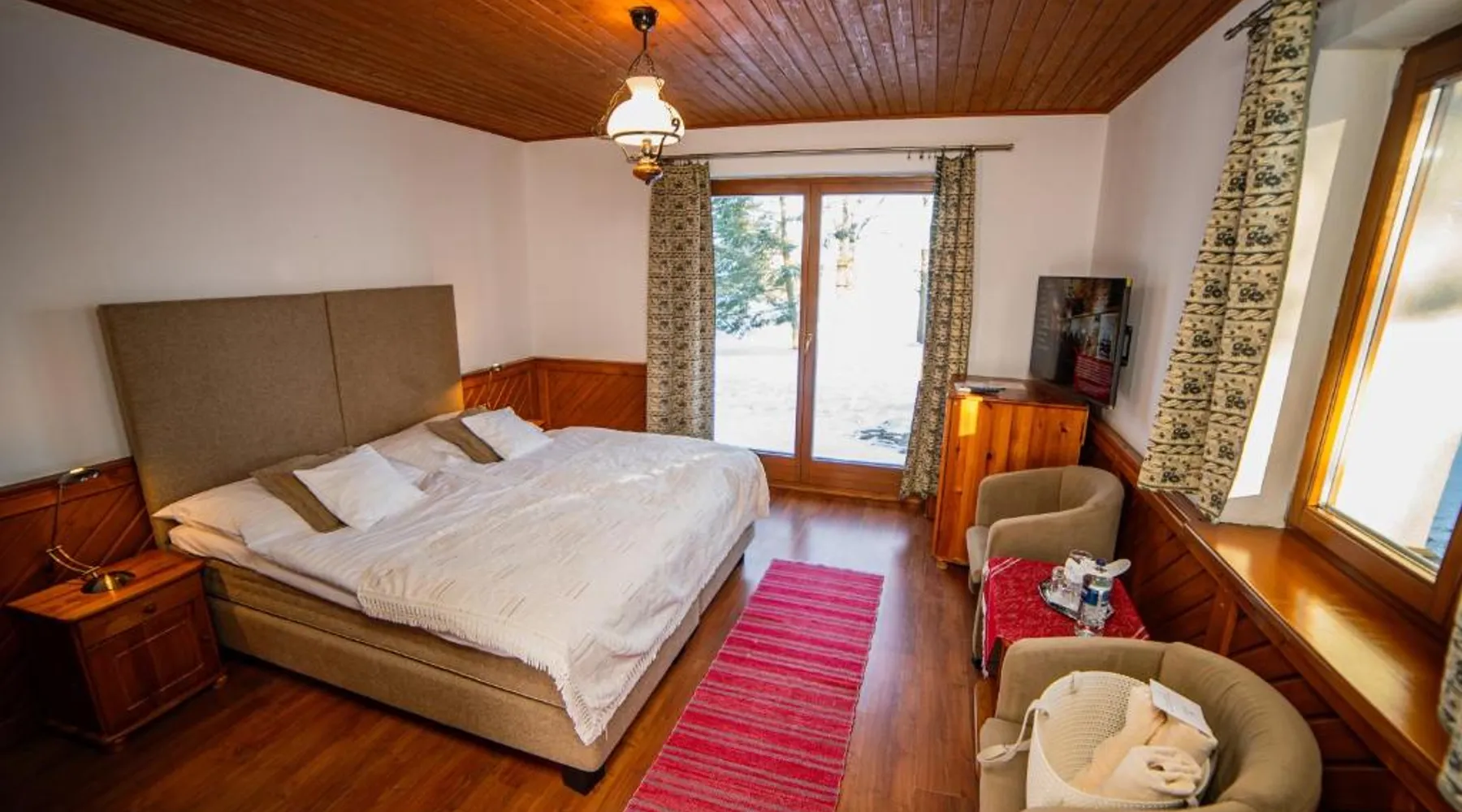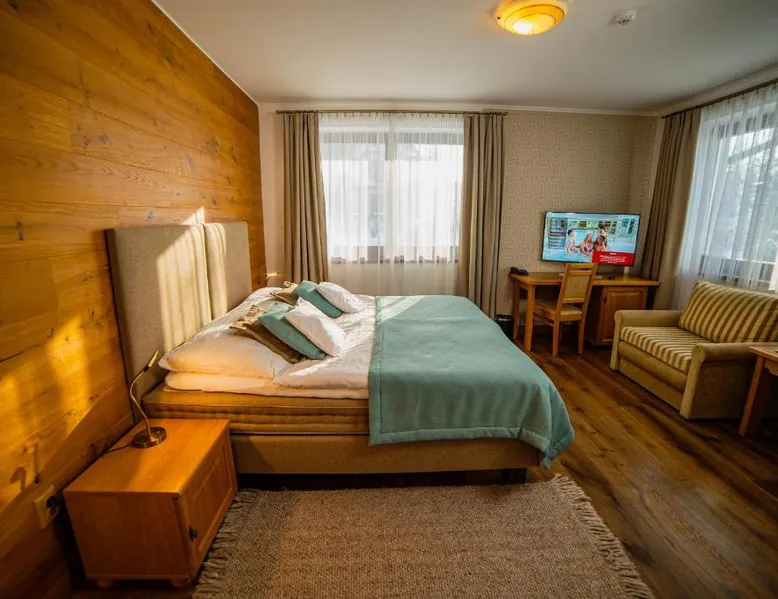 Amid peaceful countryside of the Orava region, Oravský Háj Garden Hotel & Resort features free indoor pool, hot tub, as well massage treatments and sun beds for a fee. A variety of sport activities is offered. Wi-Fi is for free. There are free fitness center and multifunctional sports ground. Guests can also enjoy a game of billiard and table tennis, and relax while fishing in the resort pond and horseback riding in the 5-hectare complex. Sauna is offered for a surcharge and bike rental is also available. The Garden Hotel & Resort Oravský Háj consists of 6 rustic-style houses surrounded by a large well-maintained garden. All rooms come with a view and feature a flat-screen satellite TV. Each unit consists of a private bathroom with a shower or a bathtub, and some include a balcony too. The restaurant contains a summer terrace and a winter garden. Located in the main building, it serves characteristic Slovak cuisine. In warmer season, guests can also make use of barbecue facilities. Oravský Háj is a 5-minute drive from the ski slopes of Brezovica. Hikes to the Skorušiná Mountains can be started directly from the hotel. The town of Trstená is 3.7 mi away. Free private parking is on site. This spacious room with wooden furnishings and floorings features a flat-screen satellite TV. It offers a view of the surrounding landscape, and contains a private bathroom with a shower or a bathtub. Some rooms come with a balcony.