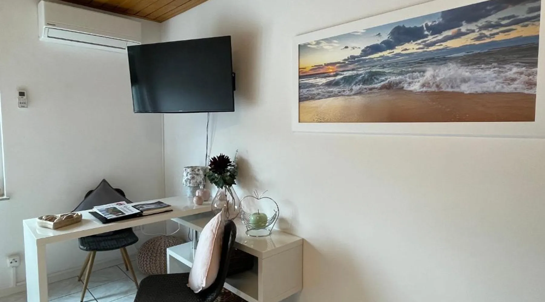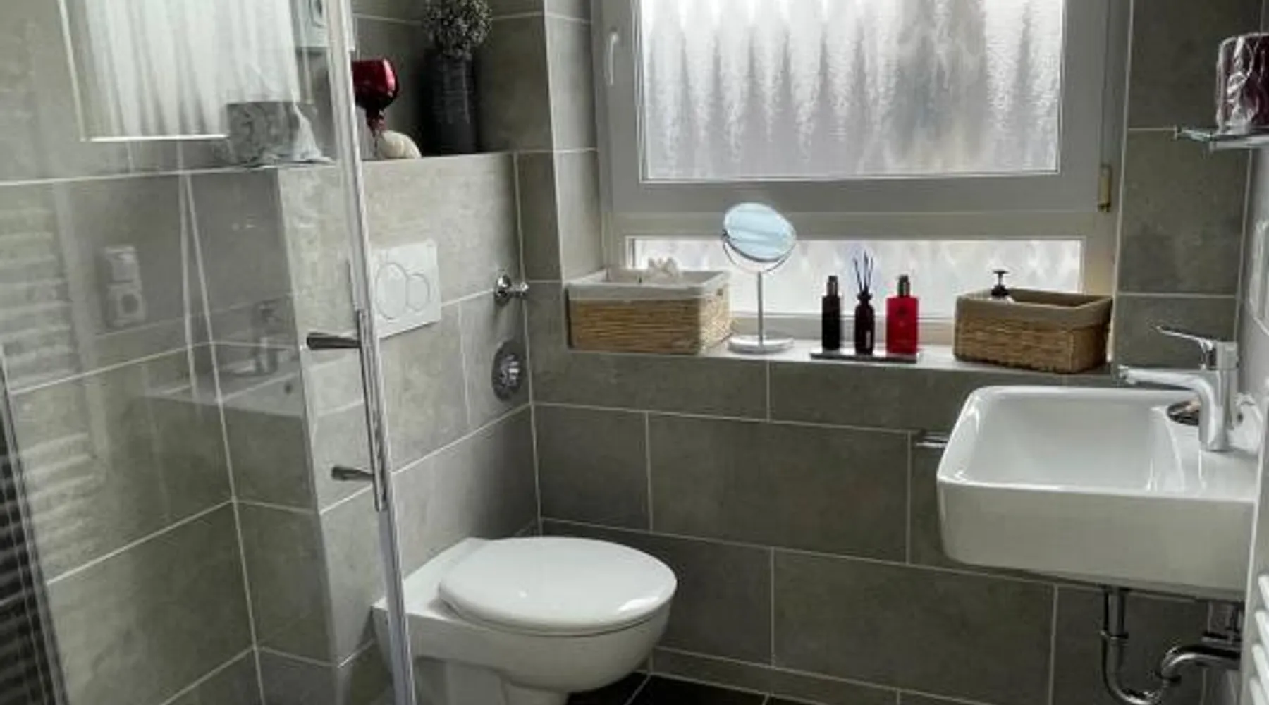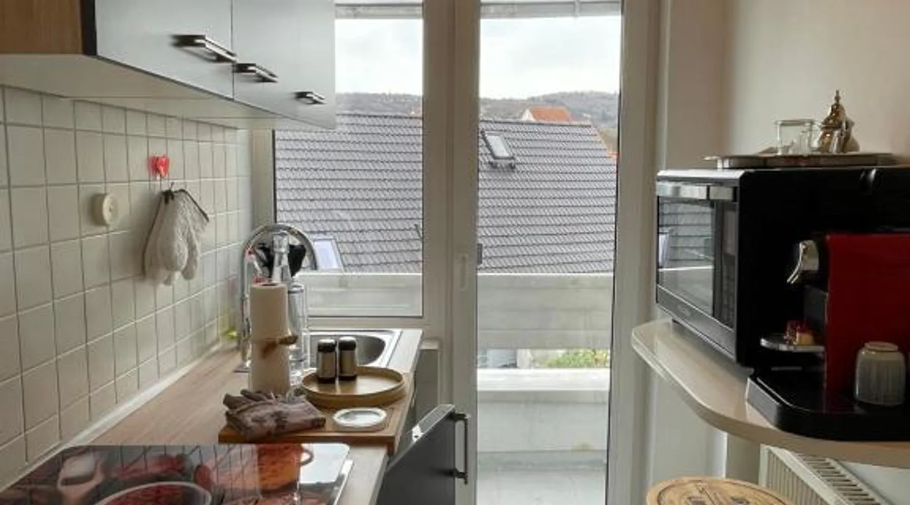Comfortable Living Space: Wohnen beim Brotsommelier - Holzmichel in Darmstadt offers a one-bedroom apartment with a balcony. The property includes air-conditioning, a kitchenette, washing machine, and free WiFi. Modern Amenities: Guests can enjoy a work desk, TV, tea and coffee maker, hairdryer, refrigerator, oven, and stovetop. The apartment features a private entrance and a clean, convenient location. Local Attractions: Located 20 mi from Frankfurt Airport, the apartment is near Darmstadt Central Station (5.6 mi) and Darmstadtium (5.6 mi). Other points of interest include Messel Pit (11 mi) and Städel Museum (25 mi). Activities and Surroundings: Guests can enjoy hiking, cycling, scuba diving, and other activities. The surrounding area offers various opportunities for outdoor enthusiasts. Featuring a private entrance, this air-conditioned apartment is consisted of of 1 bedroom and 1 bathroom with a hairdryer. The well-fitted kitchenette features a stovetop, a refrigerator and an oven. Boasting a balcony, this apartment also offers a washing machine, a tea and coffee maker and a flat-screen TV with cable channels. The unit offers 1 bed.