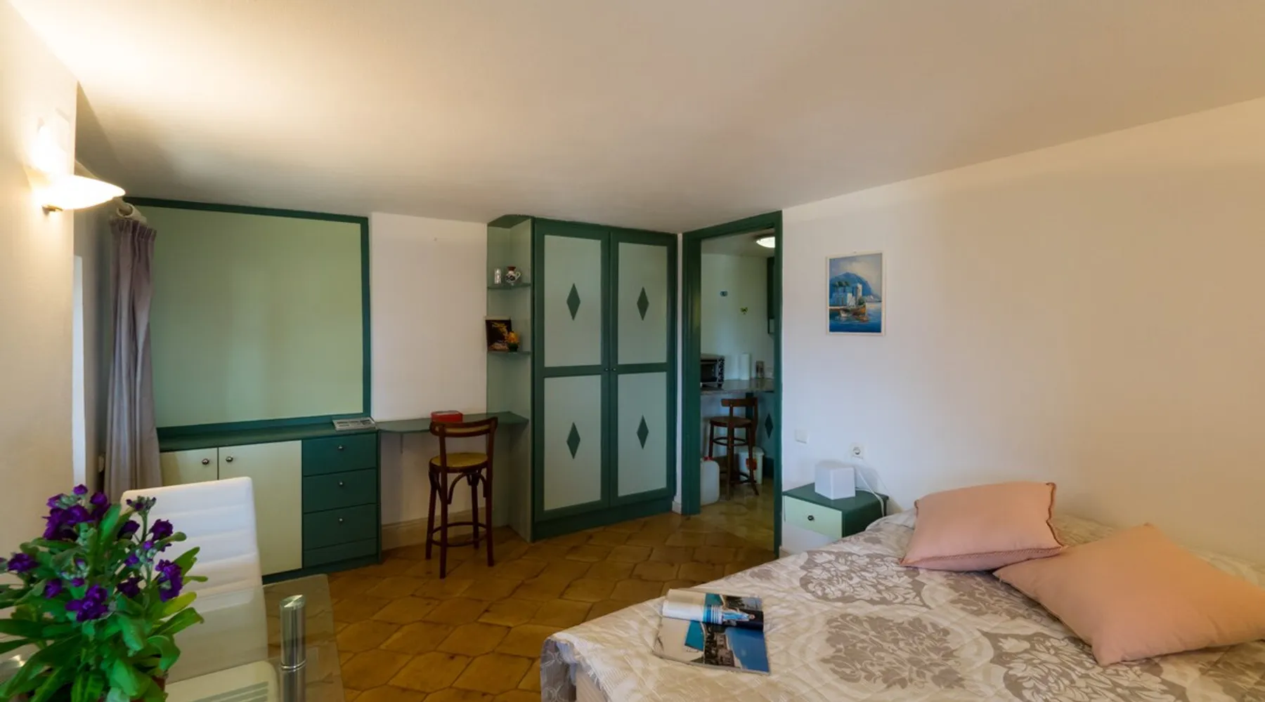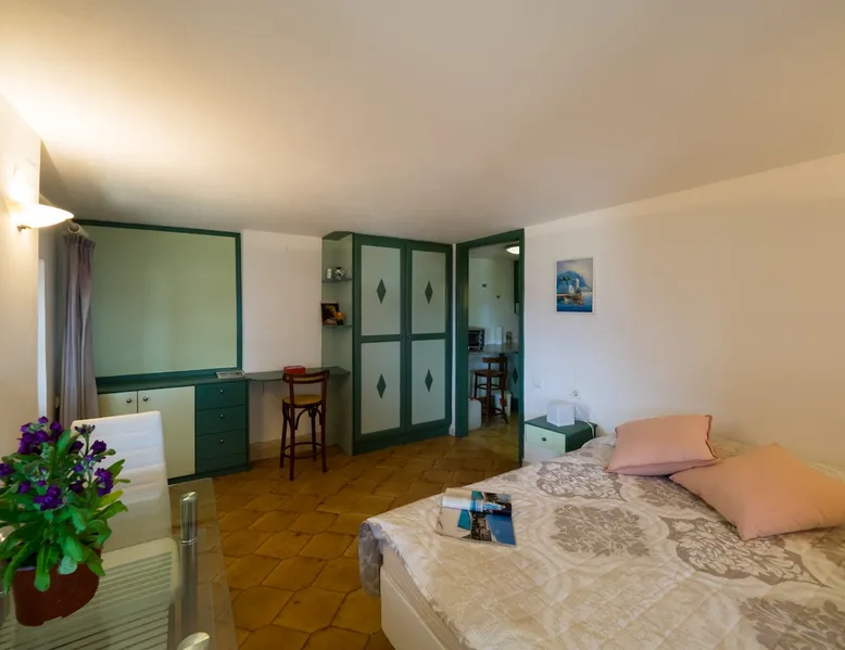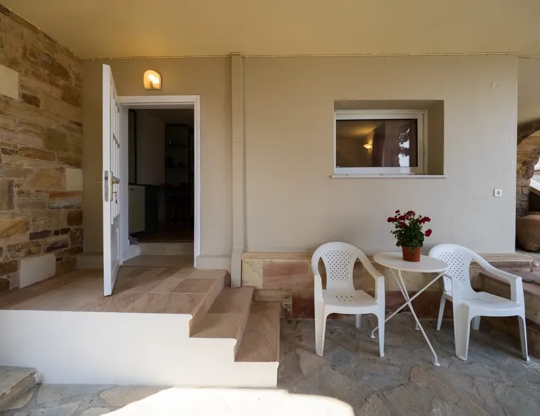 Casa di Mare is a self-contained 30sqm ground floor studio, part of a two-story house next to the coastal road of Vrontados, in Chios. It is located in an area with a great view of the sea and the coast of Turkey and just across the area of the Afanis Sailor, which adorns an imposing statue at the edge of the beach. The space Casa di Mare Studio consists of 2 main spaces. The main bedroom area and kitchen. There is also a bathroom which has a shower. Finally it has a courtyard with shade, overlooking the beautiful beach front of Vrontados. Registration Details 00001316755