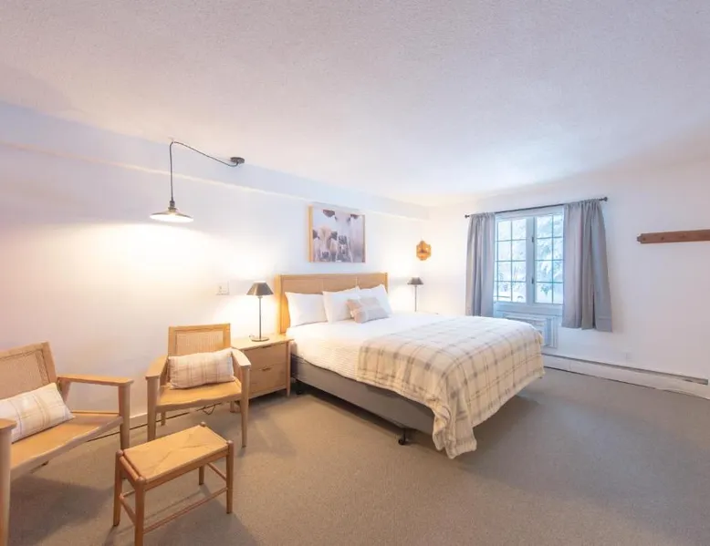 Located only 1 1/2 miles from the base of Vermont's Highest Peak, The Innsbruck Inn at Stowe offers a classic alpine experience. Offering Deluxe resort inn accommodations, amenities, and a scenic, streamside property. Free Wi-Fi and satellite TV are offered in the spacious, traditional-style rooms. They have a fridge and coffee maker along with a CD player. An extra sink and vanity are outside the bathroom. Guests can enjoy the paddle tennis court or lighted skating rink. SkiMeister Café & Bar serves a hot breakfast buffet and offers free soup and a snack in the winter and free afternoon tea and baked snacks in the summer. Innsbruck Inn Stowe is within 2.3 mi of Smugglers Notch State Park and Stowe Country Club. Mount Mansfield is 5.8 mi away and Morrisville is 13 mi away. This suite features a fireplace. Boasting a private entrance, this spacious suite also features 2 bedrooms, a seating area and 1 bathroom with a bath and a shower. The air-conditioned suite features a flat-screen TV with streaming services, a tea and coffee maker, a dining area, a wardrobe as well as mountain views. The unit has 3 beds.
