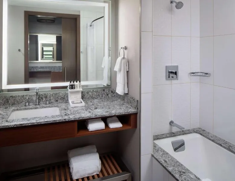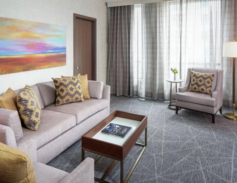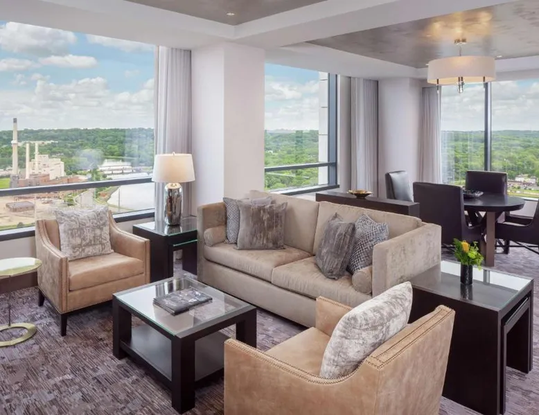 Comfortable Accommodations: Rooms feature air-conditioning, tea and coffee makers, hairdryers, refrigerators, work desks, and TVs. Additional amenities include bathrobes, baths, bidets, sofa beds, seating areas, free toiletries, slippers, and interconnected rooms. Exceptional Facilities: Guests enjoy spa facilities, an indoor swimming pool, sauna, fitness center, sun terrace, restaurant, massage services, bar, and a steam room. The hotel offers a 24-hour front desk, concierge service, minimarket, daily housekeeping, and room service. Dining Experience: The family-friendly restaurant serves American and Steakhouse cuisines for brunch, lunch, and dinner, alongside cocktails. Outdoor seating is available. Prime Location: Located 8.1 mi from Rochester International Airport, the hotel is a 4-minute walk from Plummer Building and 1312 feet from Mayo Civic Center. Boating is available in the surroundings. Highly rated for staff and service support, restaurant, and room comfort. The spacious suite offers air conditioning, a tea and coffee maker, a safe deposit box, heating, as well as a TV with cable channels. The unit has 1 bed.