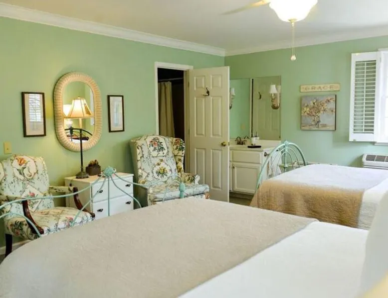 Comfortable Accommodations: Green Tree Inn in Elsah offers family rooms with private bathrooms, air-conditioning, and free WiFi. Each room includes a TV, work desk, and balcony with garden views. Leisure Facilities: Guests can relax on the sun terrace, enjoy the garden, and use free bicycles. The property features an outdoor fireplace, lounge, and games room. Convenient Services: Private check-in and check-out, a 24-hour front desk, and concierge service ensure a comfortable stay. Additional amenities include a coffee shop, outdoor seating area, and picnic spots. Local Attractions: Raging Rivers WaterPark is 3.1 mi away, and St. Louis Lambert International Airport is 22 mi from the inn. Walking tours, hiking, and cycling are available nearby. This air-conditioned double room is consisted of of a flat-screen TV with cable channels, a private bathroom as well as a balcony with a quiet street view. The unit has 1 bed.