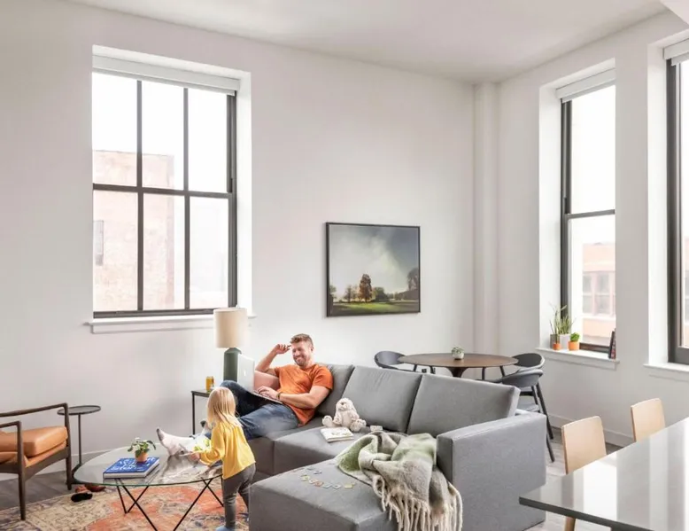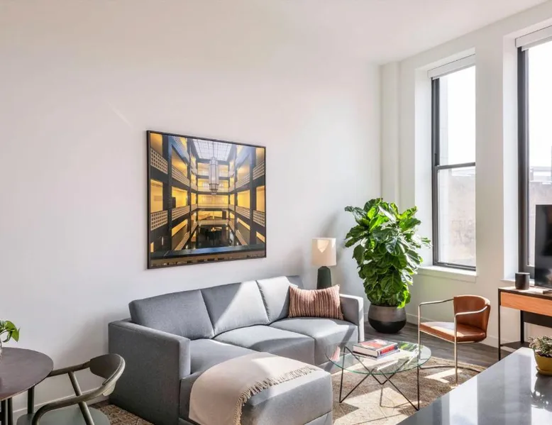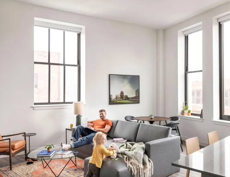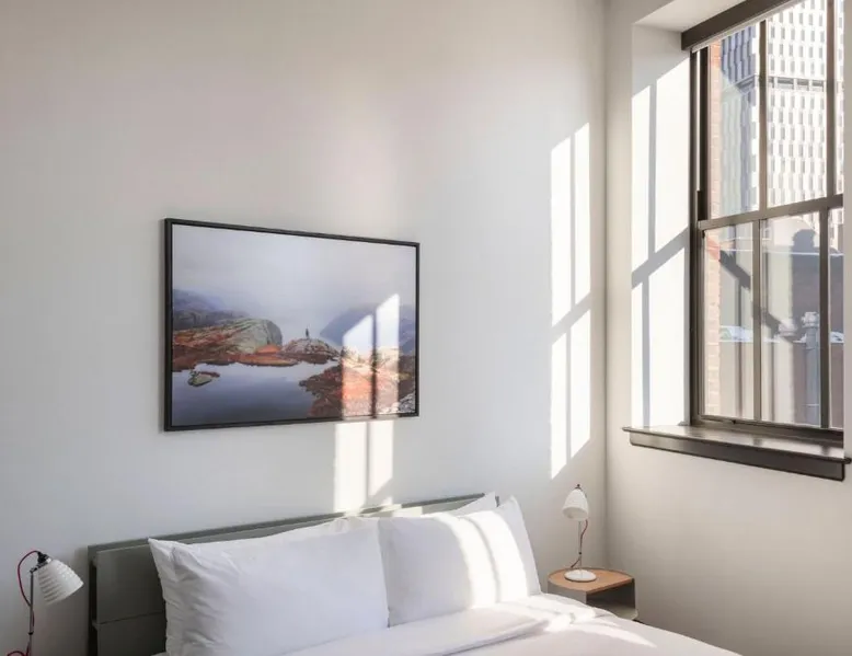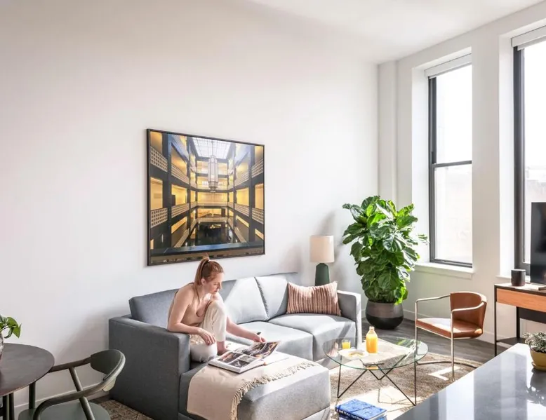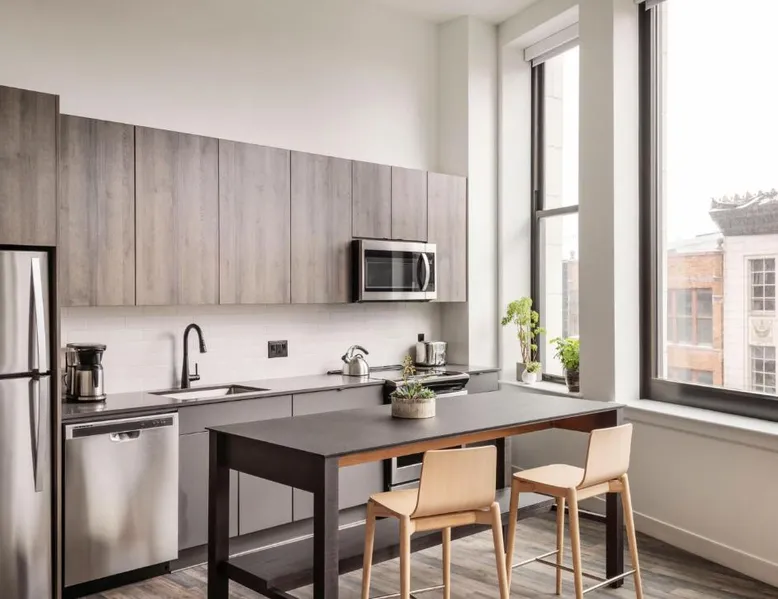 Prime Location: ROOST Cleveland in Cleveland offers a convenient city center location with Quicken Loans Arena a 5-minute walk away. Progressive Field is 2297 feet nearby, while the Rock and Roll Hall of Fame and Museum lies 1.2 mi from the aparthotel. Comfortable Accommodations: Each apartment features a private bathroom, air-conditioning, and a fully equipped kitchen with modern appliances. Guests enjoy free WiFi, a fitness center, sun terrace, and free use of bicycles. Convenient Amenities: The aparthotel provides a lounge, elevator, 24-hour front desk, concierge service, indoor play area, electric vehicle charging station, outdoor seating, family rooms, full-day security, bicycle parking, barbecue facilities, and luggage storage. Nearby Attractions: Quicken Loans Arena, Progressive Field, and the Rock and Roll Hall of Fame are highly rated by guests. Boating is available in the surrounding area. This spacious suite comes with 1 living room, 2 separate bedrooms and 2 bathrooms with a bath and a shower. Guests can make meals in the kitchen that features a stovetop, a refrigerator, a dishwasher and an oven. The air-conditioned suite features a flat-screen TV with streaming services, a washing machine, a tea and coffee maker, a seating area as well as city views. The unit has 2 beds.
