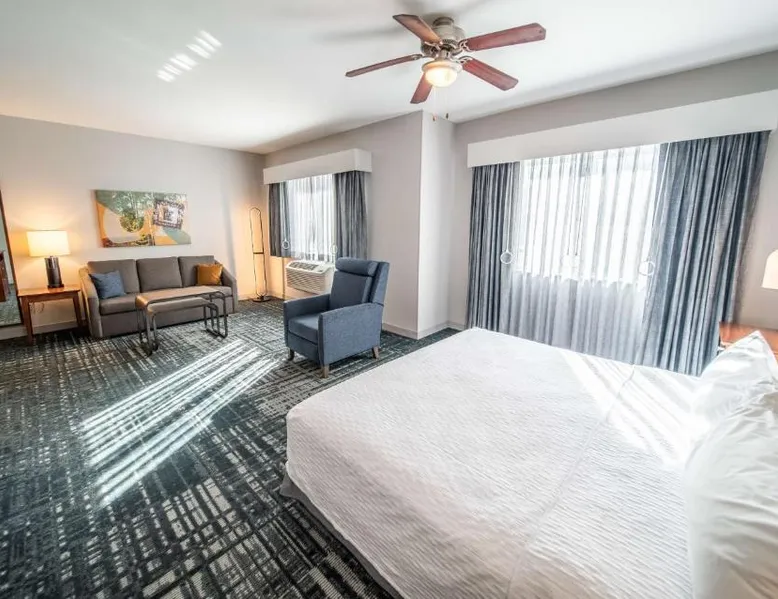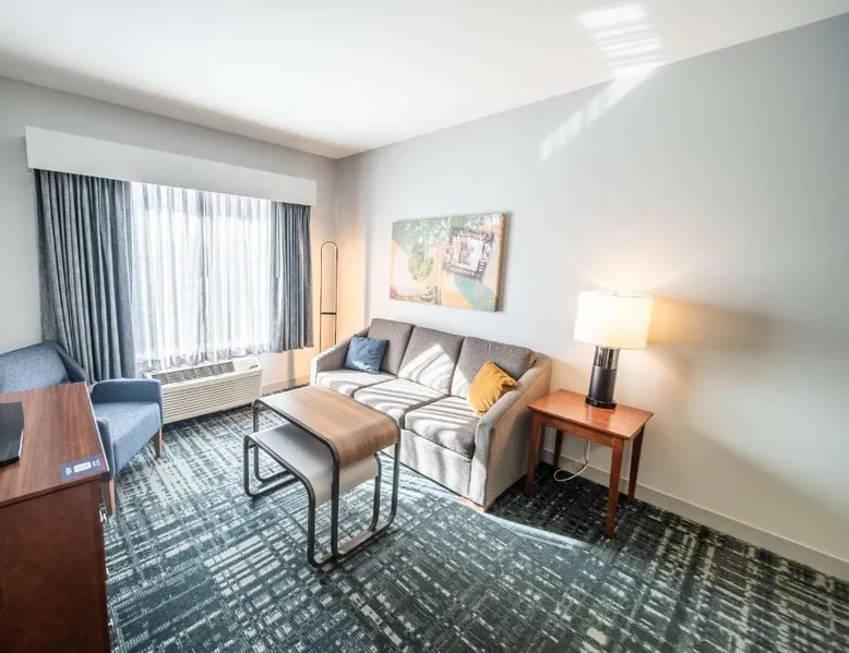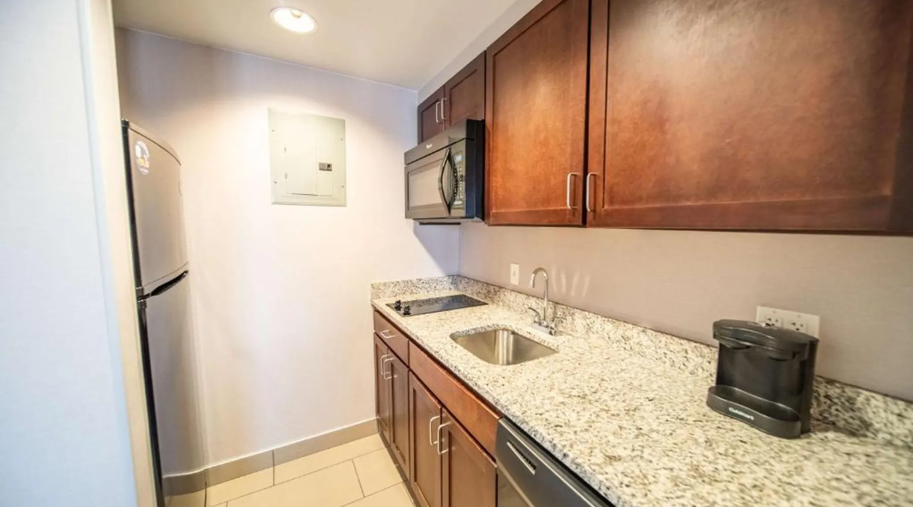 Comfortable Accommodations: Homewood Suites by Hilton Rochester Mayo Clinic-St. Marys Campus in Rochester offers family rooms with air-conditioning, kitchen facilities, and free WiFi. Each room includes a sofa bed, work desk, and TV. Leisure Facilities: Guests can enjoy a saltwater swimming pool, indoor pool, fitness center, and terrace. Additional amenities include a hot tub, outdoor fireplace, and barbecue facilities. Dining Options: The hotel provides an American buffet breakfast and a 24-hour front desk. On-site services include a lounge, minimarket, and concierge. Location and Attractions: Located 11 mi from Rochester International Airport, the property is a 17-minute walk from Plummer Building and 1.4 mi from Mayo Civic Center. Boating is available in the surroundings. Meals can be prepared in the well-fitted kitchen, which has a stovetop, a refrigerator, a dishwasher and kitchenware. The spacious air-conditioned studio features a flat-screen TV with cable channels, a tea and coffee maker, a seating area and heating. The unit has 2 beds.