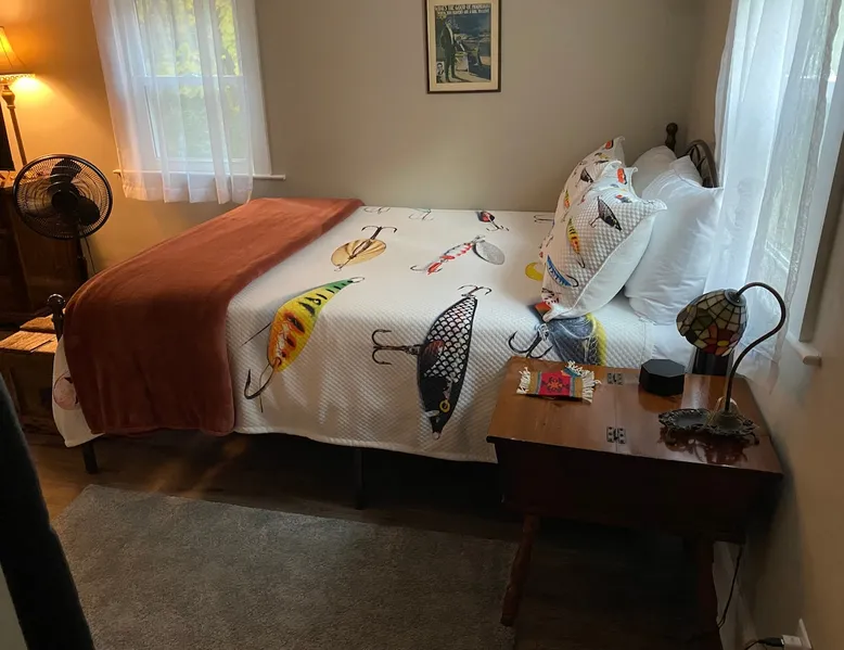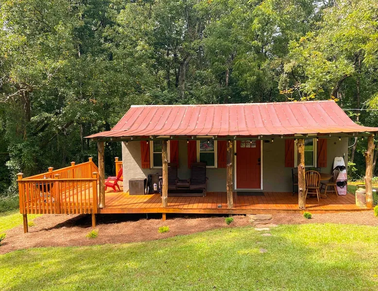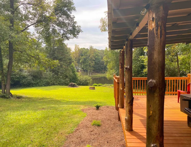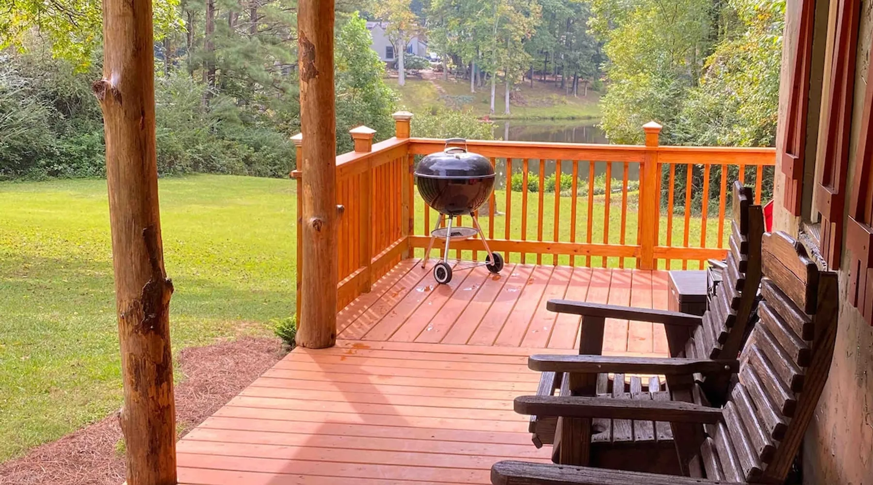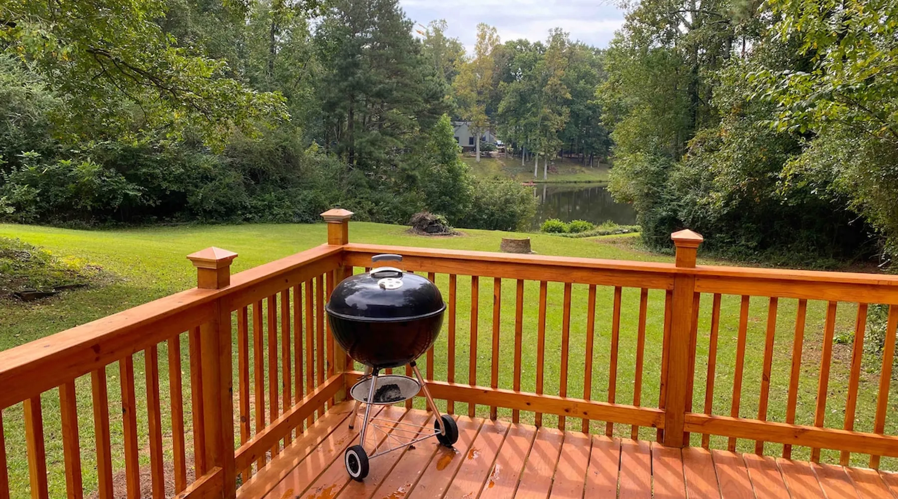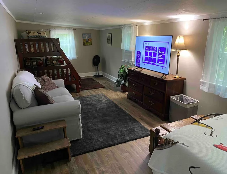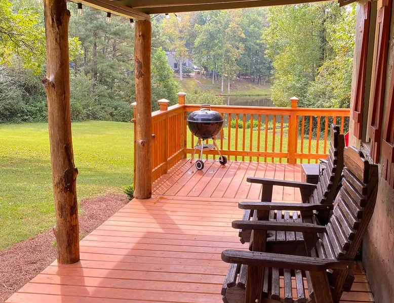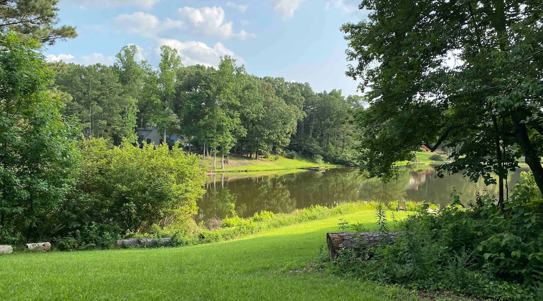 Escape to a renovated fishing cabin on a private multi-acre lakefront lot in Gwinnett, just minutes from Stone Mountain. Overlooking peaceful Lake Edwards West, you can spend your days fishing, spotting turtles and herons, or letting the kids enjoy the playground. Evenings are for gathering around the fire pit (seasonal), roasting marshmallows, and soaking in the beauty. With a private drive, ample parking, and wide-open outdoor space, it’s the perfect family retreat to relax and reconnect. The space 🏡 Inside the Cabin • Living Room: Cozy and inviting with plenty of seating, string-light accents, Roku-equipped TVs for streaming (Netflix, Hulu, STARZ, HBO Max), plus puzzles, games, DVDs, and even a record player with records for a nostalgic touch. A faux fireplace doubles as a heater in winter, with extra plug-in heaters and AC units provided for comfort year-round. • Bedrooms: One bedroom with a queen bed, one with a bunk bed, plus an air mattress for added flexibility. Fresh linens, extra blankets, night lights, and thoughtful touches make it family-friendly and relaxing. • Kitchen & Dining: Fully stocked with a stove, microwave, refrigerator, air fryer, Keurig with coffee pods, dishes, glasses, cookware, and essentials like soap, towels, and napkins. A dining space makes it easy to gather for meals. • Bathroom: Clean and practical, with fresh towels provided. 🌲 Outdoor Spaces • Covered Porch: Overlooking the lake with rocking chair and outdoor seating—perfect for coffee at sunrise or winding down at sunset. • Lakefront Fun: The 10-acre lake is stocked with fish, and we provide a few poles (though feel free to bring your favorite!). A swing sits lakeside, and you’re welcome to use our boat with a signed liability waiver. • Play & Explore: A playground for little ones, plus access to a shared older tennis court where kids can play basketball, scooter, or practice tennis. • Fire Pit: Seasonal use for roasting marshmallows and stargazing. • Parking & Privacy: Private drive with ample parking and plenty of acreage to spread out. Guest access Guests enjoy full access to the lake for fishing. While gas-powered boats aren’t permitted, a canoe with paddles is available for use once a waiver is signed. Life vests are provided inside the cabin. The playground, with swings and two slides overlooking the lake, is open year-round for children. Guests also have use of the older shared tennis court, which includes basketball hoops and space for scooters or casual play. All of the grassy areas on the property are part of your stay, offering plenty of room to spread out, explore, or relax. During burn season (October–April), you can gather around the fire pit for cozy evenings outdoors. Other things to note 🎬 Fun Fact: Filming Location Our cabin has been featured in two separate T-Pain music video projects — each filmed right here on the property! • “On This Hill” Live Performance – T-Pain Music Video available on YouTube. • “I’m So Tired” – T-Pain & Young Ca$h (Bluez Brothaz)*explicit* • Official Music Video and Behind the Scenes available on YouTube. ⸻ 📍 Recognizable Spots • “On This Hill” • Fire-pit area with the hillside backdrop • Lakefront views • “I’m So Tired” • Footage of the lake • The front of the cabin • A few seconds filmed in the back bedroom • Exterior shots featuring a view of Stone Mountain ⸻ 📷 Photos & Filming • Guests are welcome to take personal photos during their stay. • Any commercial or influencer shoots require prior approval and a separate location agreement. ⸻ 🔇 Quiet Hours Just like the film crews, we ask all guests to respect neighborhood quiet hours in the evenings.