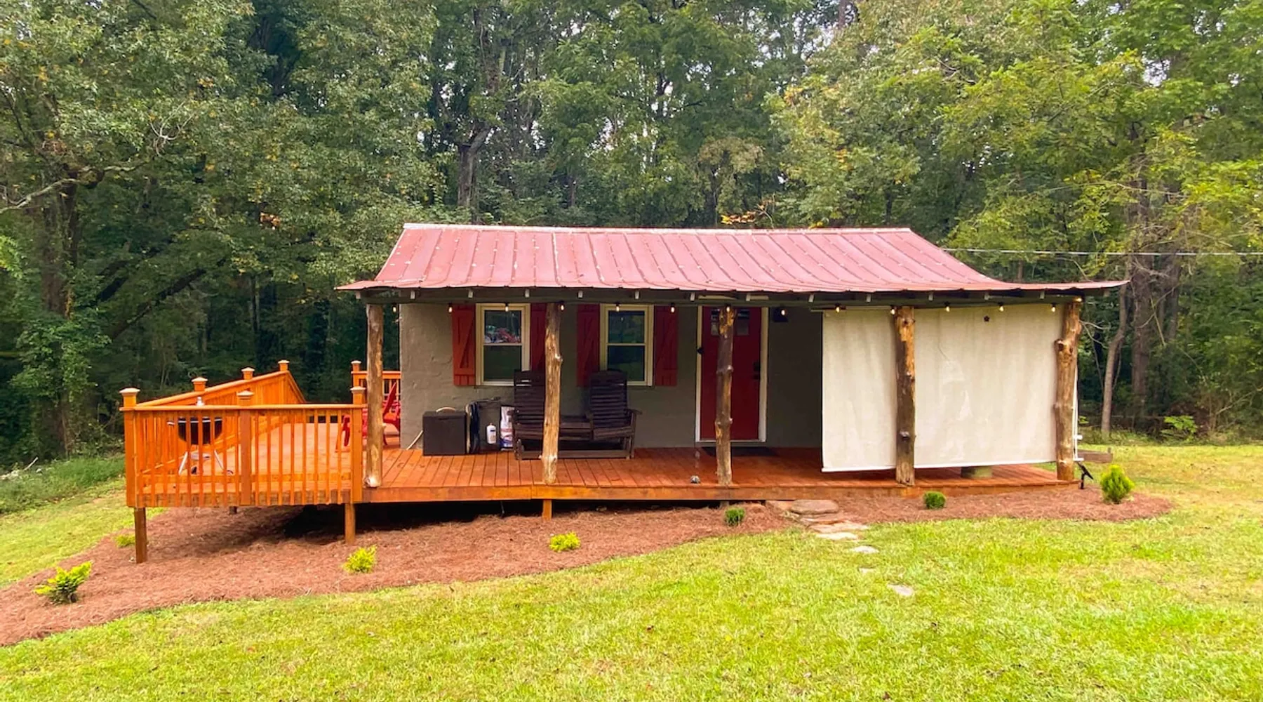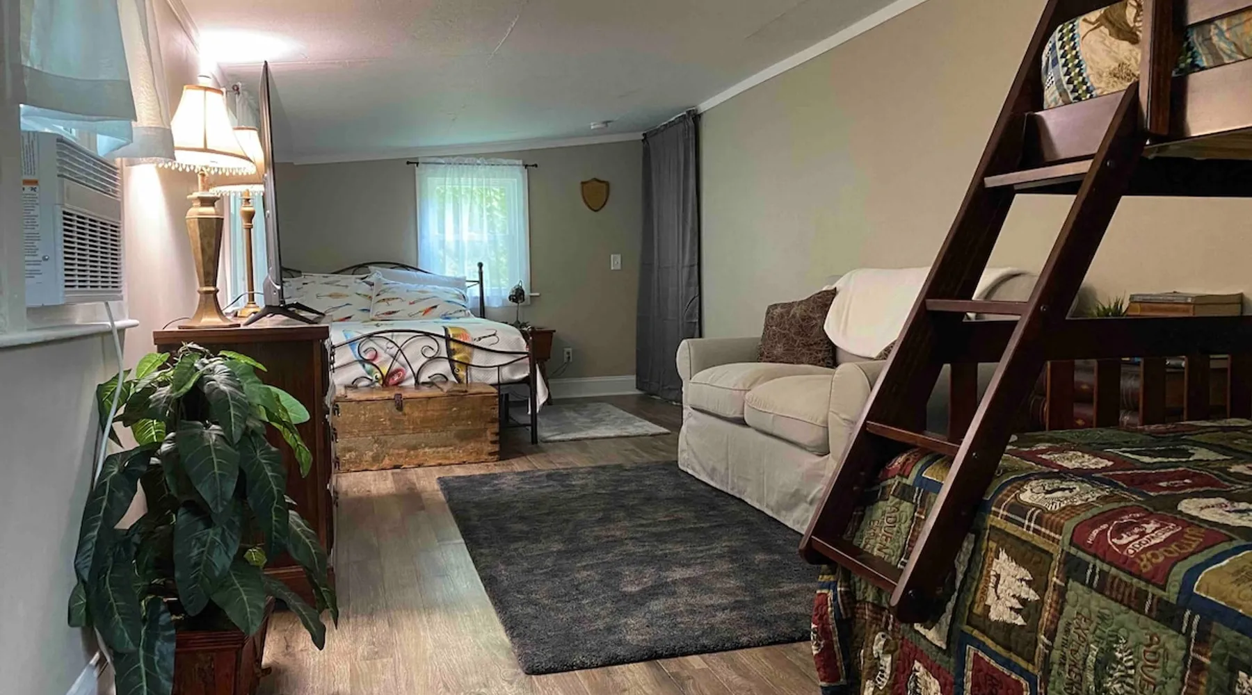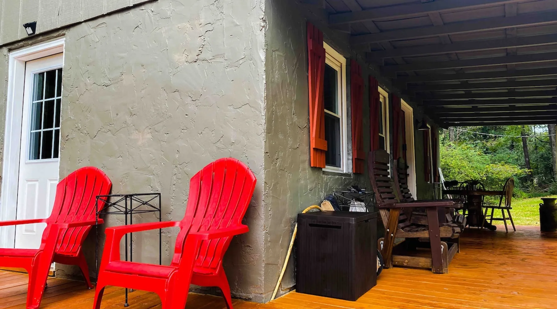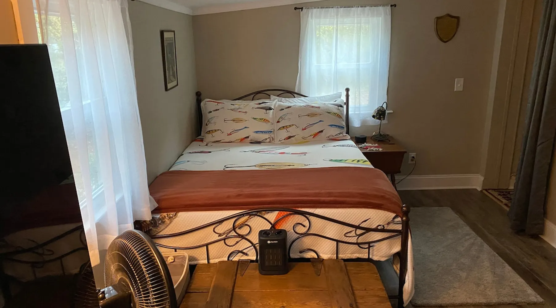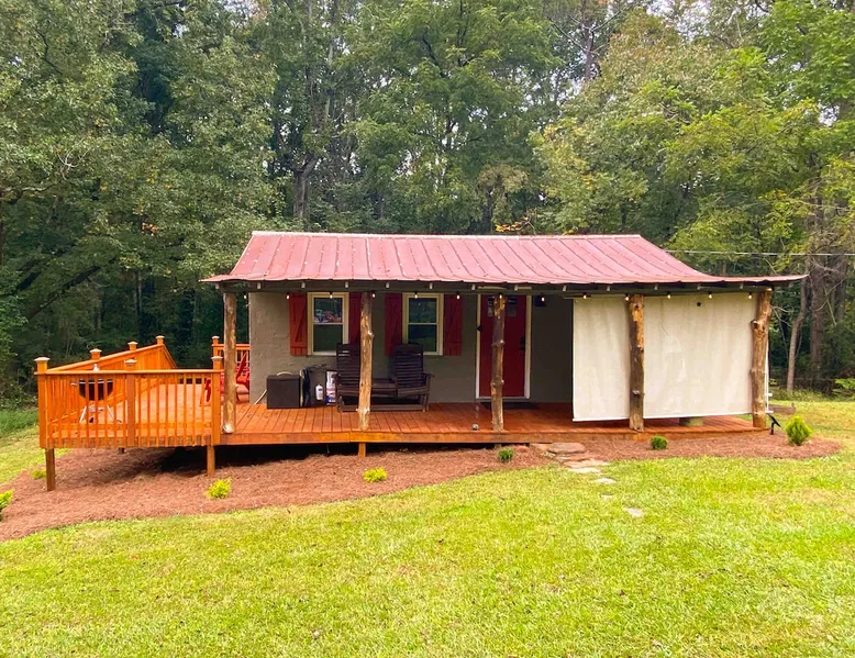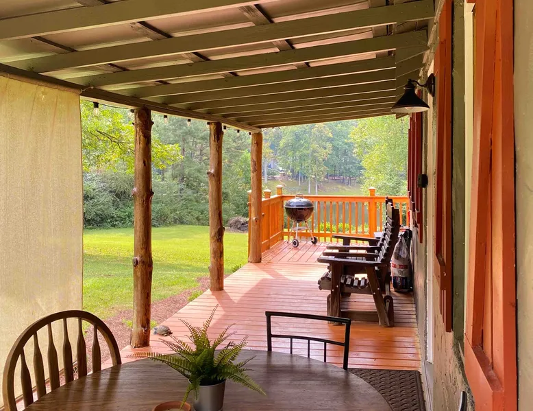 Escape to a renovated fishing cabin on a private multi-acre lakefront lot in Gwinnett, just minutes from Stone Mountain. Overlooking peaceful Lake Edwards West, you can spend your days fishing, spotting turtles and herons, or letting the kids enjoy the playground. Evenings are for gathering around the fire pit (seasonal), roasting marshmallows, and soaking in the beauty. With a private drive, ample parking, and wide-open outdoor space, it’s the perfect family retreat to relax and reconnect. The space 🏡 Inside the Cabin • Living Room: Cozy and inviting with plenty of seating, string-light accents, Roku-equipped TVs for streaming (Netflix, Hulu, STARZ, HBO Max), plus puzzles, games, DVDs, and even a record player with records for a nostalgic touch. A faux fireplace doubles as a heater in winter, with extra plug-in heaters and AC units provided for comfort year-round. • Bedrooms: One bedroom with a queen bed, one with a bunk bed, plus an air mattress for added flexibility. Fresh linens, extra blankets, night lights, and thoughtful touches make it family-friendly and relaxing. • Kitchen & Dining: Fully stocked with a stove, microwave, refrigerator, air fryer, Keurig with coffee pods, dishes, glasses, cookware, and essentials like soap, towels, and napkins. A dining space makes it easy to gather for meals. • Bathroom: Clean and practical, with fresh towels provided. 🌲 Outdoor Spaces • Covered Porch: Overlooking the lake with rocking chair and outdoor seating—perfect for coffee at sunrise or winding down at sunset. • Lakefront Fun: The 10-acre lake is stocked with fish, and we provide a few poles (though feel free to bring your favorite!). A swing sits lakeside, and you’re welcome to use our boat with a signed liability waiver. • Play & Explore: A playground for little ones, plus access to a shared older tennis court where kids can play basketball, scooter, or practice tennis. • Fire Pit: Seasonal use for roasting marshmallows and stargazing. • Parking & Privacy: Private drive with ample parking and plenty of acreage to spread out. Guest access Guests enjoy full access to the lake for fishing. While gas-powered boats aren’t permitted, a canoe with paddles is available for use once a waiver is signed. Life vests are provided inside the cabin. The playground, with swings and two slides overlooking the lake, is open year-round for children. Guests also have use of the older shared tennis court, which includes basketball hoops and space for scooters or casual play. All of the grassy areas on the property are part of your stay, offering plenty of room to spread out, explore, or relax. During burn season (October–April), you can gather around the fire pit for cozy evenings outdoors. Other things to note 🎬 Fun Fact: Filming Location Our cabin has been featured in two separate T-Pain music video projects — each filmed right here on the property! • “On This Hill” Live Performance – T-Pain Music Video available on YouTube. • “I’m So Tired” – T-Pain & Young Ca$h (Bluez Brothaz)*explicit* • Official Music Video and Behind the Scenes available on YouTube. ⸻ 📍 Recognizable Spots • “On This Hill” • Fire-pit area with the hillside backdrop • Lakefront views • “I’m So Tired” • Footage of the lake • The front of the cabin • A few seconds filmed in the back bedroom • Exterior shots featuring a view of Stone Mountain ⸻ 📷 Photos & Filming • Guests are welcome to take personal photos during their stay. • Any commercial or influencer shoots require prior approval and a separate location agreement. ⸻ 🔇 Quiet Hours Just like the film crews, we ask all guests to respect neighborhood quiet hours in the evenings.