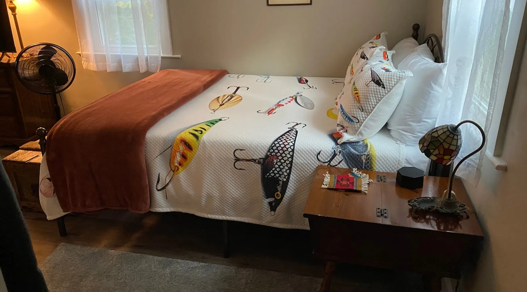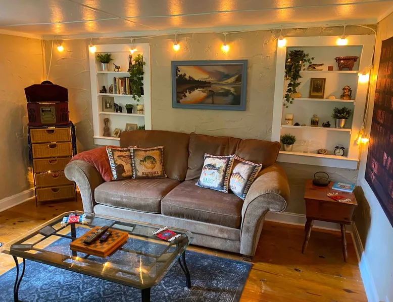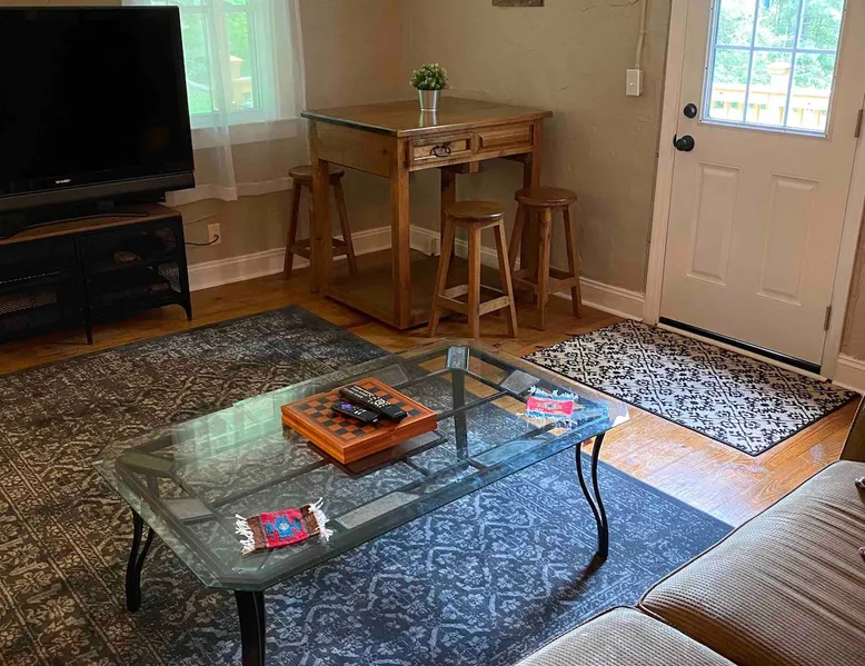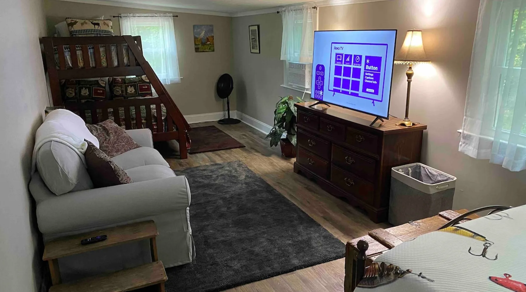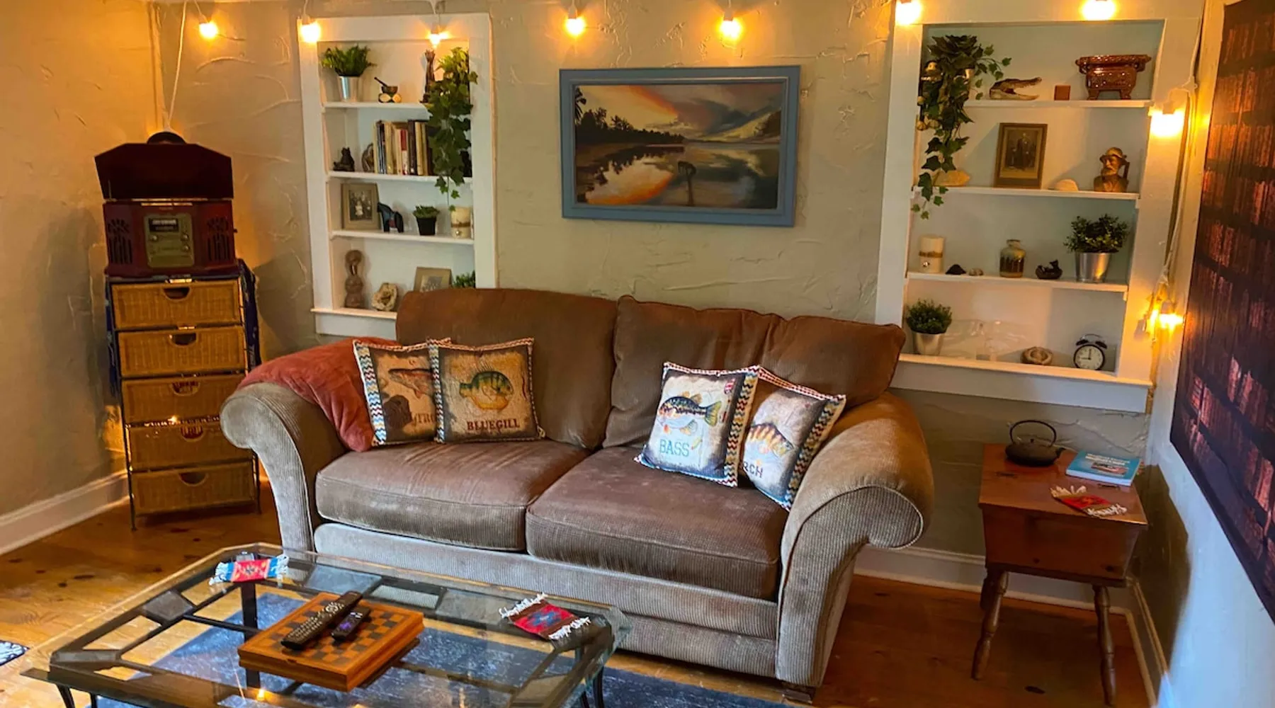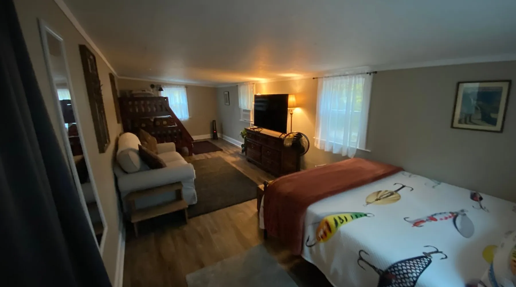 Escape to a renovated fishing cabin on a private multi-acre lakefront lot in Gwinnett, just minutes from Stone Mountain. Overlooking peaceful Lake Edwards West, you can spend your days fishing, spotting turtles and herons, or letting the kids enjoy the playground. Evenings are for gathering around the fire pit (seasonal), roasting marshmallows, and soaking in the beauty. With a private drive, ample parking, and wide-open outdoor space, it’s the perfect family retreat to relax and reconnect. The space 🏡 Inside the Cabin • Living Room: Cozy and inviting with plenty of seating, string-light accents, Roku-equipped TVs for streaming (Netflix, Hulu, STARZ, HBO Max), plus puzzles, games, DVDs, and even a record player with records for a nostalgic touch. A faux fireplace doubles as a heater in winter, with extra plug-in heaters and AC units provided for comfort year-round. • Bedrooms: One bedroom with a queen bed, one with a bunk bed, plus an air mattress for added flexibility. Fresh linens, extra blankets, night lights, and thoughtful touches make it family-friendly and relaxing. • Kitchen & Dining: Fully stocked with a stove, microwave, refrigerator, air fryer, Keurig with coffee pods, dishes, glasses, cookware, and essentials like soap, towels, and napkins. A dining space makes it easy to gather for meals. • Bathroom: Clean and practical, with fresh towels provided. 🌲 Outdoor Spaces • Covered Porch: Overlooking the lake with rocking chair and outdoor seating—perfect for coffee at sunrise or winding down at sunset. • Lakefront Fun: The 10-acre lake is stocked with fish, and we provide a few poles (though feel free to bring your favorite!). A swing sits lakeside, and you’re welcome to use our boat with a signed liability waiver. • Play & Explore: A playground for little ones, plus access to a shared older tennis court where kids can play basketball, scooter, or practice tennis. • Fire Pit: Seasonal use for roasting marshmallows and stargazing. • Parking & Privacy: Private drive with ample parking and plenty of acreage to spread out. Guest access Guests enjoy full access to the lake for fishing. While gas-powered boats aren’t permitted, a canoe with paddles is available for use once a waiver is signed. Life vests are provided inside the cabin. The playground, with swings and two slides overlooking the lake, is open year-round for children. Guests also have use of the older shared tennis court, which includes basketball hoops and space for scooters or casual play. All of the grassy areas on the property are part of your stay, offering plenty of room to spread out, explore, or relax. During burn season (October–April), you can gather around the fire pit for cozy evenings outdoors. Other things to note 🎬 Fun Fact: Filming Location Our cabin has been featured in two separate T-Pain music video projects — each filmed right here on the property! • “On This Hill” Live Performance – T-Pain Music Video available on YouTube. • “I’m So Tired” – T-Pain & Young Ca$h (Bluez Brothaz)*explicit* • Official Music Video and Behind the Scenes available on YouTube. ⸻ 📍 Recognizable Spots • “On This Hill” • Fire-pit area with the hillside backdrop • Lakefront views • “I’m So Tired” • Footage of the lake • The front of the cabin • A few seconds filmed in the back bedroom • Exterior shots featuring a view of Stone Mountain ⸻ 📷 Photos & Filming • Guests are welcome to take personal photos during their stay. • Any commercial or influencer shoots require prior approval and a separate location agreement. ⸻ 🔇 Quiet Hours Just like the film crews, we ask all guests to respect neighborhood quiet hours in the evenings.
