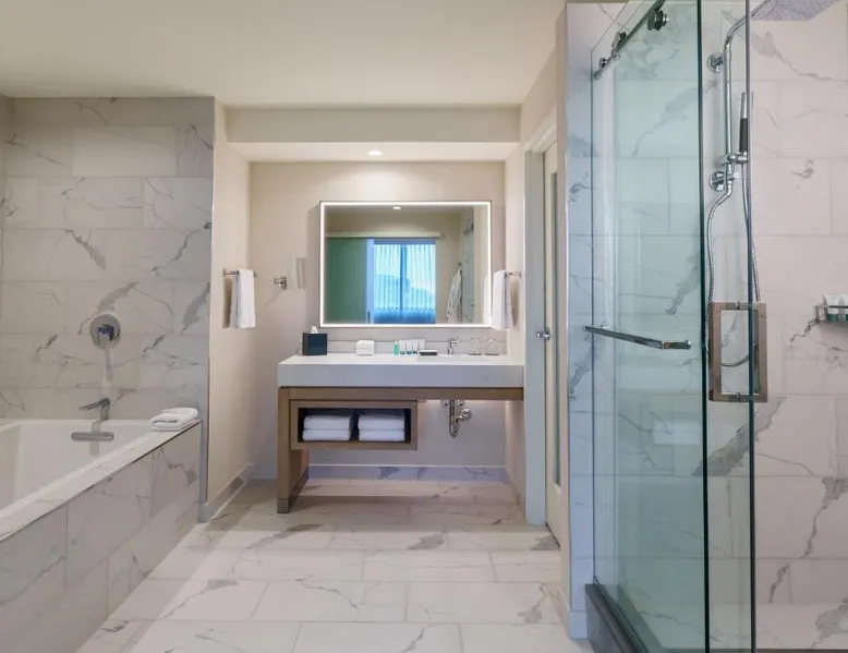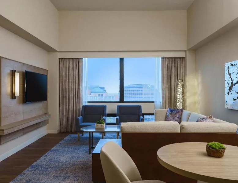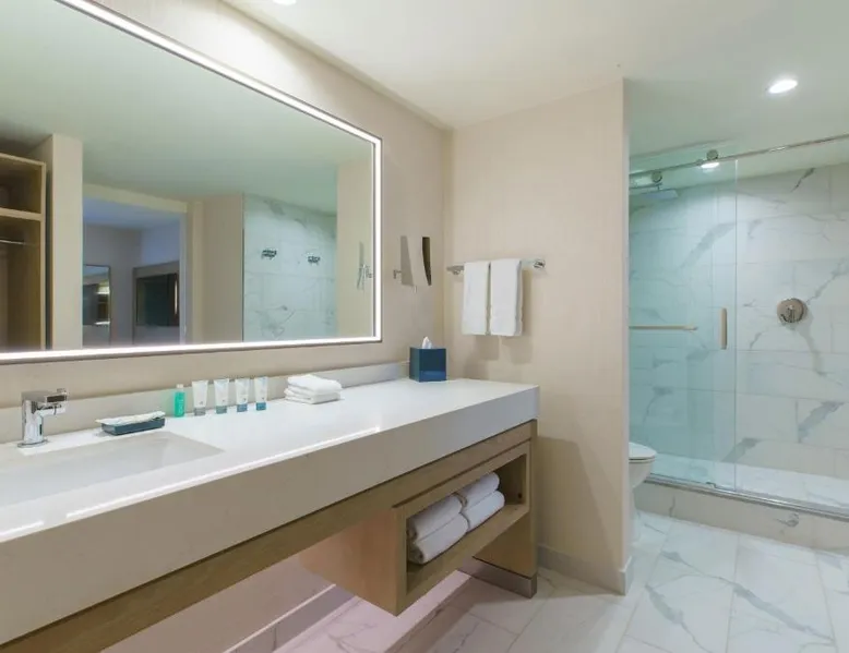 Just 1 mile away from Donald E. Stephens Convention Center and O’Hare International Airport, this Rosemont hotel offers complimentary airport shuttle services, on-site dining and contemporary guest rooms with free WiFi. Every room at The Westin O’Hare provides a 42-inch flat-screen HDTV and a large work desk with an ergonomic chair. A small refrigerator and coffee maker with complimentary Starbucks coffee is also included. Benchmark Gastropub offers seasonal selections made with regional, fresh ingredients for breakfast, lunch and dinner. The hotel lobby includes a Starbucks Coffee shop, offering an array of freshly ground coffees, sandwiches, snacks and pastries. In-room dining services are also available for guest convenience. Guests can work out at the modern fitness center located on-site. A 24-hour business center and over 50,000 square feet of flexible meeting space are available at the hotel. The Rosemont Blue Line train stop is a 2-minute drive away, offering easy access to the famed shopping, dining and entertainment in downtown Chicago. Allstate Arena and Fashion Outlets of Chicago are both a 5-minute drive away from the hotel. The spacious double room provides air conditioning, a tea and coffee maker, as well as a private bathroom featuring a walk-in shower and a bath or a shower. The double room features a seating area, a wardrobe, a safe deposit box, a sofa and a flat-screen TV with streaming services. The unit offers 2 beds.