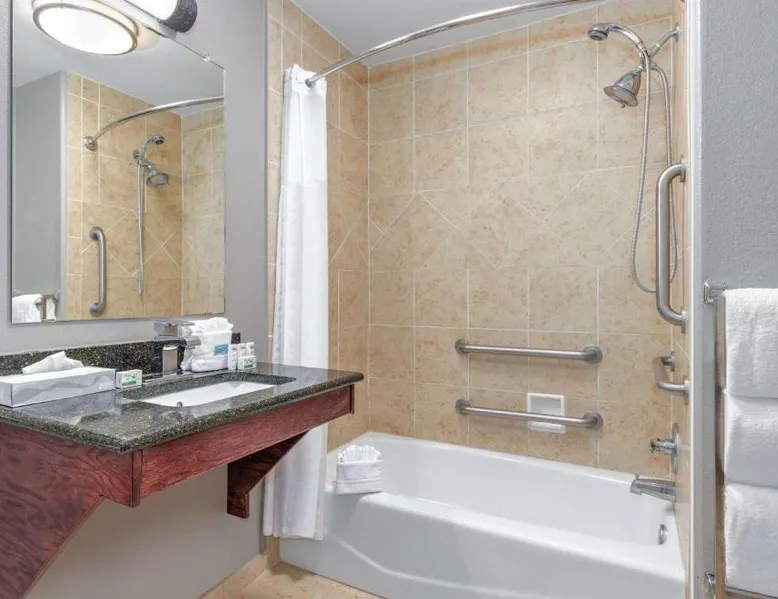 Only 8 miles from Baylor University, this Waco hotel includes an indoor swimming pool and hot tub. Each guest room comes equipped with a 32-inch flat-screen cable TV. Free Wi-Fi is provided in every room at La Quinta Inn & Suites Woodway – Waco South. A microwave and refrigerator are included for additional guest convenience. Waffles, fresh fruit, cereal, and more are served as part of the daily continental breakfast at Woodway – Waco South La Quinta Inn & Suites. Guests can enjoy the on-site fitness center and laundromat facilities that are also provided. The Dr. Pepper Museum is 7 miles away. The Texas Ranger Hall of Fame can be reached in a 15-minute drive. Providing free toiletries, this apartment includes a private bathroom with a bath, a shower and a hairdryer. Guests can make meals in the kitchenette that is equipped with a stovetop, a refrigerator, kitchenware and a microwave. The apartment provides air conditioning, a private entrance, a tea and coffee maker, a wardrobe, as well as a flat-screen TV with cable channels.
