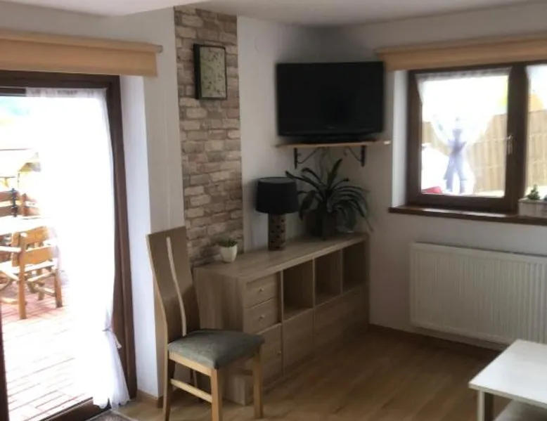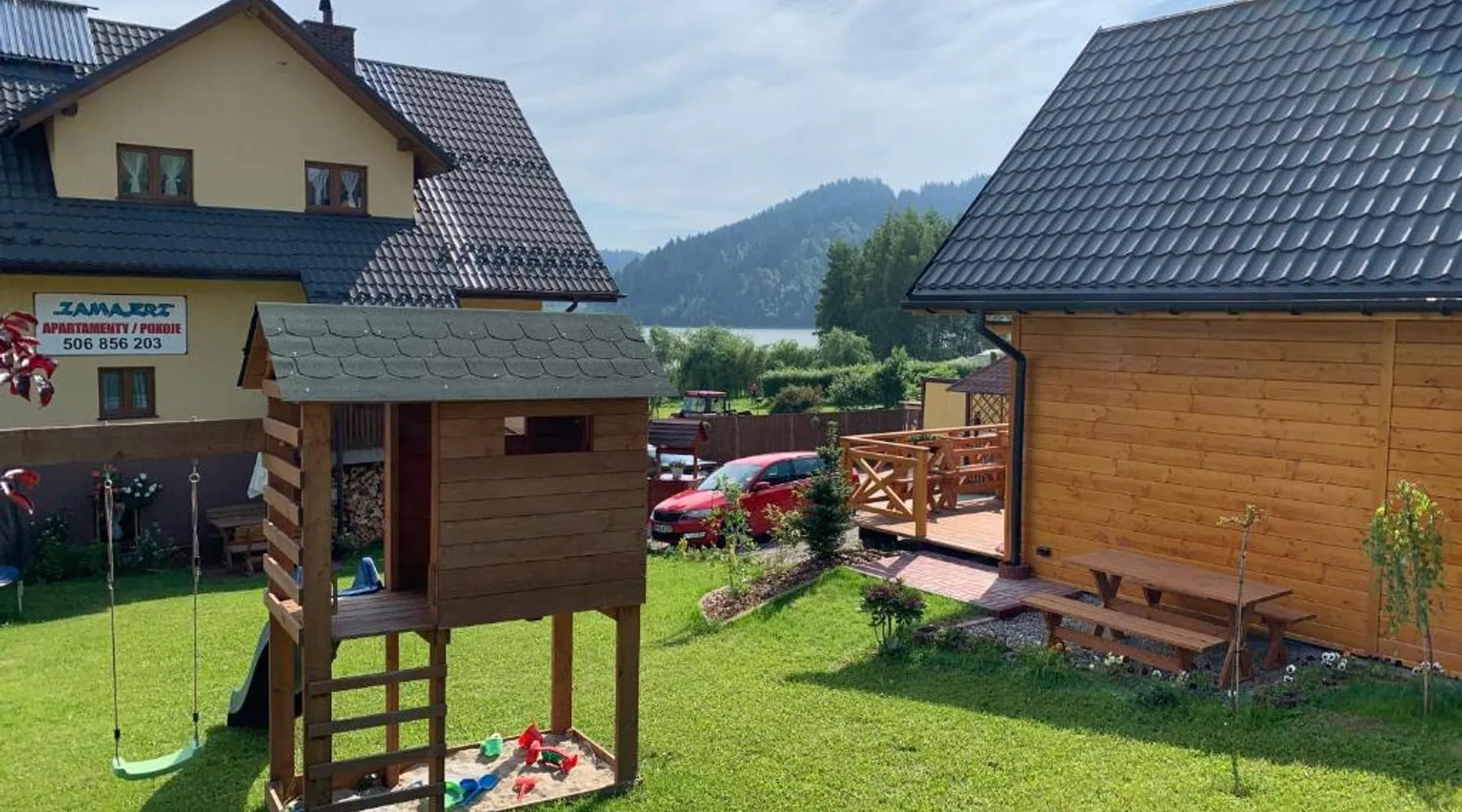 Beachfront and Garden: Zamajerz Nad Zalewem in Niedzica offers direct beachfront access and a beautiful garden. Guests can relax on the terrace or balcony, enjoying stunning lake views. Comfortable Accommodations: The holiday park features family rooms with kitchenettes, private bathrooms, and modern amenities. Each unit includes a dining area, sofa bed, and outdoor furniture, ensuring a comfortable stay. Leisure Facilities: Guests can enjoy an outdoor play area, children's playground, and barbecue facilities. Additional amenities include a picnic area, outdoor seating, and free WiFi throughout the property. Local Attractions: Niedzica Castle is an 8-minute walk away, while Treetop Walk and Bania Thermal Baths are 14 mi distant. Boating and skiing are available in the surrounding area. Highly rated for its friendly host and scenic lakes. The fireplace is the standout feature of this chalet. This chalet comes with 1 living room, 2 separate bedrooms and 2 bathrooms with a walk-in shower and a hairdryer. Guests will find a stovetop, a refrigerator, a dishwasher and kitchenware in the fully equipped kitchen. The chalet also includes a barbecue. Boasting a terrace with lake views, this chalet also features a washing machine and a flat-screen TV. The unit has 5 beds.