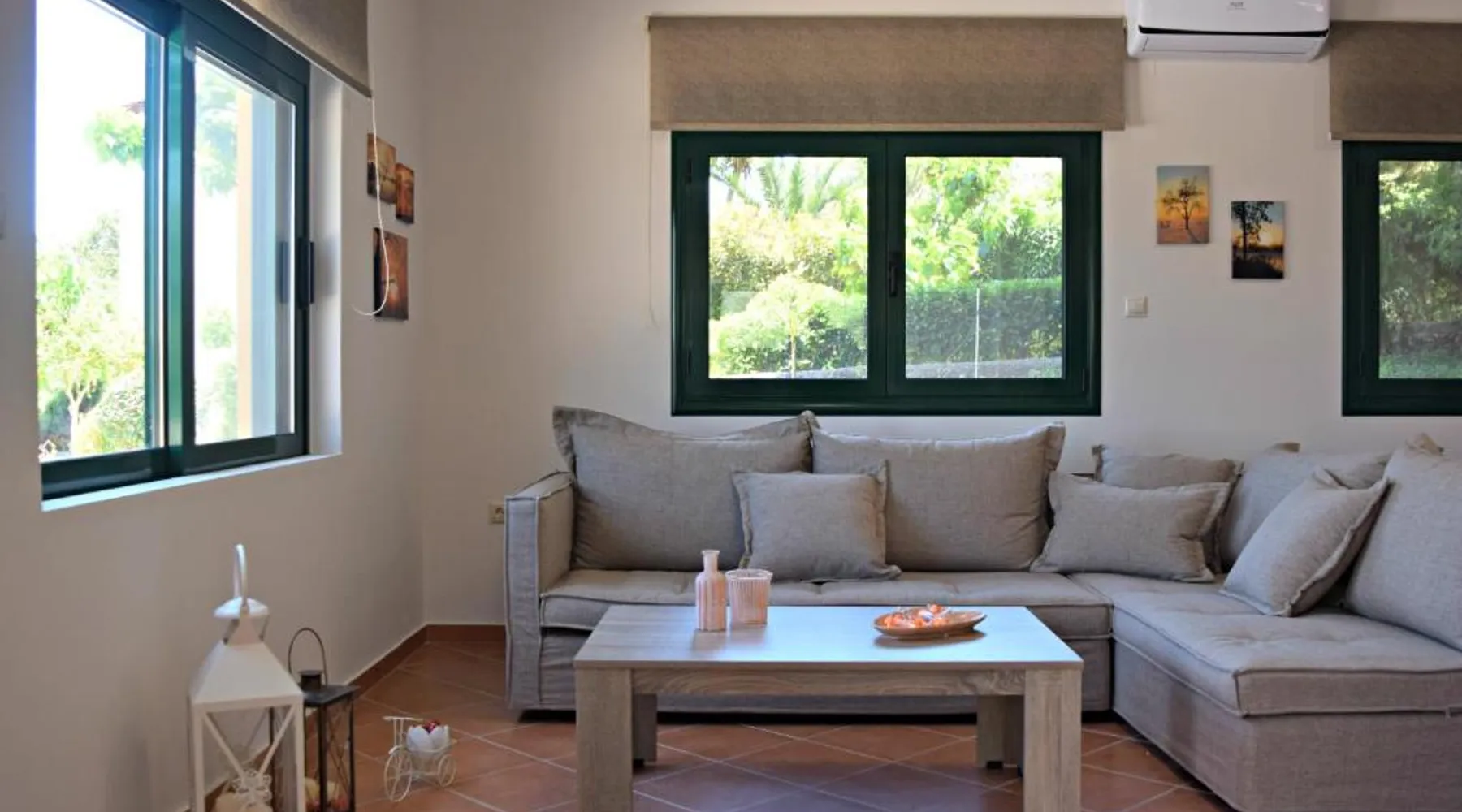 Elegant Accommodations: Aspalathos Villas in Fílippos offers a villa with a swimming pool, sun terrace, and lush garden. Guests enjoy free WiFi, air-conditioning, and private check-in and check-out services. Outdoor Amenities: The property features outdoor seating, barbecue facilities, and a pool with stunning views. Additional amenities include a balcony, terrace, and free on-site private parking. Local Attractions: Located 27 mi from Chania International Airport, the villa is near the Archaeological Museum of Rethymno (18 mi) and the Ancient City of Aptera (14 mi). Guests appreciate the scenic garden and pool views. This villa features a pool with a view and a fireplace. This villa features 1 living room, 2 separate bedrooms and 1 bathroom with a bath and free toiletries. Guests will find a stovetop, a refrigerator, kitchenware and an oven in the well-fitted kitchen. The villa also comes with a barbecue. The air-conditioned villa features a flat-screen TV with cable channels, a washing machine, soundproof walls, a tea and coffee maker as well as garden views. The unit has 4 beds.