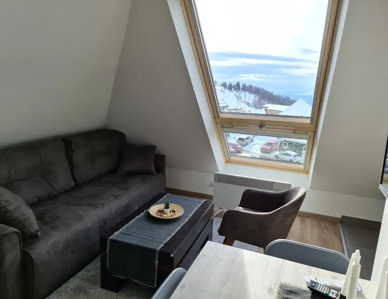 Comfortable Accommodations: Gabi Apartments Kopaonik in Kopaonik offers a 4-star apartment with a garden, terrace, bar, and free WiFi. Guests enjoy mountain views and a balcony for relaxation. Modern Amenities: The apartment features a fully equipped kitchen, washing machine, private bathroom, and a dining area. Additional amenities include a sofa bed, TV, and a seating area. Convenient Location: Located 70 mi from Morava Airport, the property is highly rated by guests. Reception staff speak English and Serbian, ensuring a pleasant stay. This spacious apartment includes 1 living room, 3 separate bedrooms and 1 bathroom with a shower and a hairdryer. The well-fitted kitchen has a stovetop, a refrigerator, a dishwasher and kitchenware. Boasting a balcony with mountain views, this apartment also offers a washing machine and a flat-screen TV with cable channels. The unit has 6 beds.