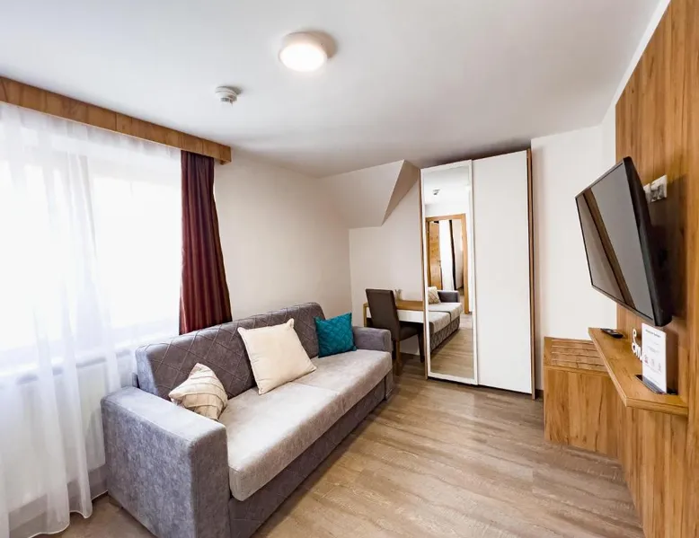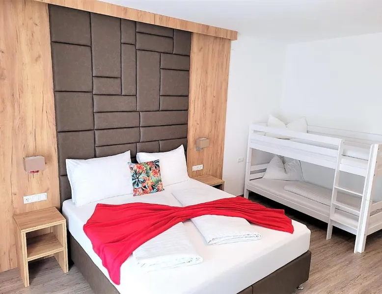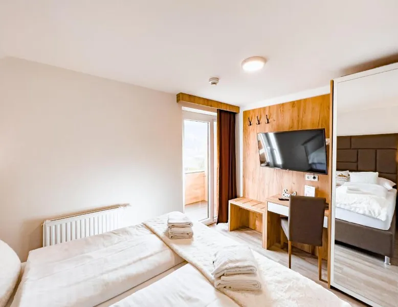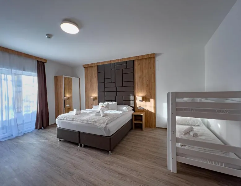 The Sylpaulerhof Aparthotel is located in the center of Sankt Michael im Lungau, 328 feet from the stop of the free ski bus. It offers a sauna and free WiFi. All rooms have a private bathroom and come equipped with a flat-screen cable TV. Most of them have a terrace or a balcony. You can also make use of the Alpine-style shared living room. There is a sauna and infrared cabin. During summer the property offers reduced green fees for the golf course. Guests can also relax in the garden. The free ski bus goes to the ski areas of St.Michael, Mauterndorf, Katschberg, Fanningberg and Obertauern. The Murradweg cycling path is only 1640 feet away from the Sylpaulerhof Aparthotel. Maps for mountain-bike tours are available at the reception. A supermarket, a butcher, a bakery, restaurants, a bar and a bank are all just 328 feet away. Golf Club Lungau is 2.5 mi away and a public outdoor swimming pool lies within a 5-minute walk. Please note that room cleaning is on request and is also subject to charges. This apartment features a spacious entrance area, a south-facing balcony, a double room with a TV, a double room with a TV, a shower, and a toilet, a room with a bunk bed, a bathroom with washbasin, shower and toilet, and a kitchen with a living area.