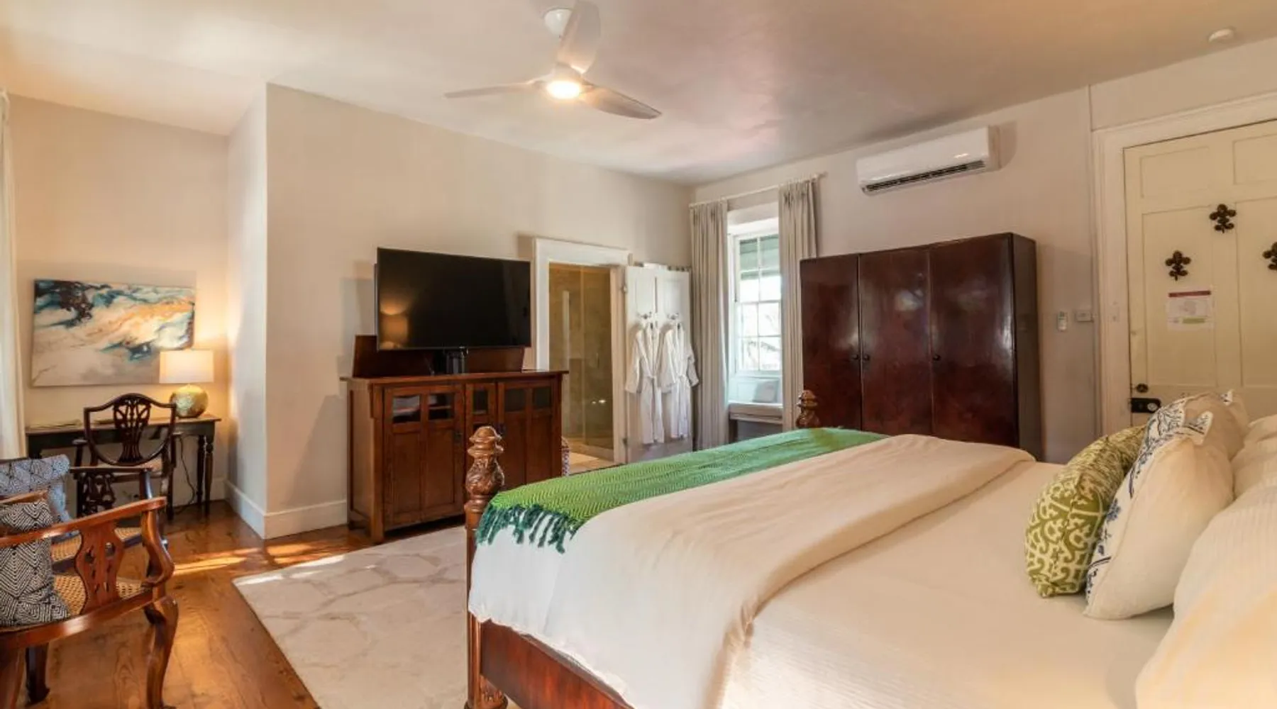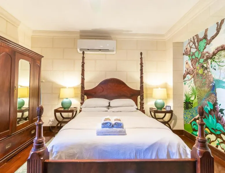 Elegant Accommodations: Sweetfield Manor in Bridgetown offers a 5-star inn experience with spa facilities, a sun terrace, and a lush garden. Guests enjoy a year-round outdoor swimming pool, free WiFi, and a family-friendly restaurant serving international and Caribbean cuisines. Comfortable Amenities: Rooms feature air-conditioning, private bathrooms, bathrobes, and sea views. Additional amenities include balconies, terraces, and outdoor dining areas. The property provides free on-site private parking, yoga classes, and a tour desk. Dining Experience: The restaurant offers dinner and high tea with halal, vegetarian, vegan, and gluten-free options. Outdoor seating areas and family rooms enhance the dining experience. Convenient Location: Located 6.8 mi from Grantley Adams International Airport and near attractions such as Brownes (1.1 mi) and Rockley Beach (1.6 mi). Guests appreciate the attentive staff and comfortable rooms. The spacious double room offers air conditioning, a tea and coffee maker, a terrace with garden views as well as a private bathroom boasting a shower. The unit has 1 bed.