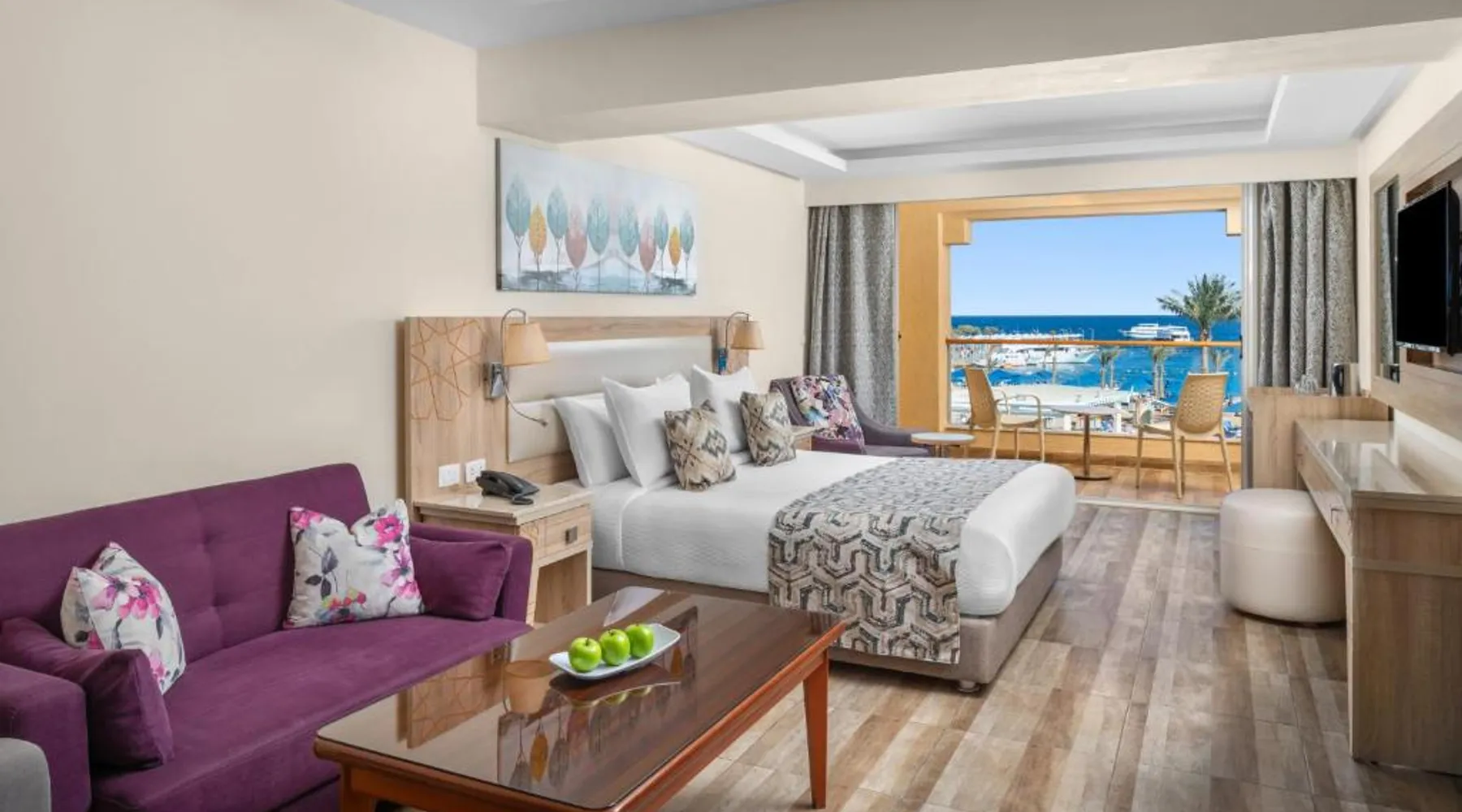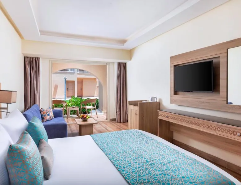 Located on the sea front with private sandy beach, this 4-star resort features an Aqua Park with 11 outdoor swimming pools including 6 heated pools.and spacious rooms with a balcony and 9 Bars & themed Moroccan restaurant. It includes a spa and a diving center. Hotels base on all-inclusive concept. Hotel offer Aqua Park – kids Aqua Park on site. Hotel offers WIFI in the entire property. All rooms feature balcony or terrace a safety box and mini-bar. 11 Outdoor pools (5 pools are heated during the winter time - 4 for adults and 1 for kids). 2 Water slides for adults and 6 for kids. One outdoor whirlpool (only for adults) Restaurants Asian Restaurant “L`Asiatique” German, vegetarian kitchen with Mexican corner “Le Marche” Italian Restaurant “ Culina” Mediterranean Restaurant (A La Carte) Overlooking the Red Sea or the landscaped gardens, Beach Albatros air-conditioned rooms have a satellite TV and a mini-bar. Each comes with a private bathroom with toiletries and a hairdryer. Snorkeling and kayaking are possible at the beach. It also has a volleyball court. Beach Albatros offers a tennis court and a mini-golf course. Guests can play billiards or darts in the games room. In the evening, guests can enjoy karaoke or dance in the nightclub. Hurghada Airport is only 5.6 mi from the hotel, and the city center is a 20 minutes' drive away. Free on-site car parking is available at Beach Albatros Aqua Park - Hurghada. This air-conditioned room features a mini-bar, a satellite TV and a private balcony or terrace with a sea view. The private bathroom comes with a shower, and hairdryer. Soft drinks and upon arrival, the room also comes with a kettle, and a safe deposit box.