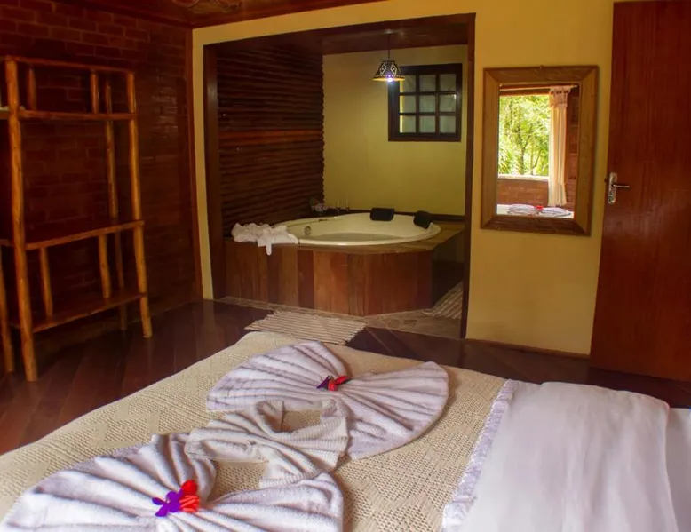 Pousada da Carmem in Maromba is located 1.9 mi from the beautiful Véu de Noiva and Do Escorrega waterfalls. Featuring a patio with garden views, rooms provide a private bathroom fitted with a shower. Amenities include a TV, and some units also have a fireplace and a mini-bar. Poção Well, another popular attraction in the area, is 0.9 mi from Pousada da Carmen. The city of Resende is located 20 mi away, while Maromba square is only 656 feet from the property. Guests will have a special experience as this double room features a hot tub and a fireplace. The spacious double room offers a mini-bar, a wardrobe, as well as a private bathroom featuring a bath and a shower. This double room features parquet floors, a tiled floor, a TV and garden views. The unit offers 1 bed.