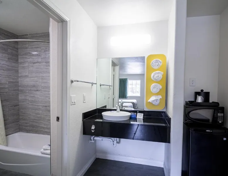 Comfortable Accommodations: Fisherman's Cove Inn in Monterey offers family rooms with air-conditioning, private bathrooms, and free WiFi. Each room includes a coffee machine, refrigerator, and TV. Dining Experience: The family-friendly restaurant serves Vietnamese cuisine with brunch, lunch, and dinner. Guests can enjoy traditional, modern, and romantic ambiances. Convenient Location: Located 3.1 mi from Monterey Regional Airport, the motel is near Window on the Bay Beach (1.1 mi) and Monterey Museum of Art (19-minute walk). Hiking, boating, and scuba diving are available in the surroundings. This room includes an LCD TV, wood-effect floors, a private bathroom with granite counter-tops and a raised sink, a microwave and a mini refrigerator.