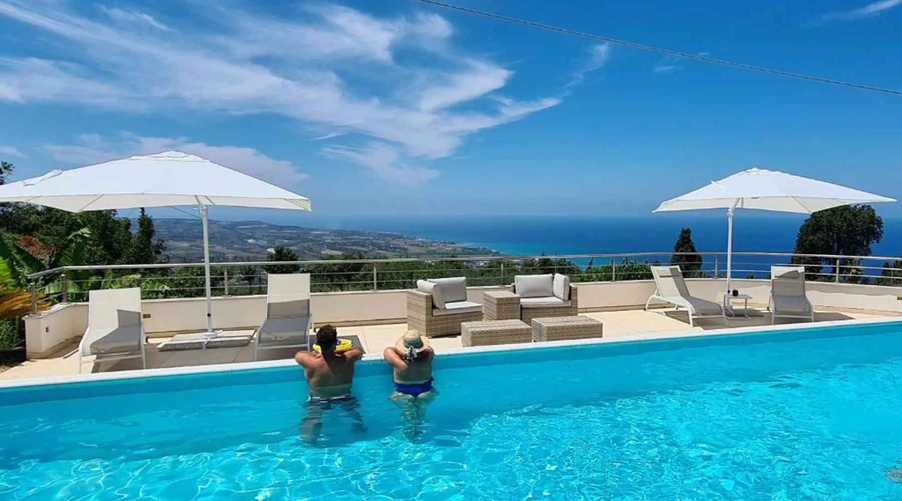 Elegant Accommodations: Villa Zufrò in Vibo Valentia offers a bed and breakfast experience with a swimming pool, sun terrace, and lush garden. Guests enjoy free WiFi, a bar, and an outdoor seating area. Comfortable Amenities: The property features private check-in and check-out, a lounge, and housekeeping services. Additional amenities include a pool bar, barbecue facilities, and free on-site parking. Prime Location: Located 23 mi from Lamezia Terme International Airport, Villa Zufrò is near attractions such as Murat Castle (4.3 mi) and Tropea Marina (16 mi). Guests appreciate the scenic views and excellent breakfast. This double room features a pool with a view. This air-conditioned double room has a desk, an outdoor dining area, sea views and a private bathroom. The unit has 1 bed.