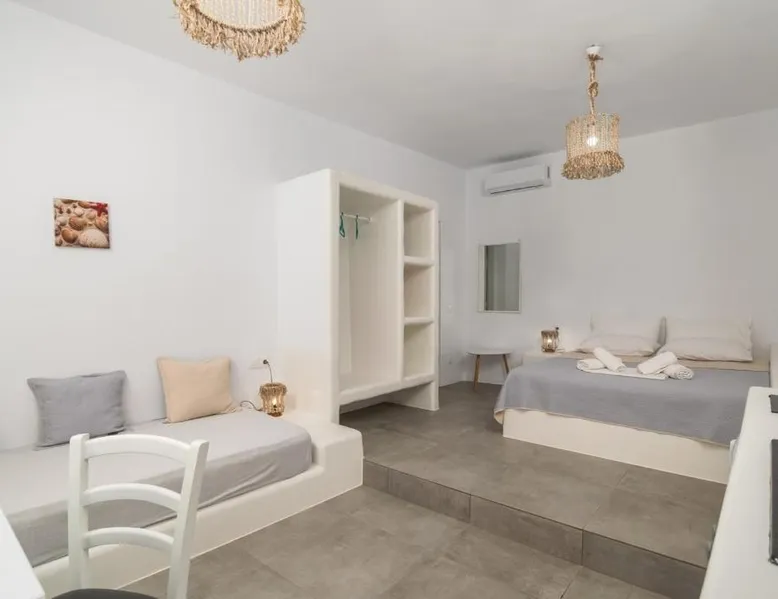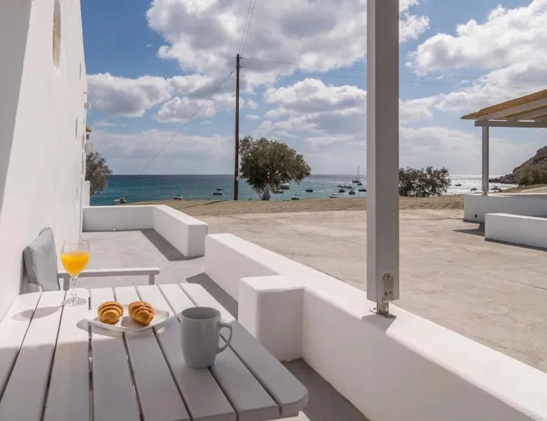 Beachfront Location: Aqua Bay Agia Kyriaki in Agia Kyriaki Milos offers direct beachfront access and stunning sea views. Guests enjoy free WiFi throughout the property. Comfortable Accommodations: Rooms feature air-conditioning, private bathrooms, terraces, and patios. Additional amenities include tea and coffee makers, hairdryers, seating areas, showers, and electric kettles. Convenient Facilities: The bed and breakfast provides free on-site private parking, a terrace, and a patio. Each room includes a TV and a bath. Nearby Attractions: Ayia Kyriaki Beach is just a few steps away. Milos Island National Airport is 2.5 mi from the property. Points of interest include the Sulfur Mine (5 mi) and the Catacombs of Milos (8.7 mi). Guest Satisfaction: Highly rated for its beachfront access, convenient location, and room cleanliness. Featuring a private entrance, this air-conditioned suite consists of 1 bedroom and 1 bathroom with a bath and a shower. Boasting a terrace with sea views, this suite also provides a tea and coffee maker and a flat-screen TV. The unit offers 1 bed.