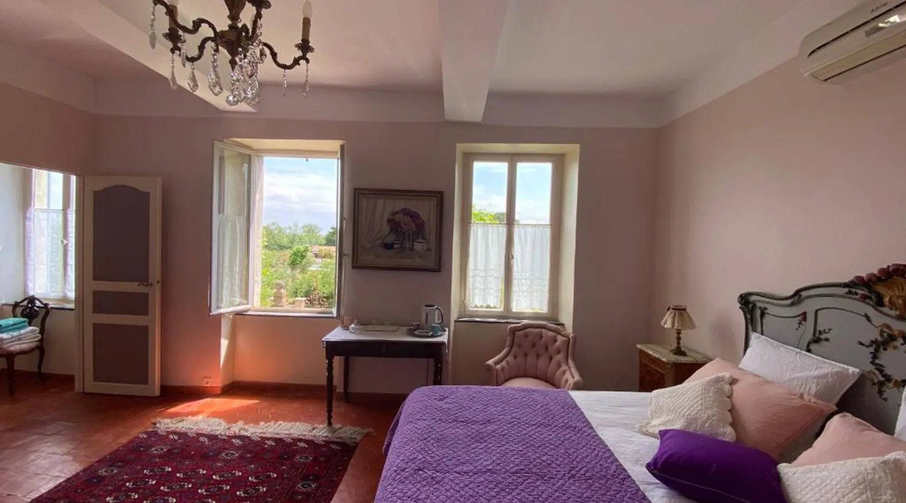 Historic Setting: Le Relais d'Affiac in Peyriac-Minervois offers a unique stay within a historic building. Guests enjoy garden and pool views, complemented by an inner courtyard. Exceptional Facilities: The property features a swimming pool with a view, a lush garden, and a terrace. Free WiFi is available throughout the premises. Comfortable Accommodations: Rooms include air-conditioning, private bathrooms, tea and coffee makers, and work desks. Additional amenities include baths, sofas, and garden views. Convenient Location: Located 18 mi from Carcassonne Airport, the property is near attractions such as Abbaye de Fontfroide (29 mi) and Grotte de Limousis (12 mi). Free on-site private parking is provided. Guest Satisfaction: Highly rated for its swimming pool, breakfast, and attentive staff, Le Relais d'Affiac ensures a pleasant and memorable stay. The spacious double room provides air conditioning, a tea and coffee maker, as well as a private bathroom featuring a shower and a hairdryer. The double room features a wardrobe. The unit offers 1 bed.