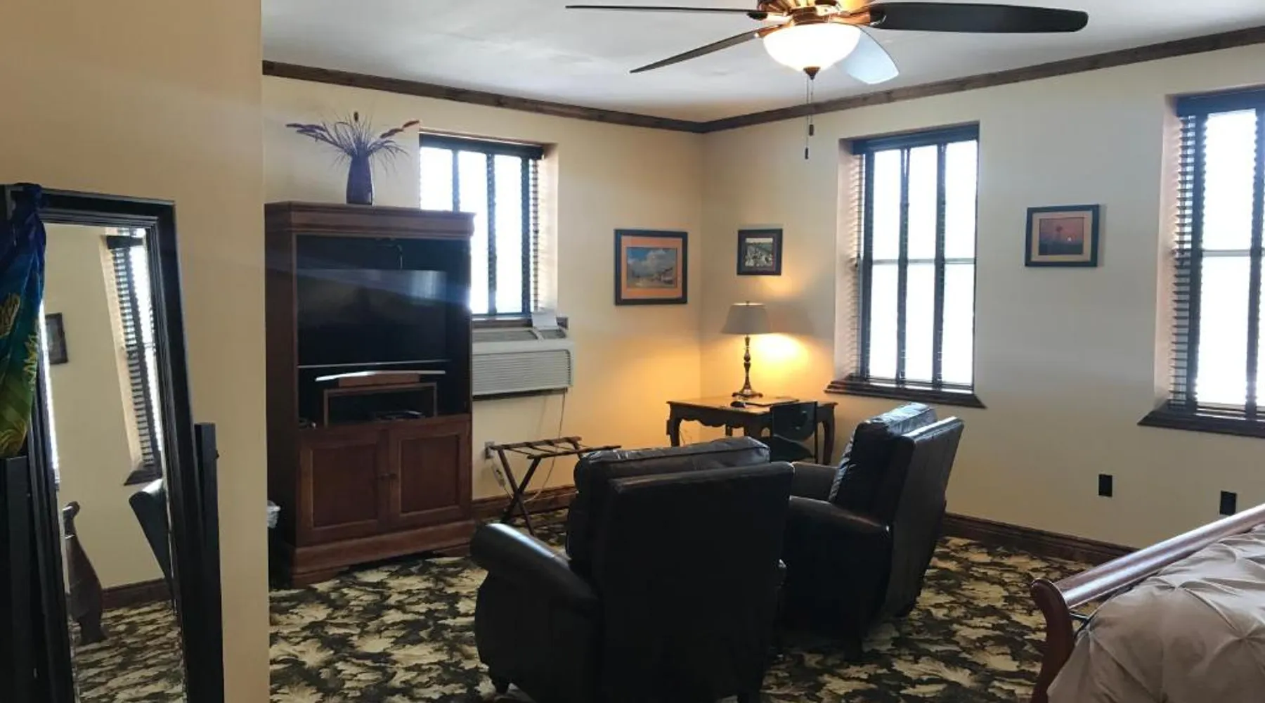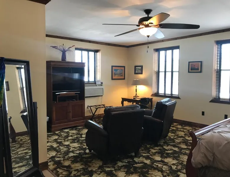 Comfortable Accommodations: Caldwell Messenger Suites in Caldwell offers comfortable rooms with air-conditioning, private bathrooms, and televisions. Free WiFi is available throughout the property. Convenient Facilities: Guests enjoy free on-site private parking and a welcoming reception staffed with English-speaking personnel. Prime Location: Located 63 mi from Wichita Dwight D. Eisenhower National Airport, the hotel provides easy access to local attractions. Highly Rated by Guests: Caldwell Messenger Suites is highly rated by guests for its excellent service and comfortable accommodations. This suite has a private bathroom and air conditioning. The unit has 1 bed.