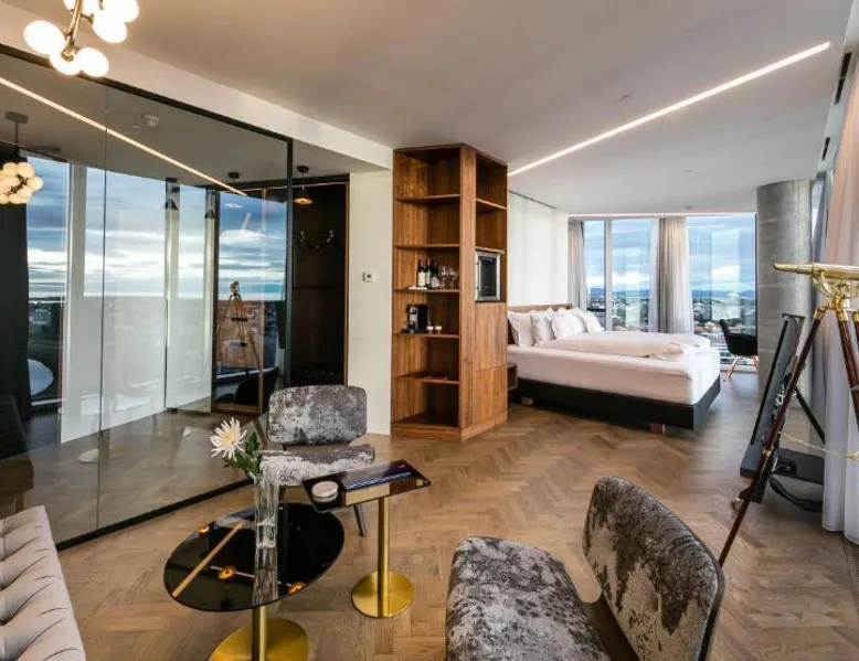 Located on the 20th floor of a contemporary glass tower, these stylish penthouse suites are in central Reykjavik and feature panoramic views of the city or sea. Free WiFi is included. Each room has floor-to-ceiling windows, a complimentary mini-bar and Nespresso coffee maker. All rooms are fitted with a private bathroom. Additional features include a telescope and an iPad. Restaurants and coffee shops are located on the ground floor. Harpa Concert Hall is 1.1 mi from Tower Suites Reykjavik. Restaurants, bars and shopping are within 0.3 mi walking distance at Laugavegur shopping street area. Hallgrímskirkja Church is 0.6 mi away. This suite features a seating area. The room has a panoramic view of Reykjavik. The corner suite comes with full concierge service, available 24/7.