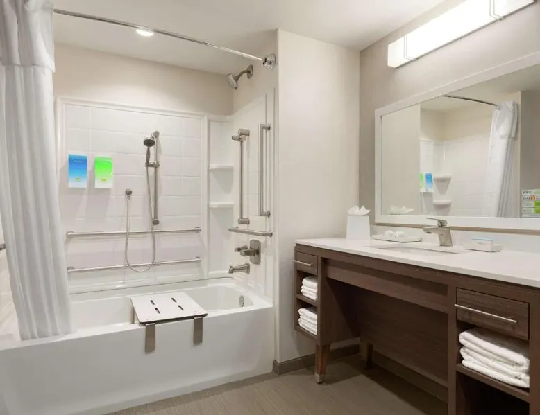 Comfortable Accommodations: Rooms feature air-conditioning, free WiFi, and modern amenities including a work desk, sofa bed, and flat-screen TV. Guests appreciate the room cleanliness and comfortable seating areas. Exceptional Facilities: The hotel offers a fitness center, indoor swimming pool, and outdoor fireplace. Additional facilities include a lounge, business area, and outdoor seating and picnic areas. Delicious Breakfast: A continental, American, or buffet breakfast is served daily, including warm dishes and juice. Guests enjoy a variety of options to start their day. Convenient Location: Located in Silver Spring, the hotel is 16 mi from Ronald Reagan Washington National Airport. Nearby attractions include Walter E Washington Convention Center and the National Mall, each 9.9 mi away. This suite is air-conditioned and has a seating area with a TV, a tea and coffee maker, a safe deposit box and heating. The unit has 1 bed.