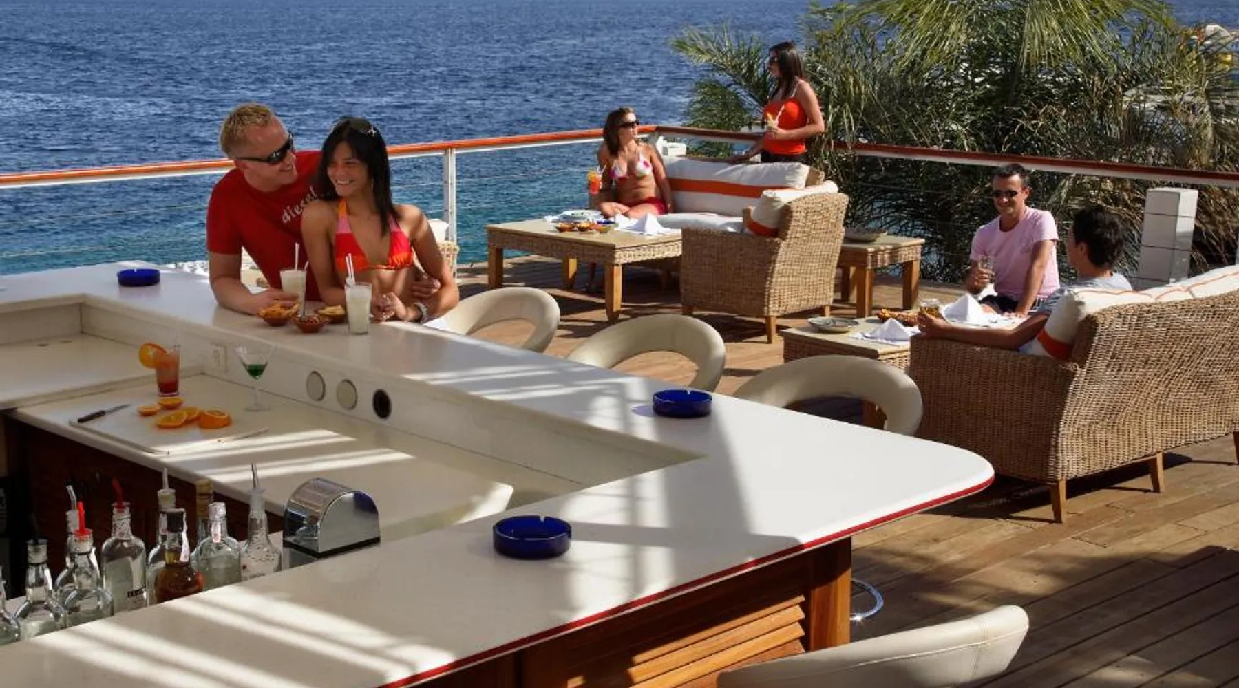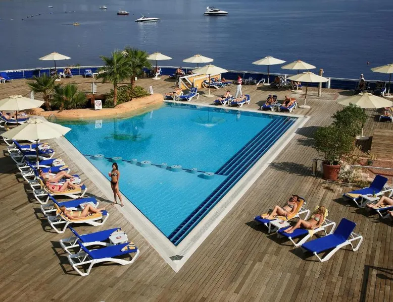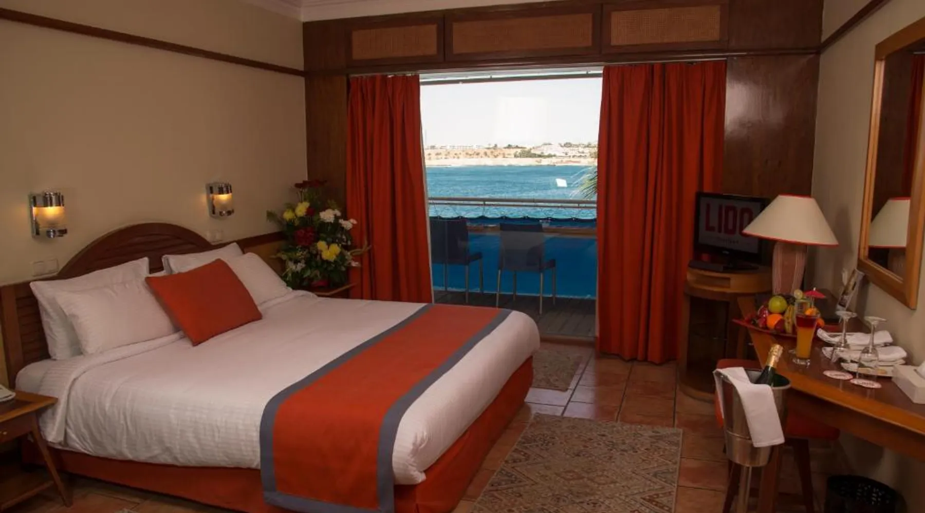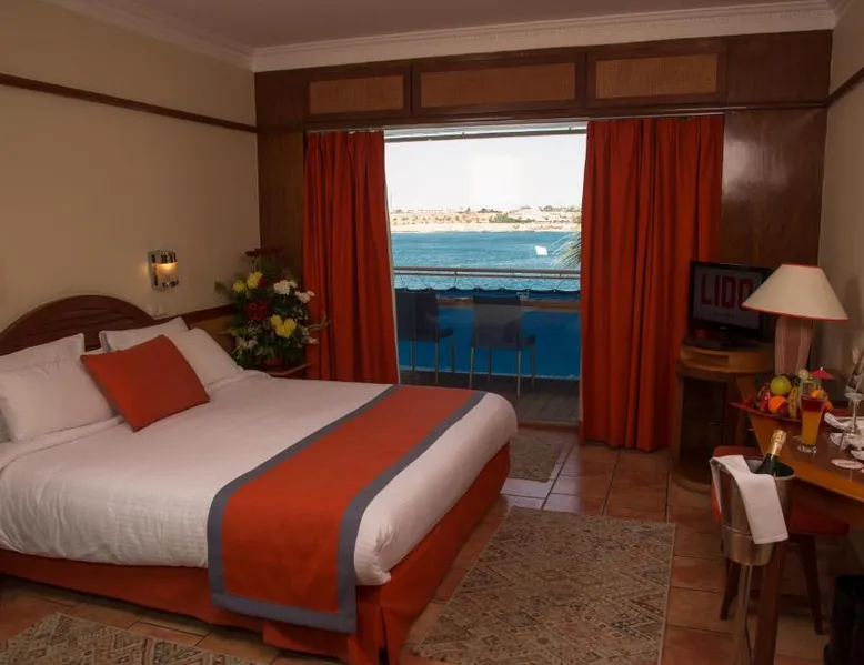 With fantastic views across Naama Bay, the Lido Sharm Hotel features a rooftop pool surrounded with a wooden sundeck. It offers spacious rooms with balconies and a floating dining terrace. Rooms at the Lido feature tiled floors and modern furnishings. They have air conditioning, and come equipped with a mini-bar and satellite TV. They also boast balconies with panoramic sea views. Lido Sharm Hotel has 3 restaurants and 3 bars. The Dolphino offers buffet-style dining, while the floating On Deck Restaurant offers sea food and international gourmet dishes. It also offers a pool and beach bar. The La Foli Terrace Bar restaurant, lounge and bar serves a variety of cocktails and a-la-carte dishes with relaxing background music overlooking Naama Bay area. Lido Sharm Hotel guests can enjoy a massage, or soak in the rooftop swimming pool on the sundeck with sea views. They can also spend a lazy afternoon on the private beach with sun loungers. An airport shuttle service is available upon request to Sharm El Sheikh International Airport. The hotel offers 24-hour front desk service, and free private on-site parking. This triple room has a balcony, air conditioning and mini-bar. Free WiFi is available only in public areas (No WiFi in the Room ) All inclusive concept for Egyptian &Arabs on soft basis only and not included alcoholic drinks.
