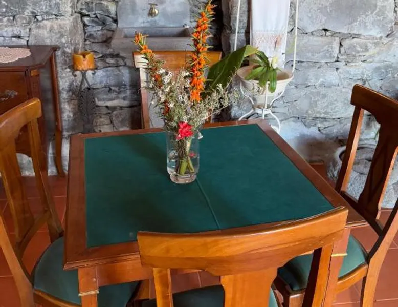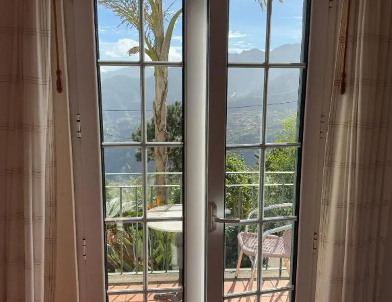 Elegant Accommodations: Refúgio das Camélias in Faial-Santana offers a country house with a sun terrace and a garden. Guests enjoy a lounge, shared kitchen, outdoor seating area, and picnic spots. Comfortable Amenities: The property features private check-in and check-out, free on-site parking, and a washing machine. Additional amenities include a balcony, kitchenette, and a barbecue area. Prime Location: Located 13 mi from Cristiano Ronaldo Madeira International Airport, Refúgio das Camélias is near attractions such as Santana's Traditional Houses (3.1 mi) and Pico Ruivo peak (8.1 mi). Guests appreciate the host, balcony, and kitchen. Featuring 1 double bed, this studio features a private bathroom with free toiletries, flat-screen satellite TV and an equipped kitchenette. The unit also includes a balcony with views over the surrounding mountains.