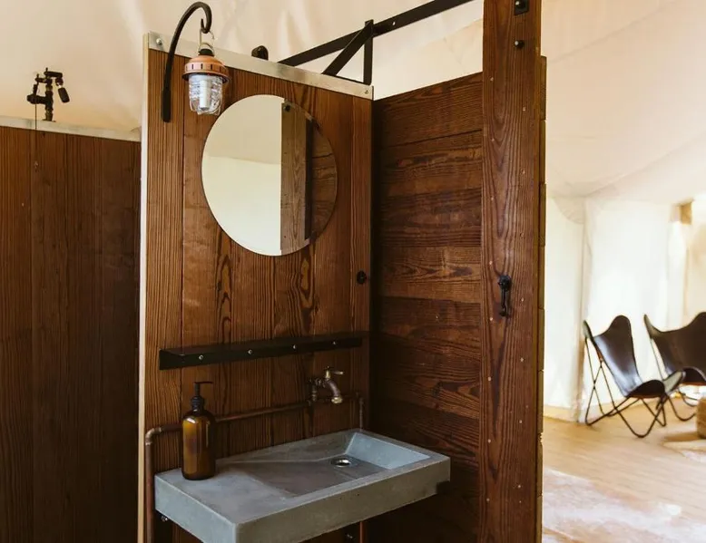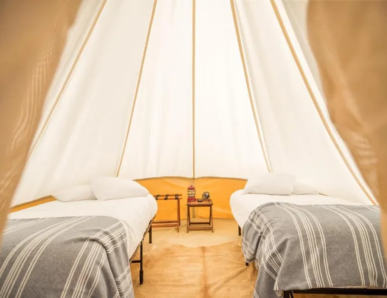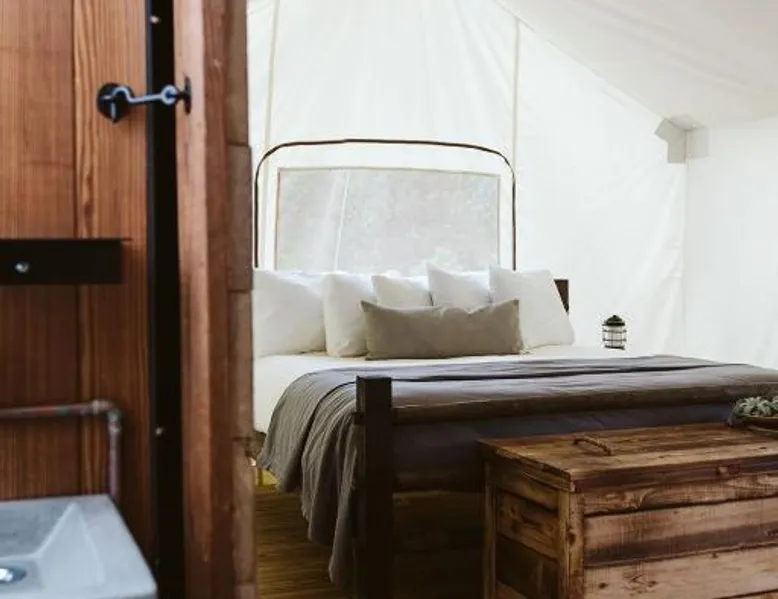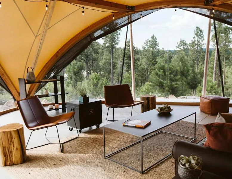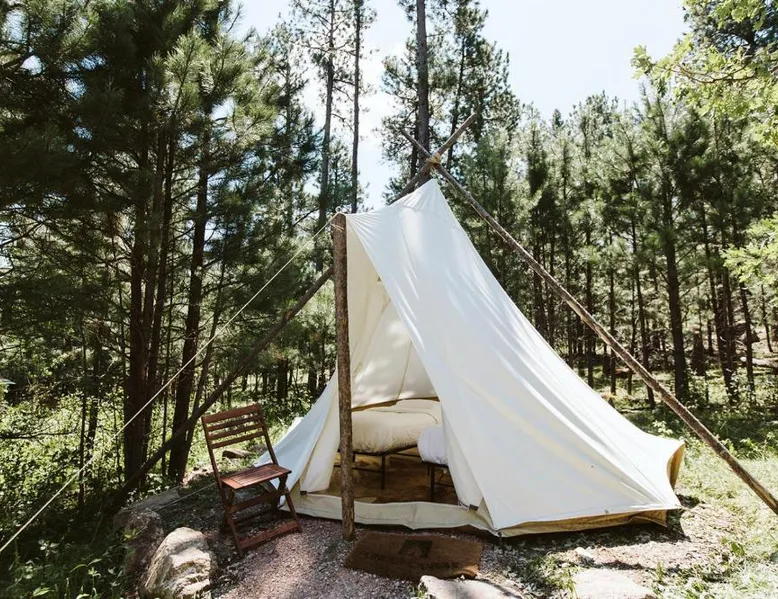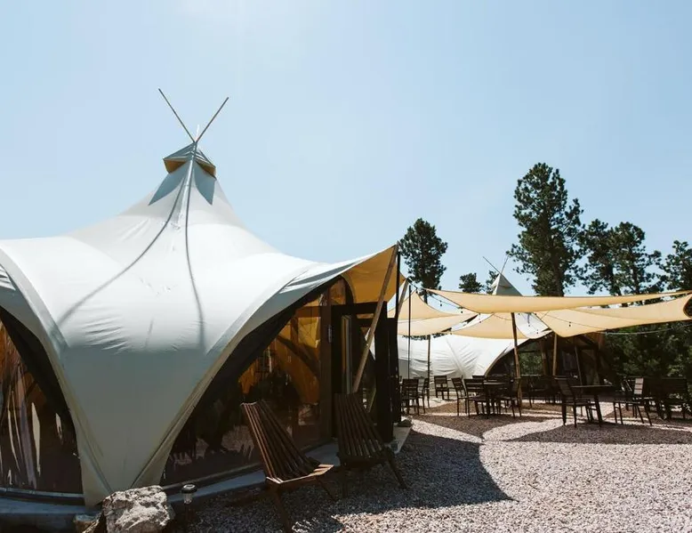 Comfortable Accommodations: Under Canvas Mount Rushmore in Keystone offers 3-star luxury tents with private bathrooms, balconies, and parquet floors. Each tent includes free toiletries, a fireplace, and outdoor furniture. Dining and Amenities: The family-friendly restaurant serves American cuisine for dinner. Guests can also enjoy an outdoor fireplace, coffee shop, and picnic area. Additional facilities include a 24-hour front desk, concierge service, and live music. Activities and Location: Located 3.1 mi from Mount Rushmore and 29 mi from Rapid City Regional Airport, the property offers yoga classes, walking tours, hiking, cycling, and bicycle parking. Guests appreciate the scenic views and excellent service. The unit offers 3 beds.