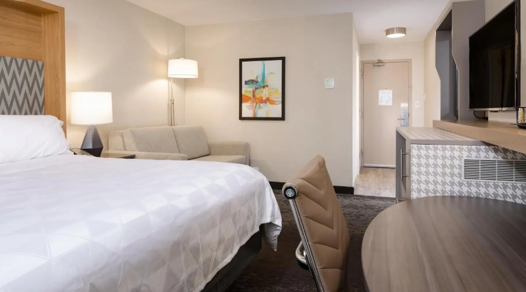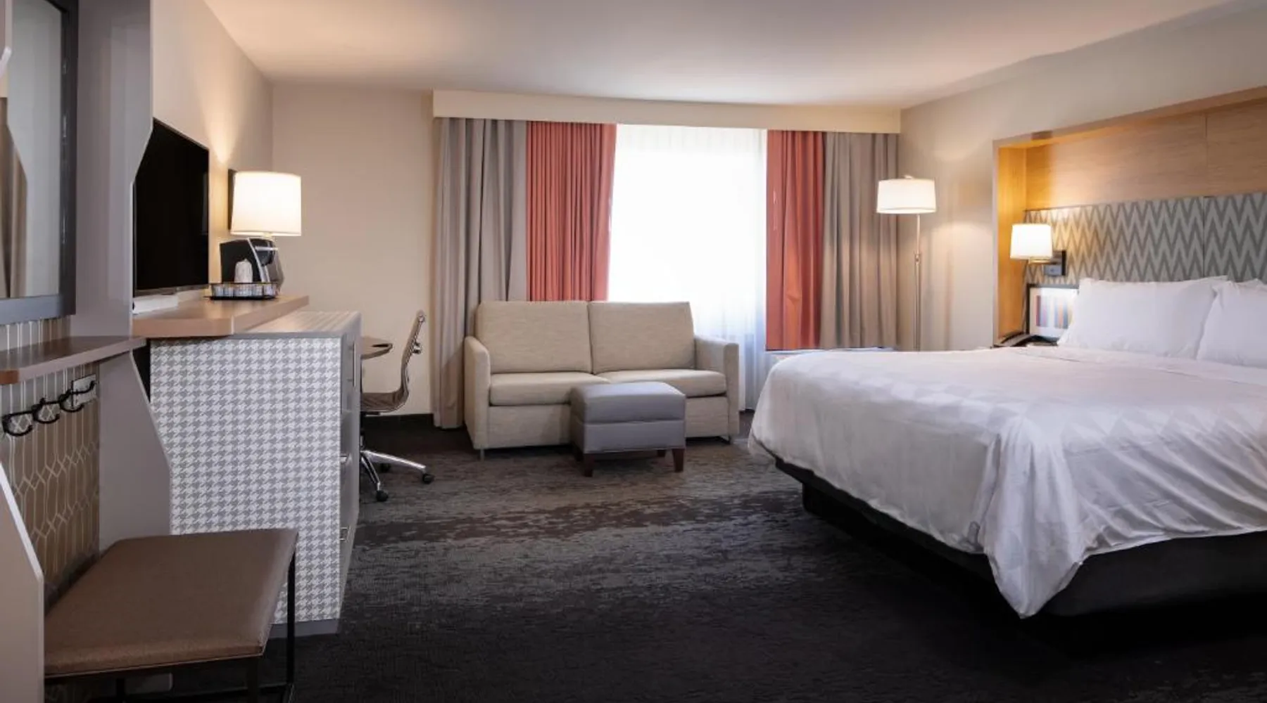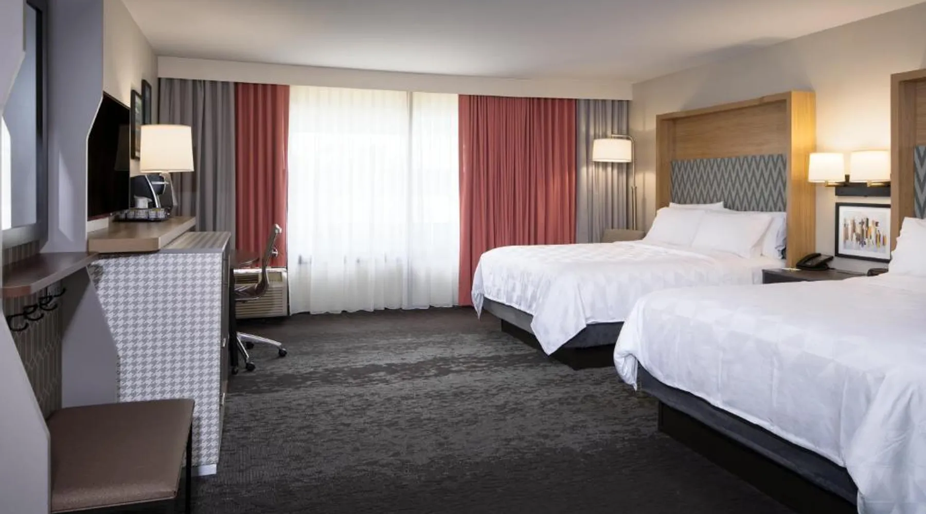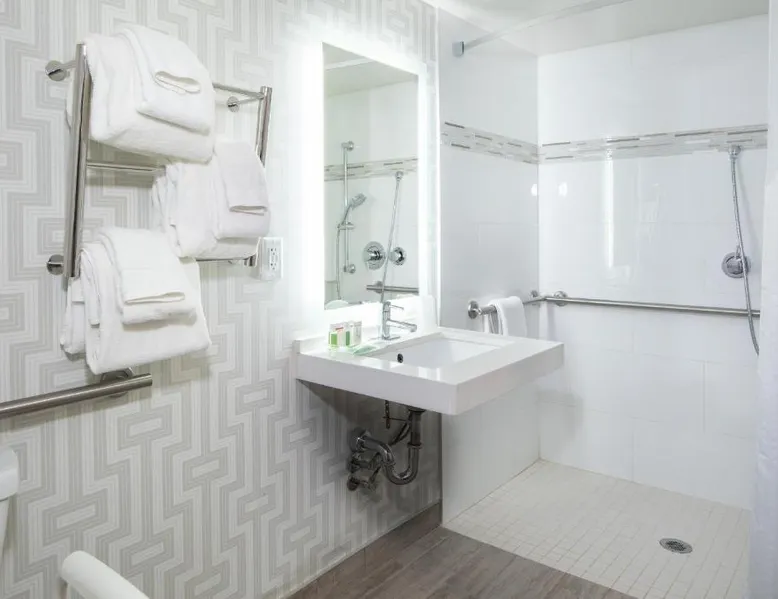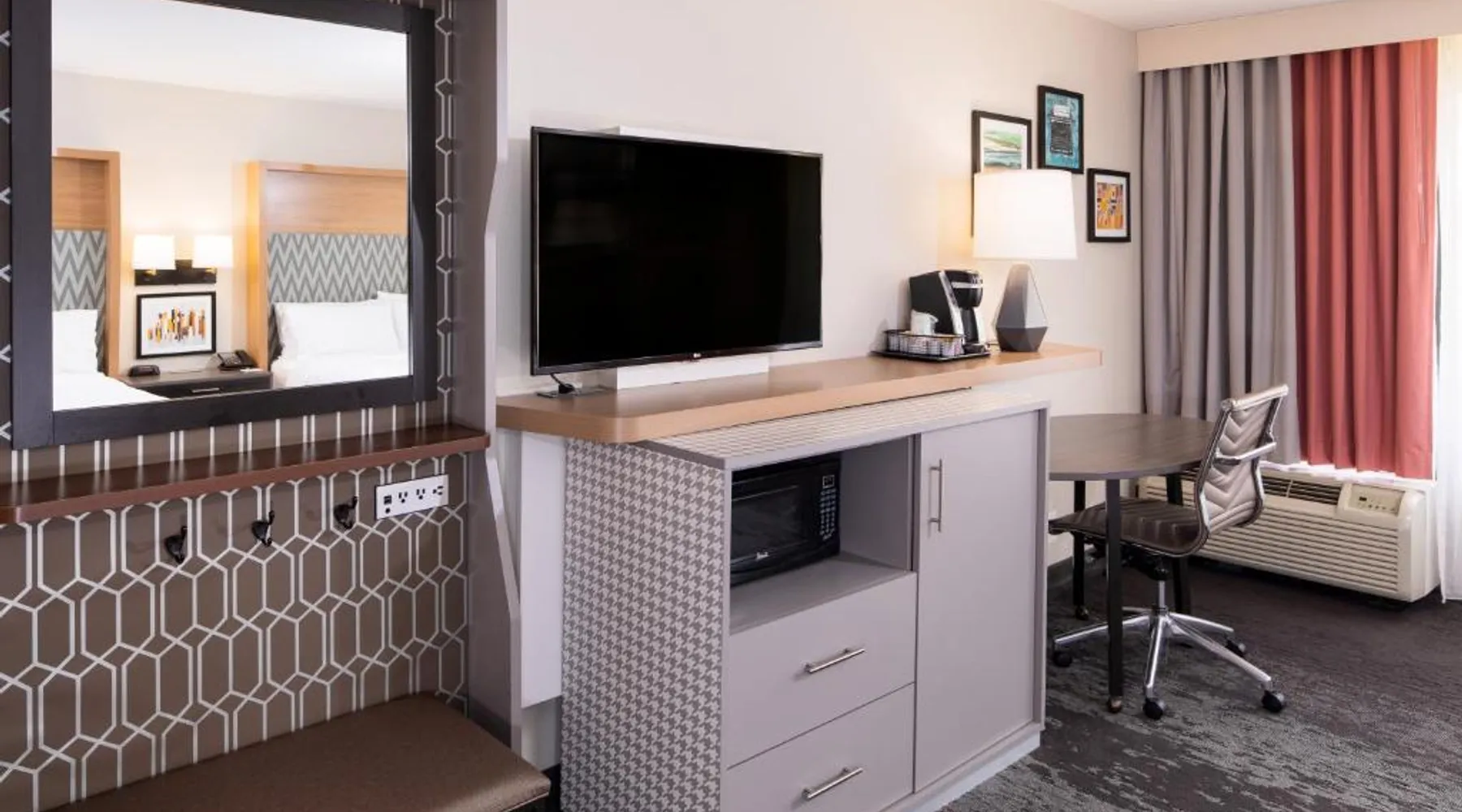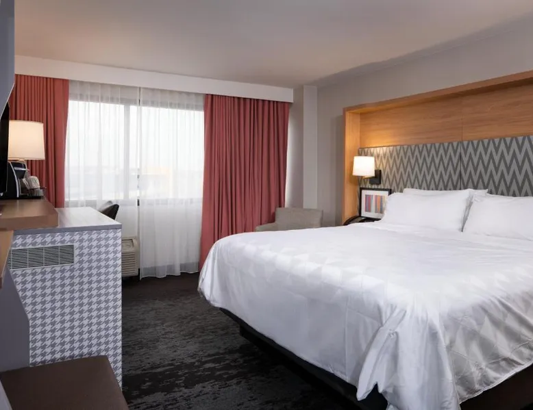This hotel is 10 miles from Washington DC , adjacent to a shopping center and Interstate 95 and 495 are easily accessible. The hotel has a spacious indoor pool. Large rooms at the Holiday Inn Washington College Park are equipped with cable TV. The rooms also feature tea and coffee making facilities. Guests can dine or have a drink at the Terrapin Kitchen, which serves breakfast and dinner. The Holiday Inn College Park is 2 miles from the University of Maryland. The hotel is 15 minutes’ from the Goddard Space Flight Center. Providing free toiletries, this double room includes a private bathroom with a shower and a hairdryer. The spacious air-conditioned double room provides a flat-screen TV with cable channels, a tea and coffee maker, a seating area and a wardrobe. The unit offers 1 bed.